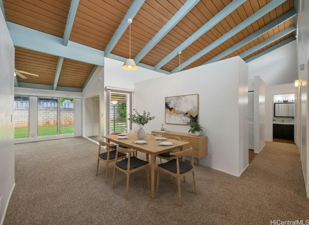This 3-bedroom, 2-bath single-level home offers comfort and space. The open layout features high ceilings in the kitchen and dining area, creating an inviting atmosphere perfect for gatherings. Enjoy fresh interior paint, a 2-car carport with additional driveway parking, and a private backyard ideal for entertaining or relaxing outdoors. As part of the Mililani Town Association, residents have access to 7 recreation centers, pools, parks, sports courts, and scenic walking paths. Conveniently located near shopping, schools, and neighborhood parks. *Some photos have been virtually enhanced with staging.