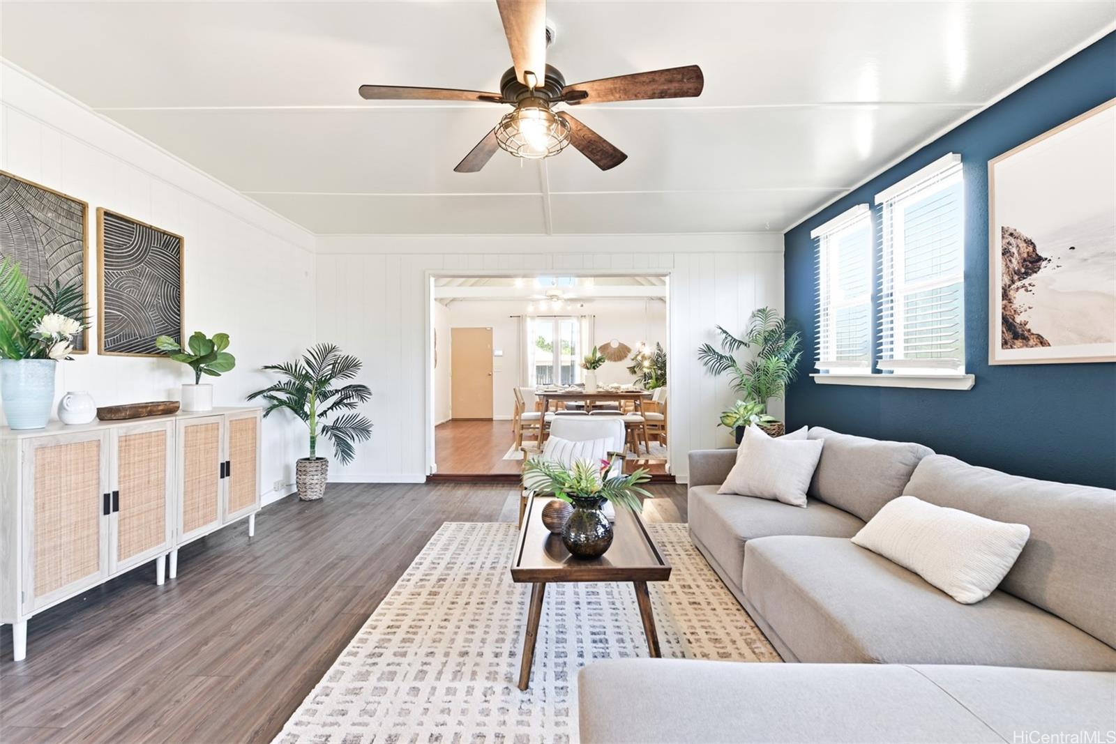 ミリラニの一戸建て住宅、100万ドル以下!平屋建ての3ベッドルーム、1. 5バスルームの住宅は、5,500平方フィートの敷地に1,612平方フィートの室内空間を提供します。 長年大切に手入れされ、配慮を込めて改装が重ねられてきました。さらに、売り出し前に新品のカーペットが敷設されたばかりです。 追加の改良点には、分割型エアコンシステム(2020年)、効率向上のためのシリコン屋根コーティング(2023年)、およびサイドラナイの更新が含まれます。 庭には実のなる木が育っており、くつろいだり集まったりできるスペースがあります。 スコフィールド兵舎の近くに位置し、ノースショア、空港、ウエストサイドへのアクセスが良好。ミリラニ・タウン協会に属し、複数のレクリエーションセンターやプールを利用可能。快適性、機能性、優れた立地条件を兼ね備えた住まいです。 VA譲渡可能金利2. この対象者には25%の割引が適用されます。 .
