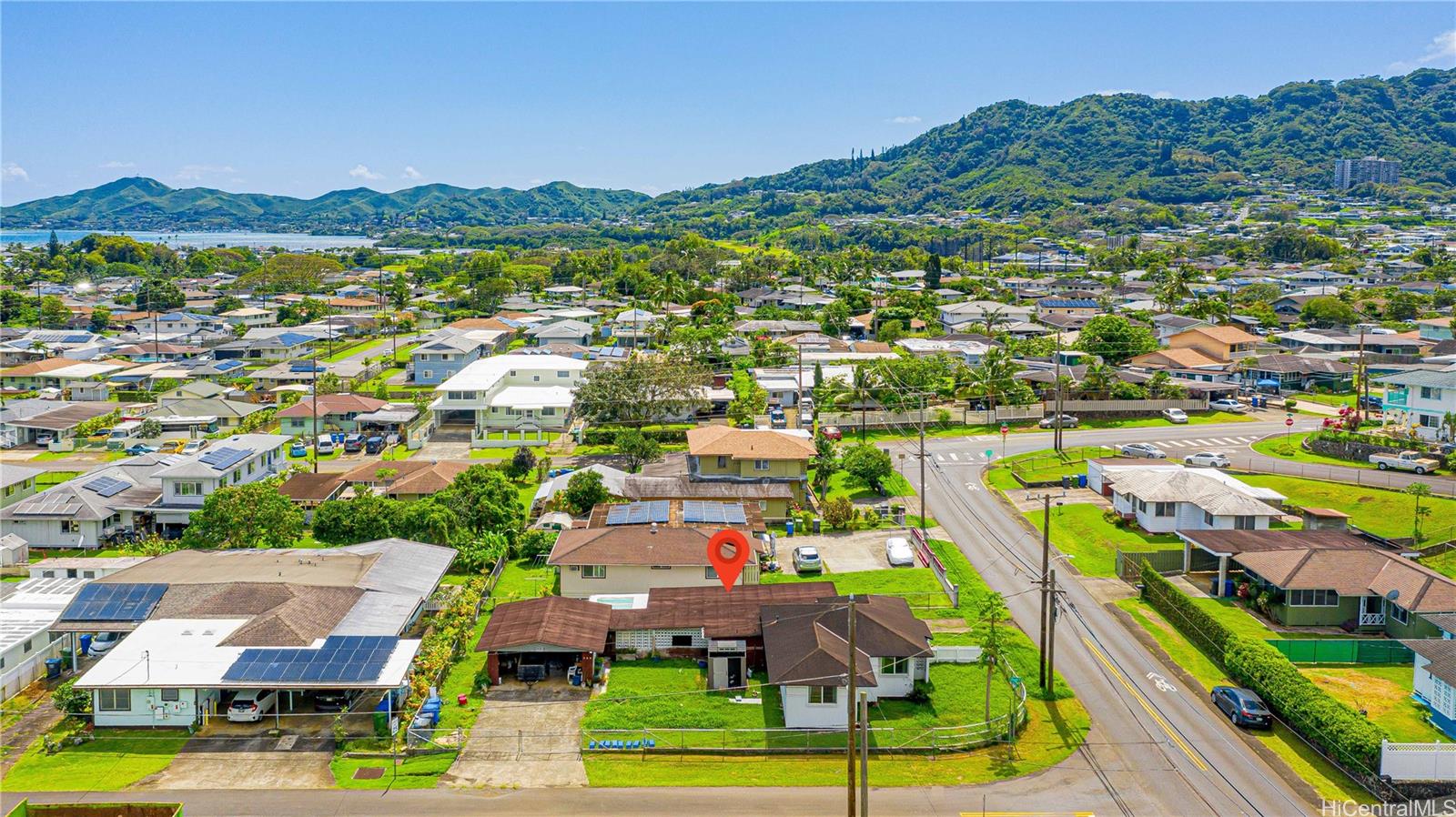 Excellent value in a wonderful Kaneohe community, embraced by the stunning natural beauty of the majestic Ko‘olau mountain range. This large corner lot features two separate driveways on Pua Inia Street and Lanipola Place, along with a fenced-in, spacious private yard ideal for outdoor living. The property includes an attached, but separate-entry space of approximately 544 square feet with a full bath, in addition to the main house, plus a covered patio lanai with a partitioned room and a large carport with a built-in workshop area. Recent improvements include a renovated bathroom and exterior paint in 2020, interior paint in 2022, and, in 2023, a newly renovated kitchen, new glass-insulated windows and screens, and a relocated front yard gate. In 2025, a contractor performed a roof assessment and electrical upgrades. A Tesla charging station hookup was installed. Easy access to major Highways and Freeways, in the vicinity of shopping, eateries, golf courses, hiking, farmers markets, Ho‘omaluhia Botanical Garden, hiking trails, Heeia Kea Pier, and public transportation. The actual square footage may not match county records; buyers are advised to conduct their own due diligence.