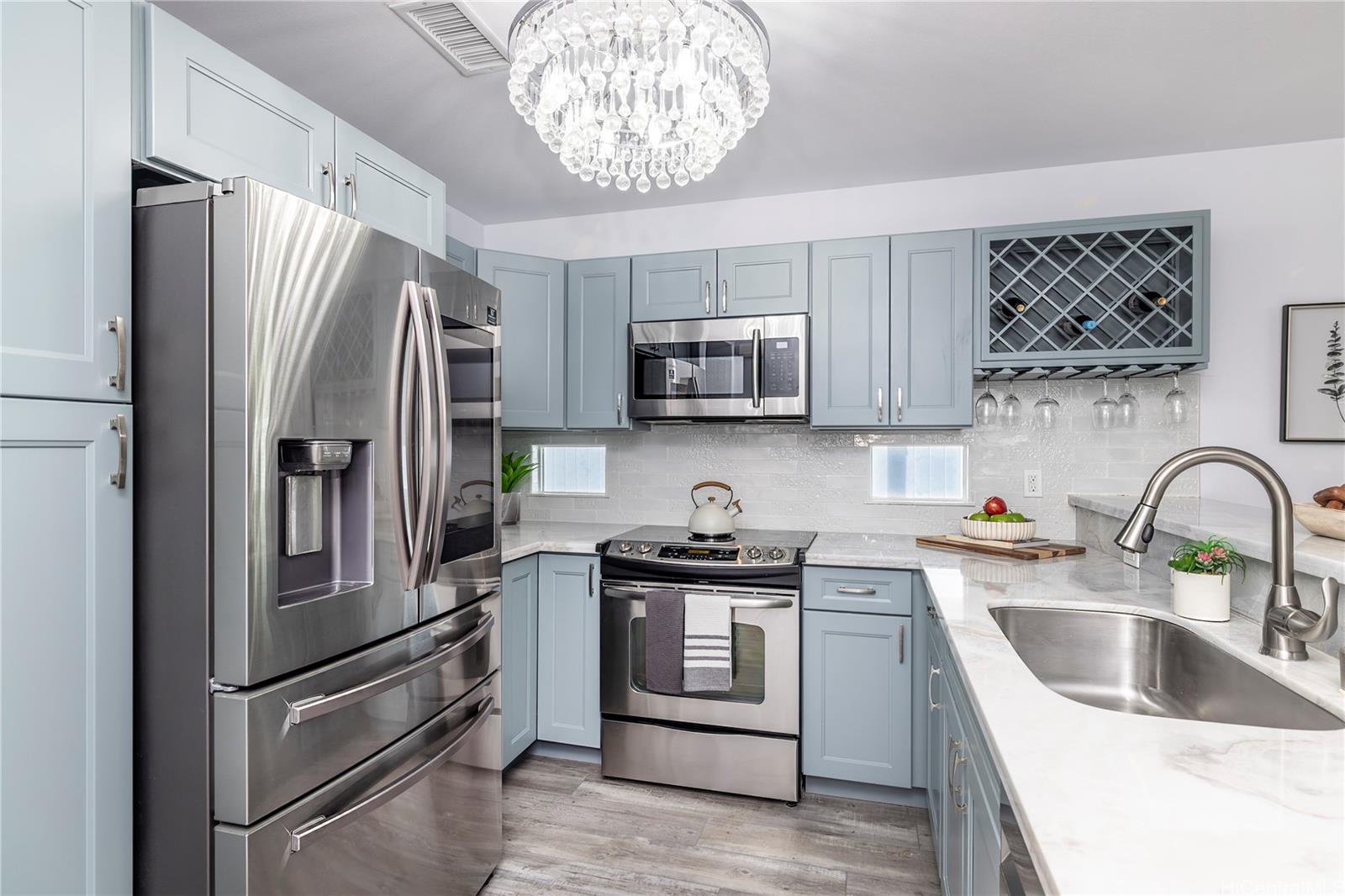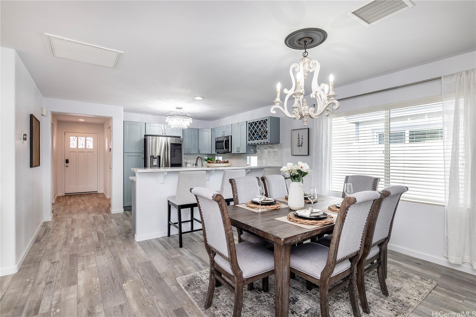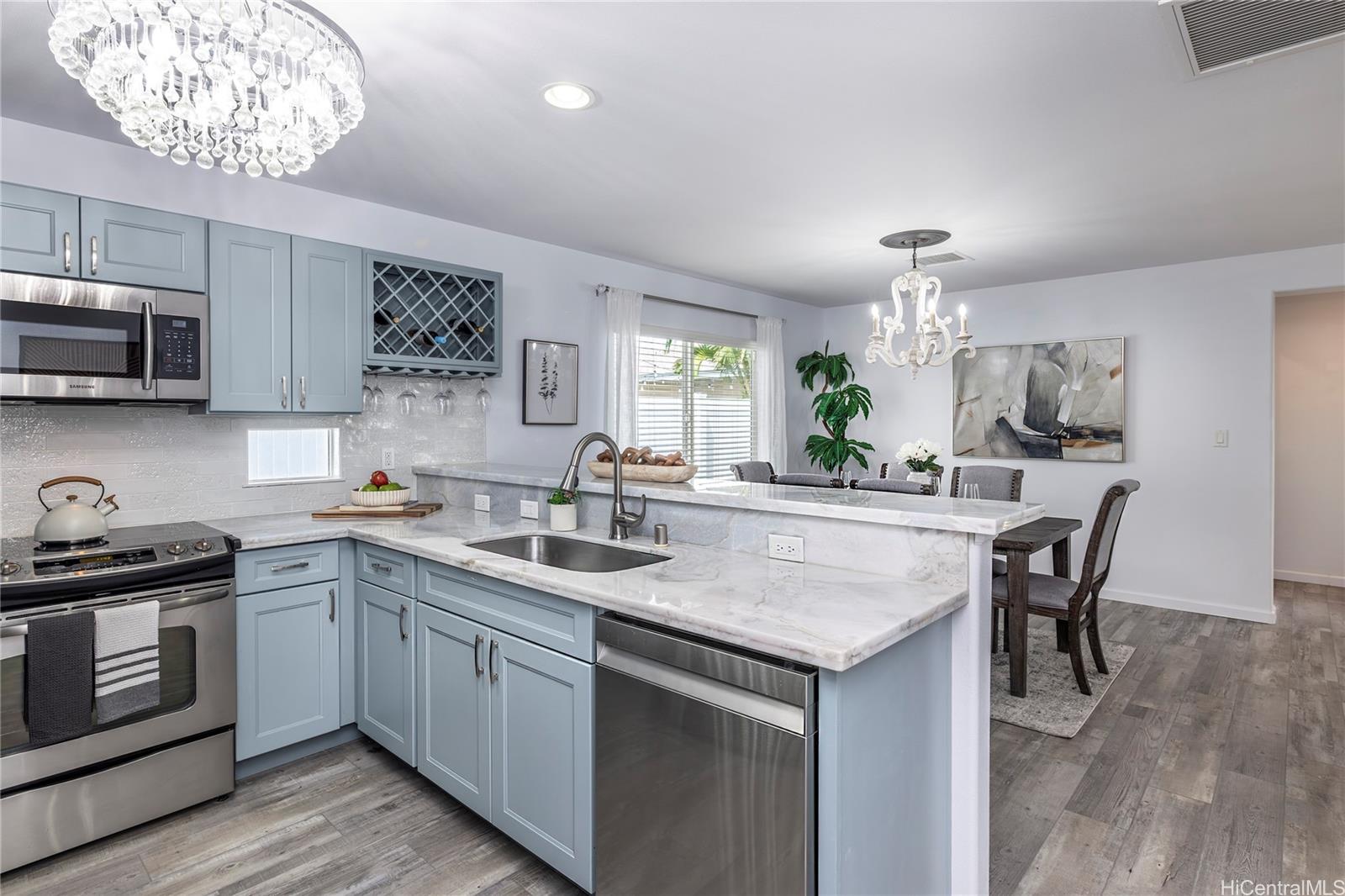 Welcome to a rarely available single-level home in the highly sought-after resort community of Hoakalei Kamakana. Completely remodeled from top to bottom, this stunning residence has been thoughtfully upgraded with no detail overlooked. Step inside to discover brand-new luxury vinyl flooring throughout, creating a seamless and modern feel. The fully renovated kitchen features sleek finishes and contemporary design, while the beautifully updated bathrooms offer a fresh, spa-like experience. Every inch of this home has been refreshed, making it truly move-in ready. The well-designed layout offers comfortable, functional living, highlighted by an extra-large primary en suite featuring a spacious walk-in closet—your own private retreat. Enjoy added value with energy-efficient solar panels and the convenience of an EV charger, making this home as practical as it is beautiful. Single-level homes in this community are seldom available, making this a unique opportunity to own a piece of paradise. Enjoy access to incredible resort-style amenities, including pools, fitness centers, and more—all just moments from your doorstep.