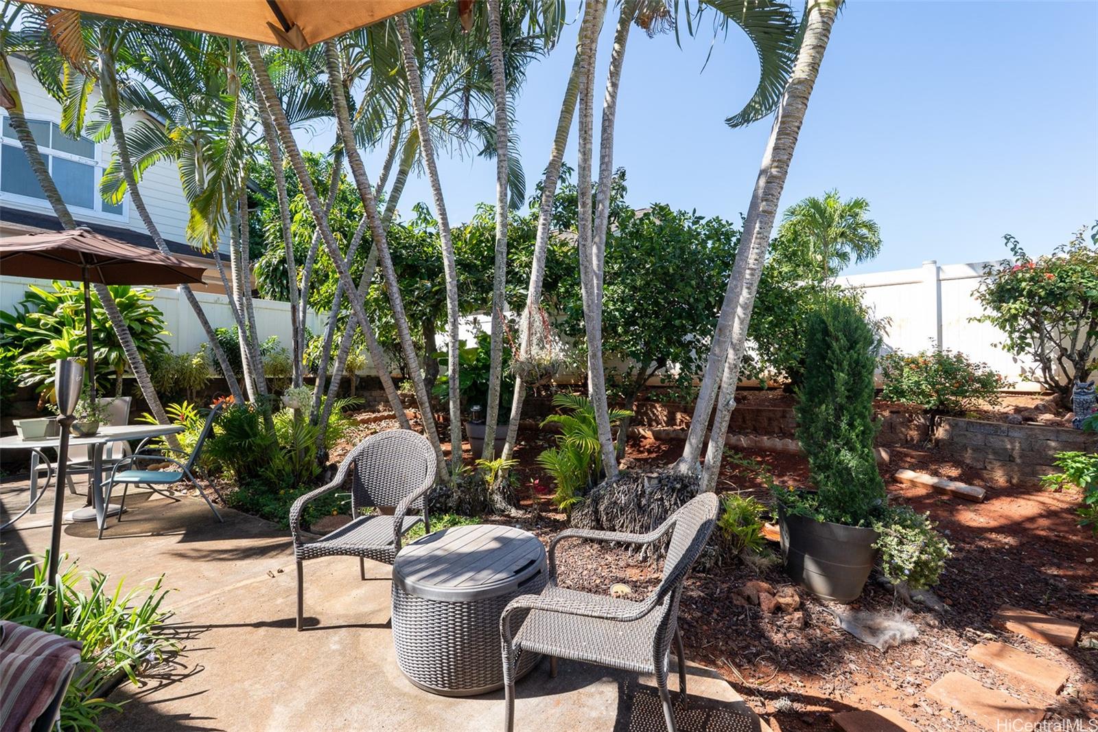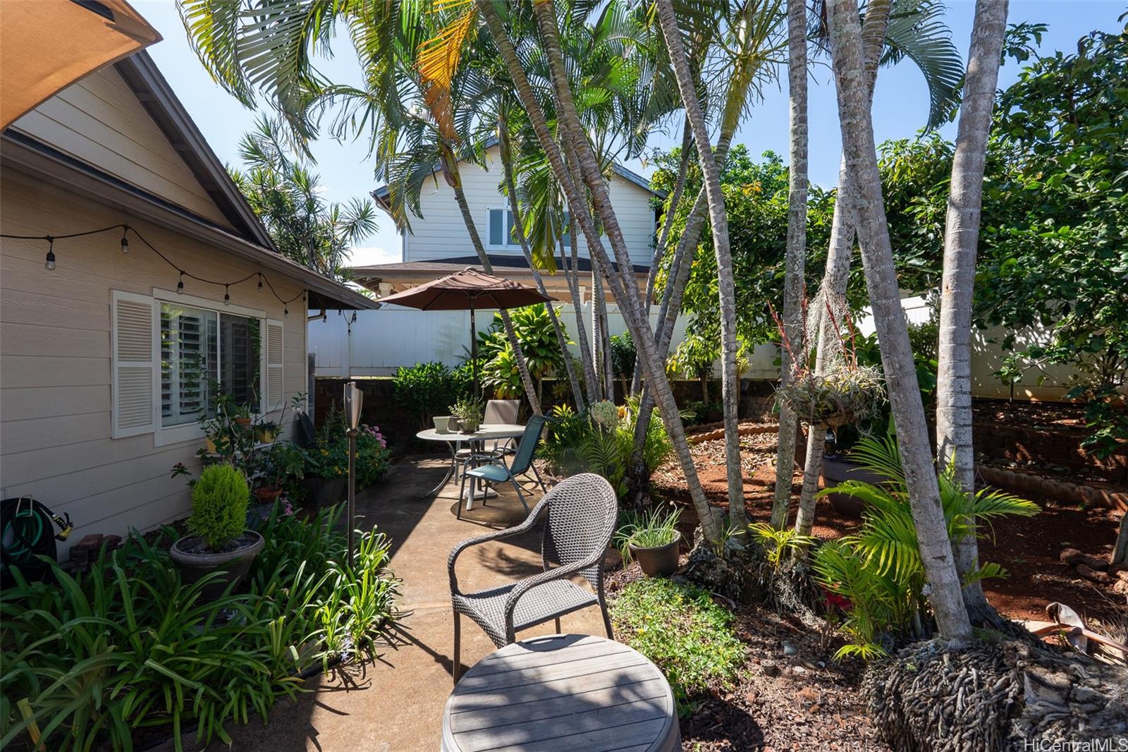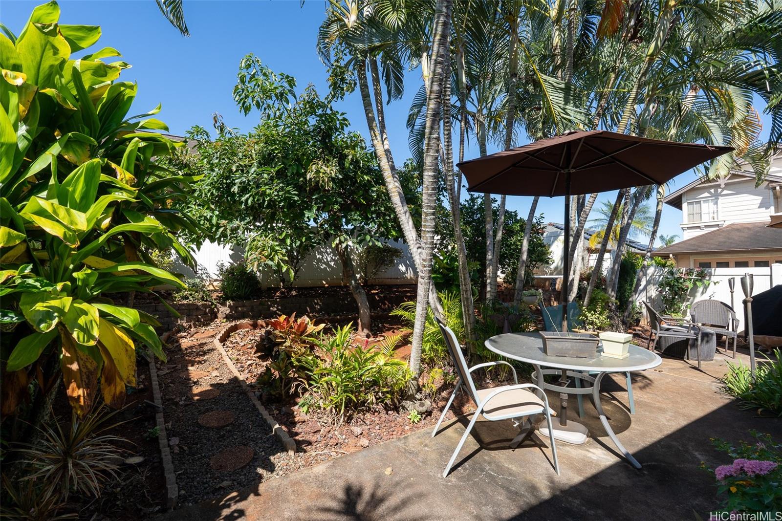 Welcome to the rarely available Celebrations at Waikele—an inviting single-family home offering comfort, convenience, and opportunity. This single level 3-bedroom, 2-bath residence features an attached 2-car garage and a thoughtfully designed layout with high ceilings that create a bright and airy living space. The home is equipped with 18 PV panels to help offset electricity costs, along with split AC units and ceiling fans to keep you cool year-round. Well maintained over the years, the property is in good condition and offers buyers the opportunity to add their personal touch and truly make it their own. Step outside to a private backyard—perfect for outdoor dining or creating a relaxing space to unwind. Ideally located in the heart of Waikele, this home offers convenient access to freeway on-ramps, shopping and dining at Waikele Premium Outlets, and nearby attractions like Waikele Country Club. With its desirable location and strong potential, this is a wonderful opportunity to own in one of Waikele’s most sought-after neighborhoods.