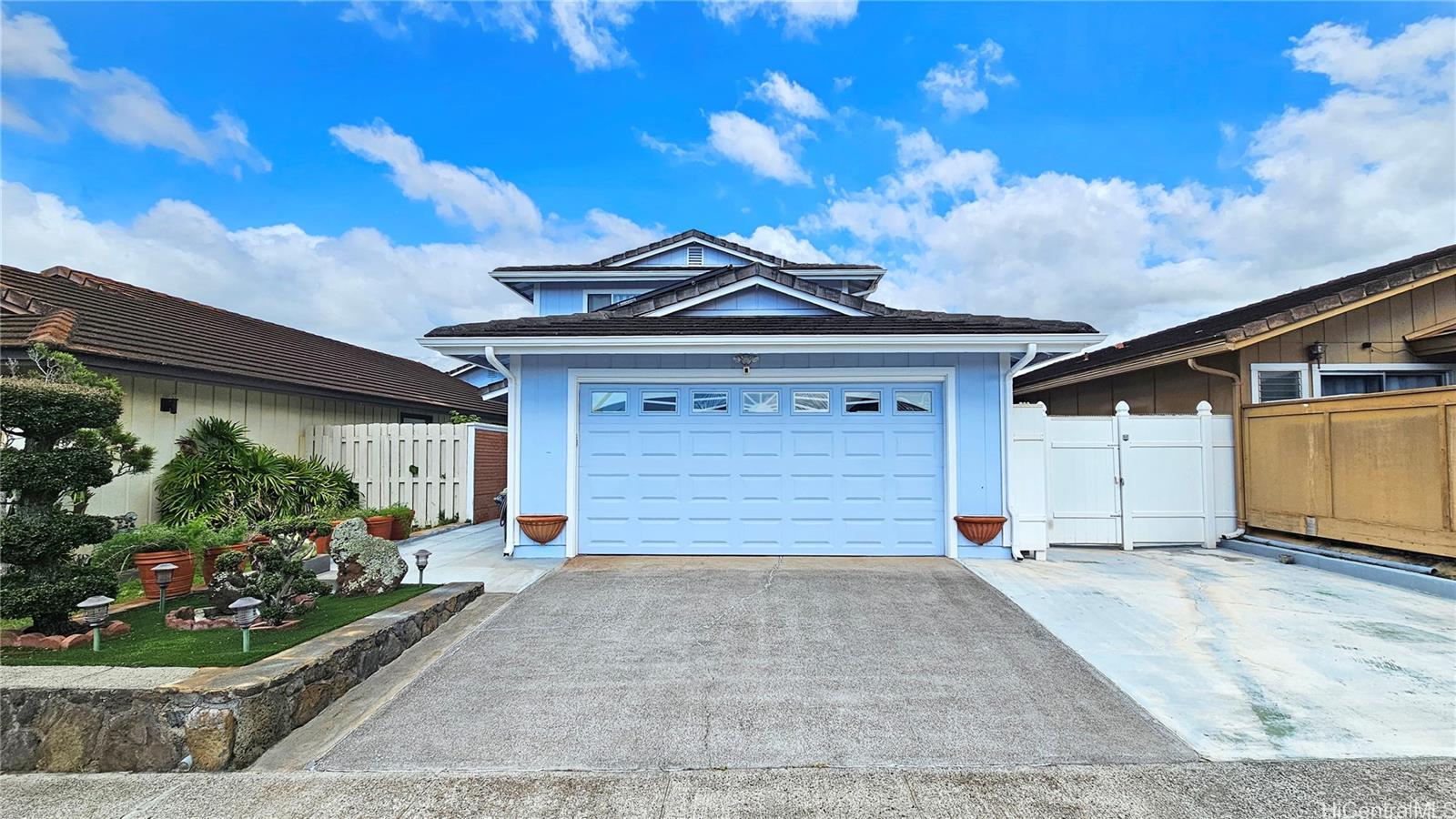Waipio Gentry Gem! This well-kept 3-bedroom, 2.5-bath single-family home features a two-car garage and an extra parking space added to the driveway for 3+ cars. It features a tile roof, solar water heater, and an owned photovoltaic (PV) system with coveted net metering for energy efficiency and long-term savings. Inside, enjoy an upgraded kitchen and a permitted extension that adds both space and versatility. The fully fenced, low-maintenance yard is perfect for relaxing and entertaining. Ideally located near shopping, dining, schools, and freeway access, this move-in-ready home offers modern upgrades in a desirable neighborhood. More photos coming soon! No showings until first open house on March 15th 2-5pm, weather permitting.