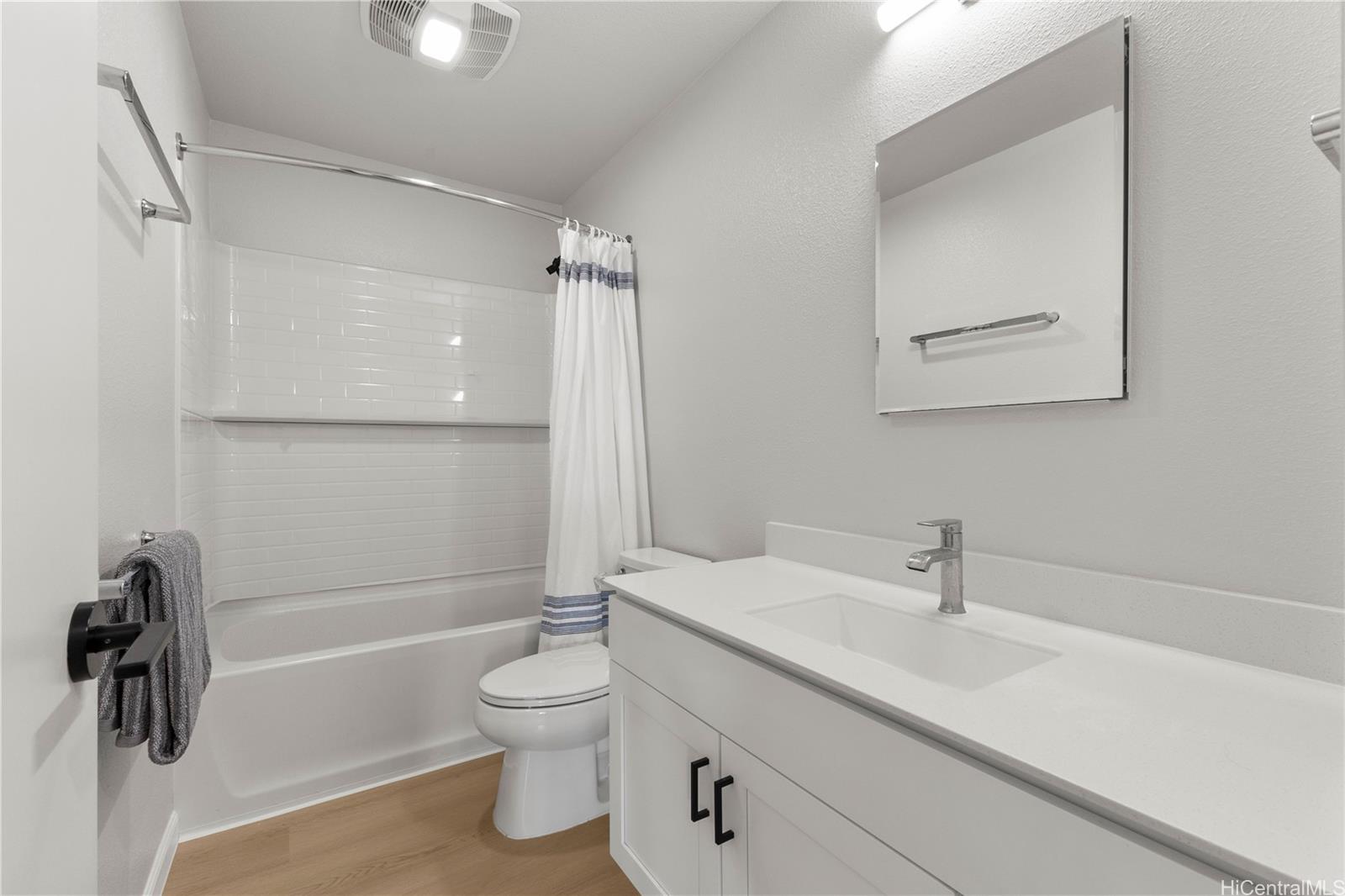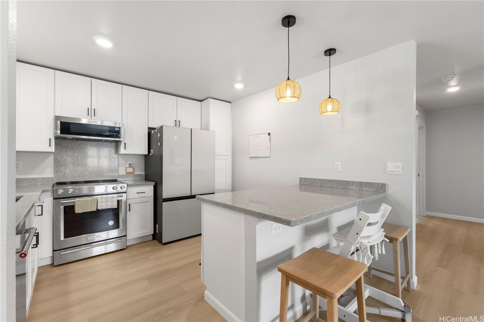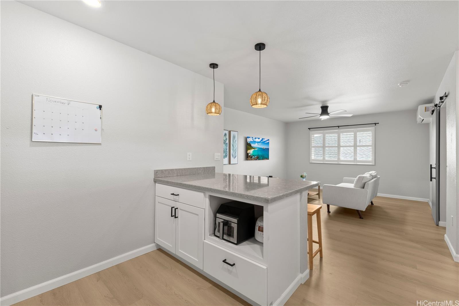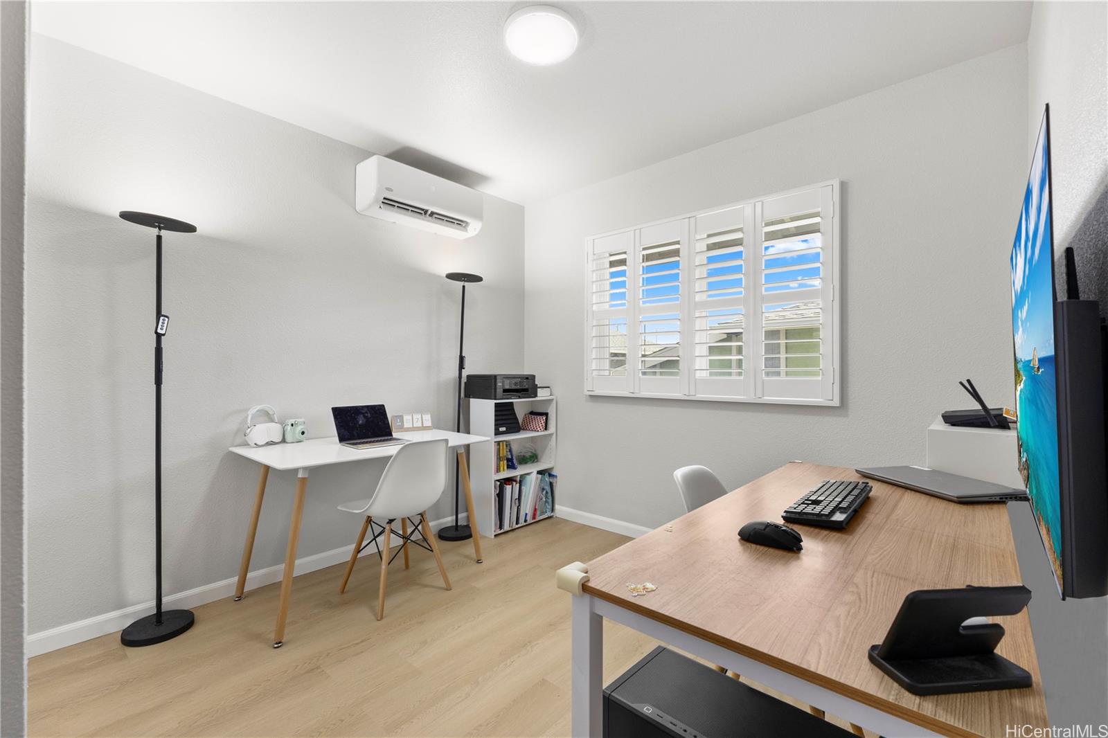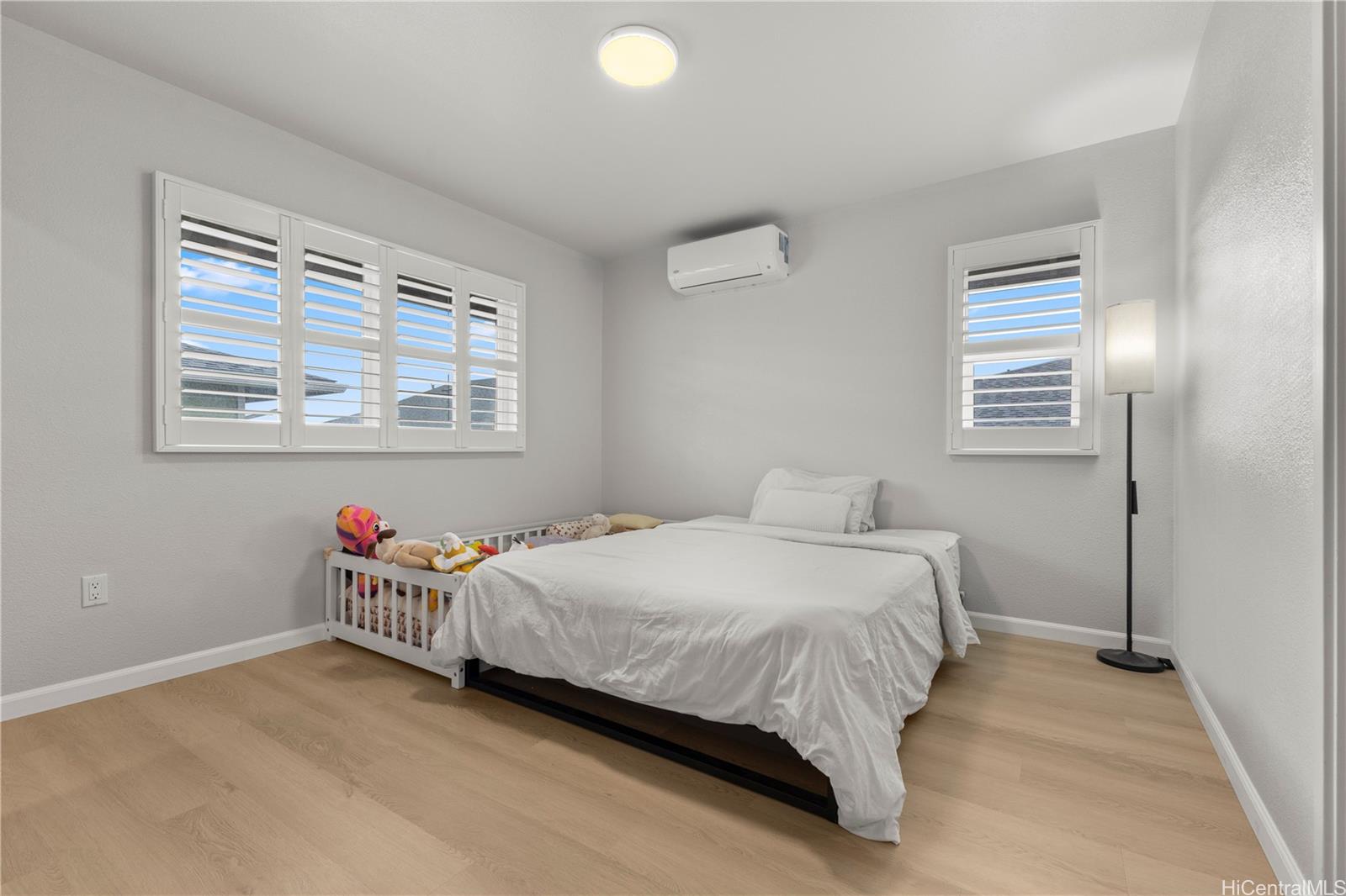 Experience the perfect blend of island charm and modern luxury. Located in one of Hawaii’s most desirable communities, this beautifully designed home pays tribute to Old Ewa Village’s plantation-style heritage while offering every modern convenience. Built just over two years ago, it welcomes you with an expansive carport, inviting lanai, and stunning curb appeal. Inside, enjoy fresh interior paint, new luxury vinyl plank flooring with modern baseboards, and custom plantation shutters on every window. Split A/C units in each room ensure year-round comfort, while the kitchen shines with pendant lighting above the island, an upgraded refrigerator, and designer finishes. Every detail has been elevated, from added overhead lighting and a ceiling fan in the living area to a hidden TV outlet for a clean, polished look. Smart-home features include a 360° security camera system and keyless entry. Fully paid solar panels and a Tesla battery provide energy efficiency and peace of mind. Perfectly located near parks, the community center and pool, and the new rail line—this move-in-ready home embodies modern Hawaiian living at its finest.