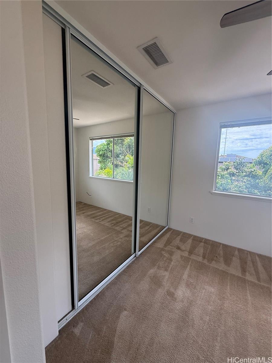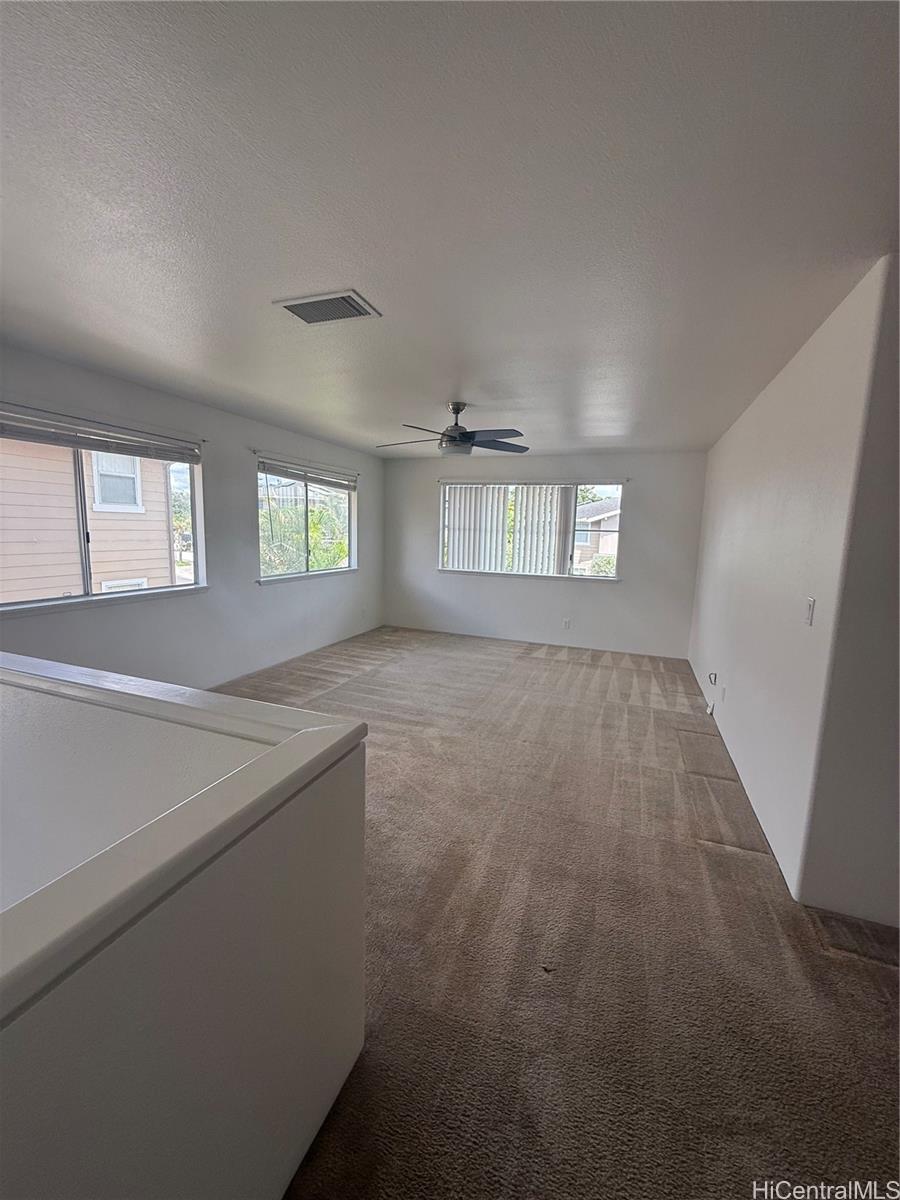 Freshly painted and move-in ready, this well-maintained 3-bedroom, 2.5-bath two-story single-family home in Waikele offers comfort, convenience, and modern upgrades. Located on a quiet cul-de-sac, this residence features central air conditioning, an attached garage, and a functional layout ideal for everyday living.The main level includes an open living and dining area with excellent natural light, along with a spacious kitchen and a convenient half bath. All bedrooms are located upstairs, including a primary suite with an en-suite bathroom and a den-style open area that can be used as a secondary living room or office. The property sits on a well-sized lot with room for outdoor enjoyment. Located near Waikele Premium Outlets, parks, schools, and freeway access, this home combines privacy with accessibility in one of Central Oahu’s most desirable communities.Property Features:3 Bedrooms / 2.5 BathroomsTwo-story floor planFresh interior paintCentral ACAttached garageQuiet Waikele/Waipahu locationClose to shopping, dining, and freeway access40 owned solar panels.
