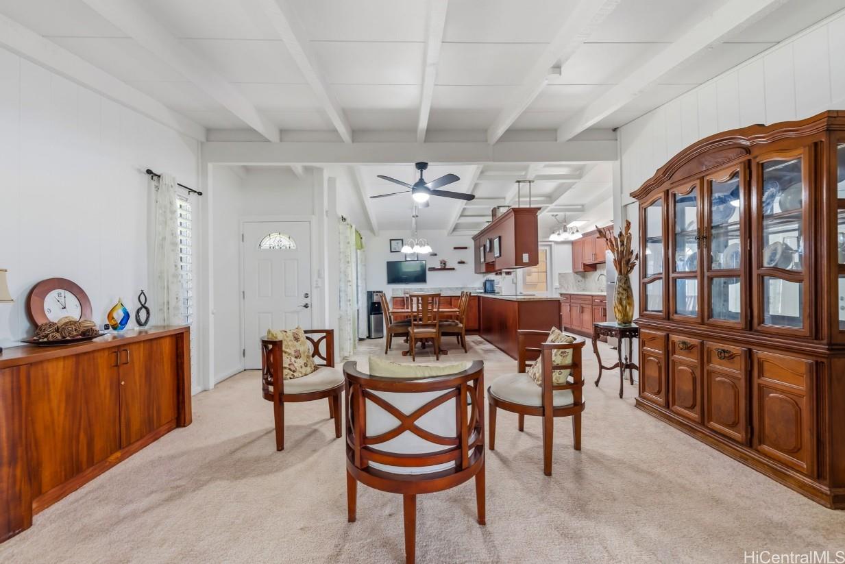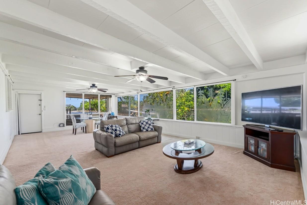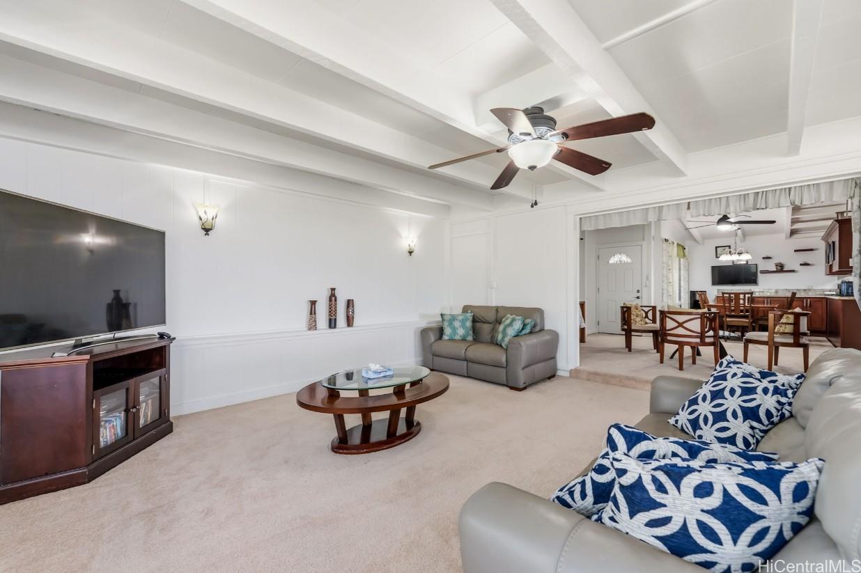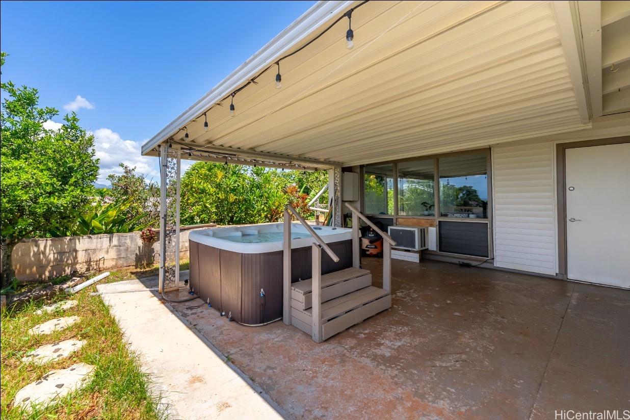 Pacific Palisades is a residential neighborhood tucked into the hillside above Pearl City. This wonderful single level 4-bedroom 2 bath home has been lovingly maintained for many years. The home has a big bright, beautiful kitchen with a dedicated dining room next to the kitchen. The open floor plan has a family room and large living room that has room a very open feel with lots of windows to let the natural light in. The home has been freshly painted in and out and has a covered patio with a nice view and hot tub to enjoy on a cool evening. There is also lots of storage and a separate room for laundry with washer and dryer for easy convenience. Home has a carport with parking for 6 plus cars and is fully fenced, which could be perfect for kids or pets. There are also fruit trees on the property including kalamansi and lemons. With close proximity to shopping, dining, schools and church. This won’t last long! Call your favorite Realtor today.