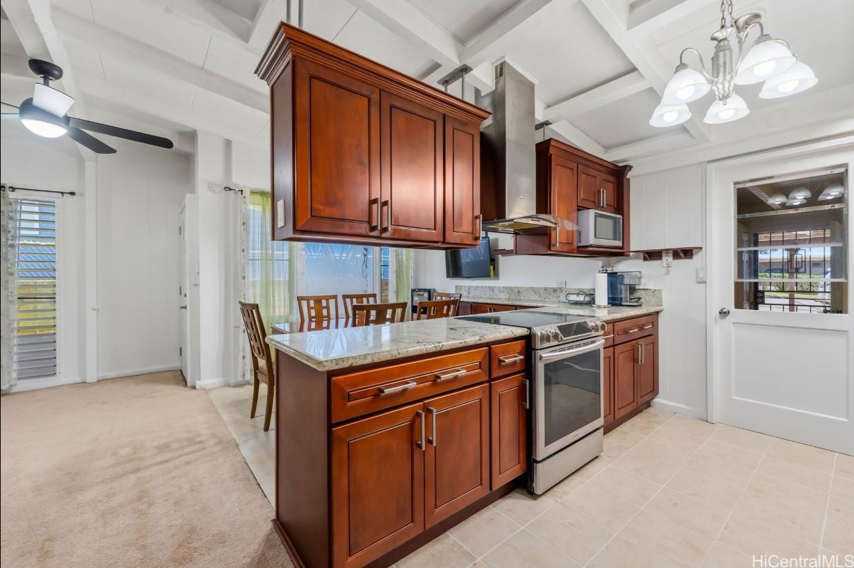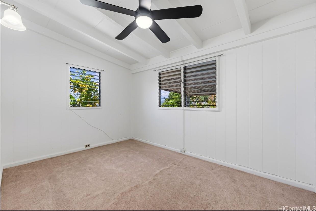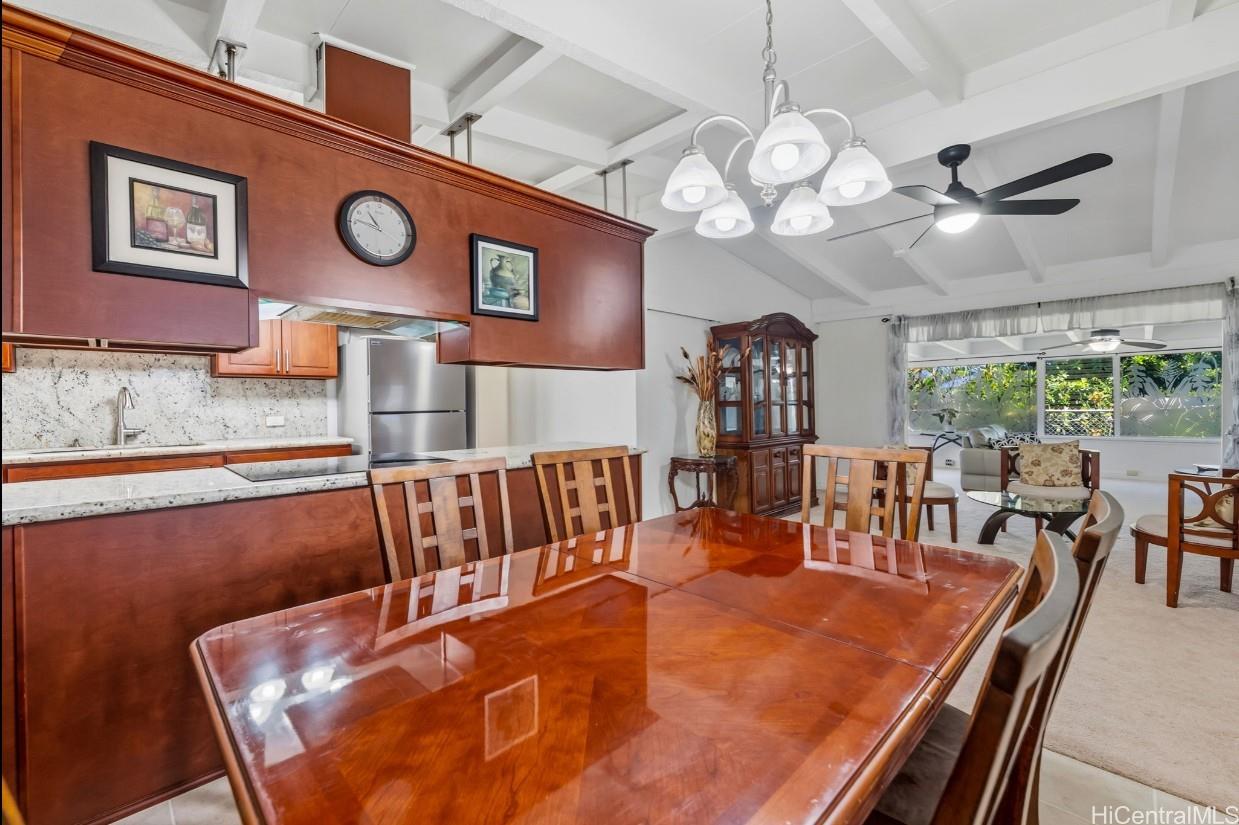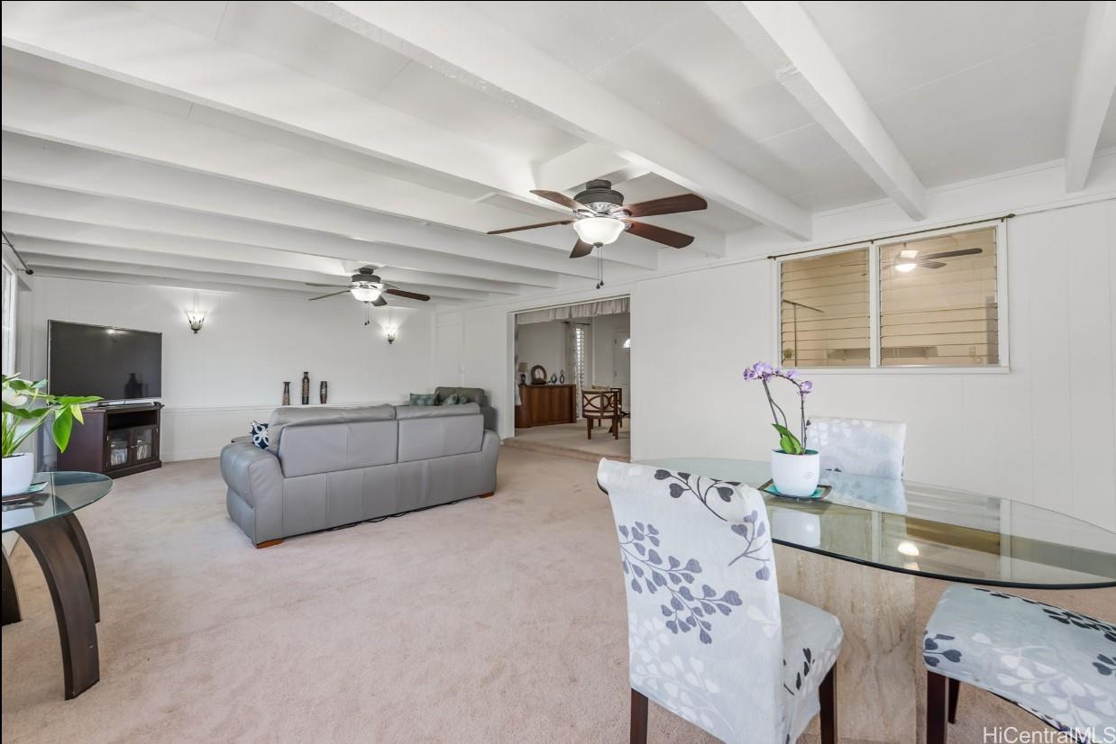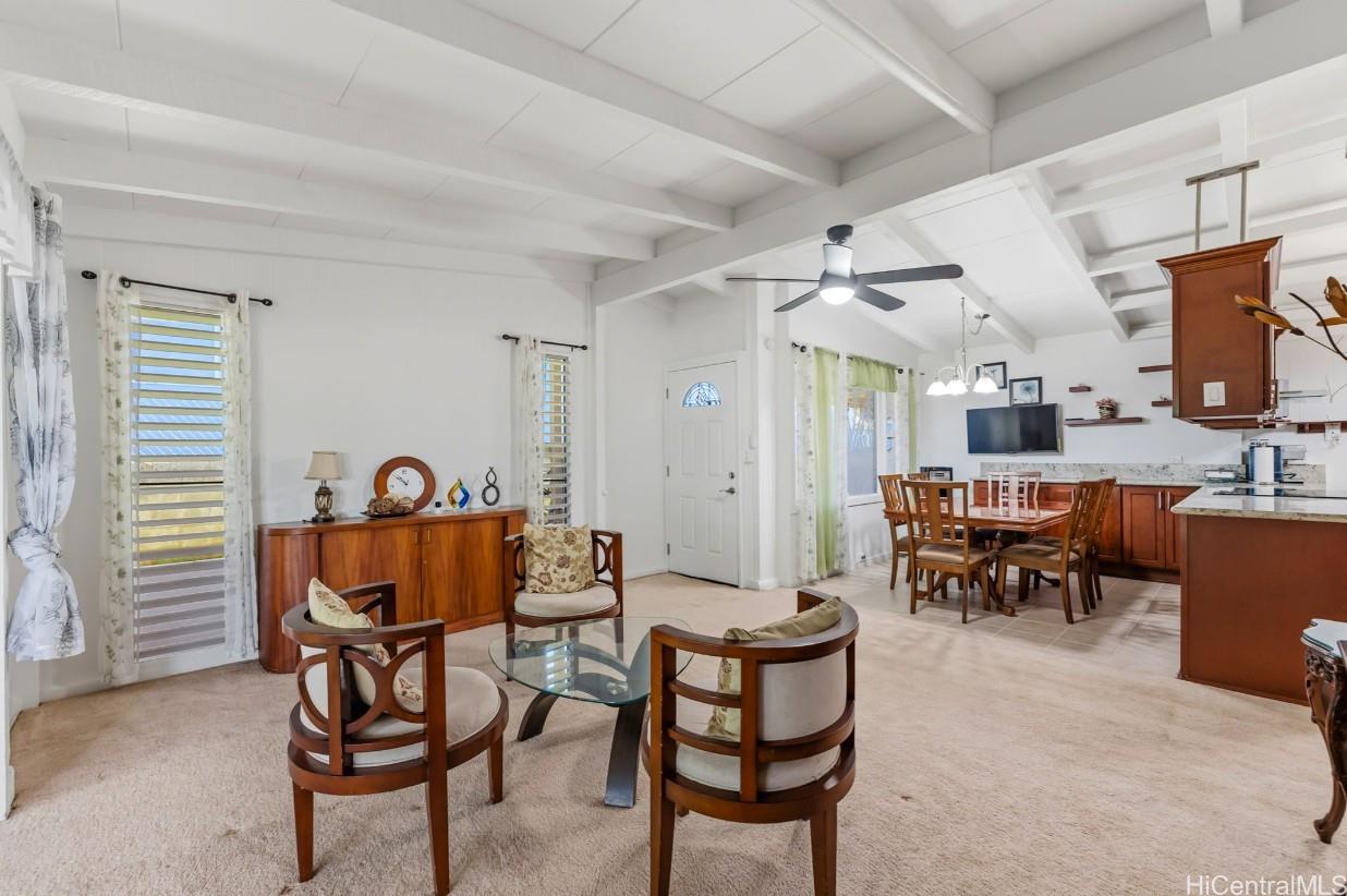 Pacific Palisades is a residential neighborhood tucked into the hillside above Pearl City. This wonderful single level 4-bedroom 2 bath home has been lovingly maintained for many years. The home has a big bright, beautiful kitchen with a dedicated dining room next to the kitchen. The open floor plan has a family room and large living room that has room a very open feel with lots of windows to let the natural light in. The home has been freshly painted in and out and has a covered patio with a nice view and hot tub to enjoy on a cool evening. There is also lots of storage and a separate room for laundry with washer and dryer for easy convenience. Home has a carport with parking for 6 plus cars and is fully fenced, which could be perfect for kids or pets. There are also fruit trees on the property including kalamansi and lemons. With close proximity to shopping, dining, schools and church. This won’t last long! Call your favorite Realtor today.