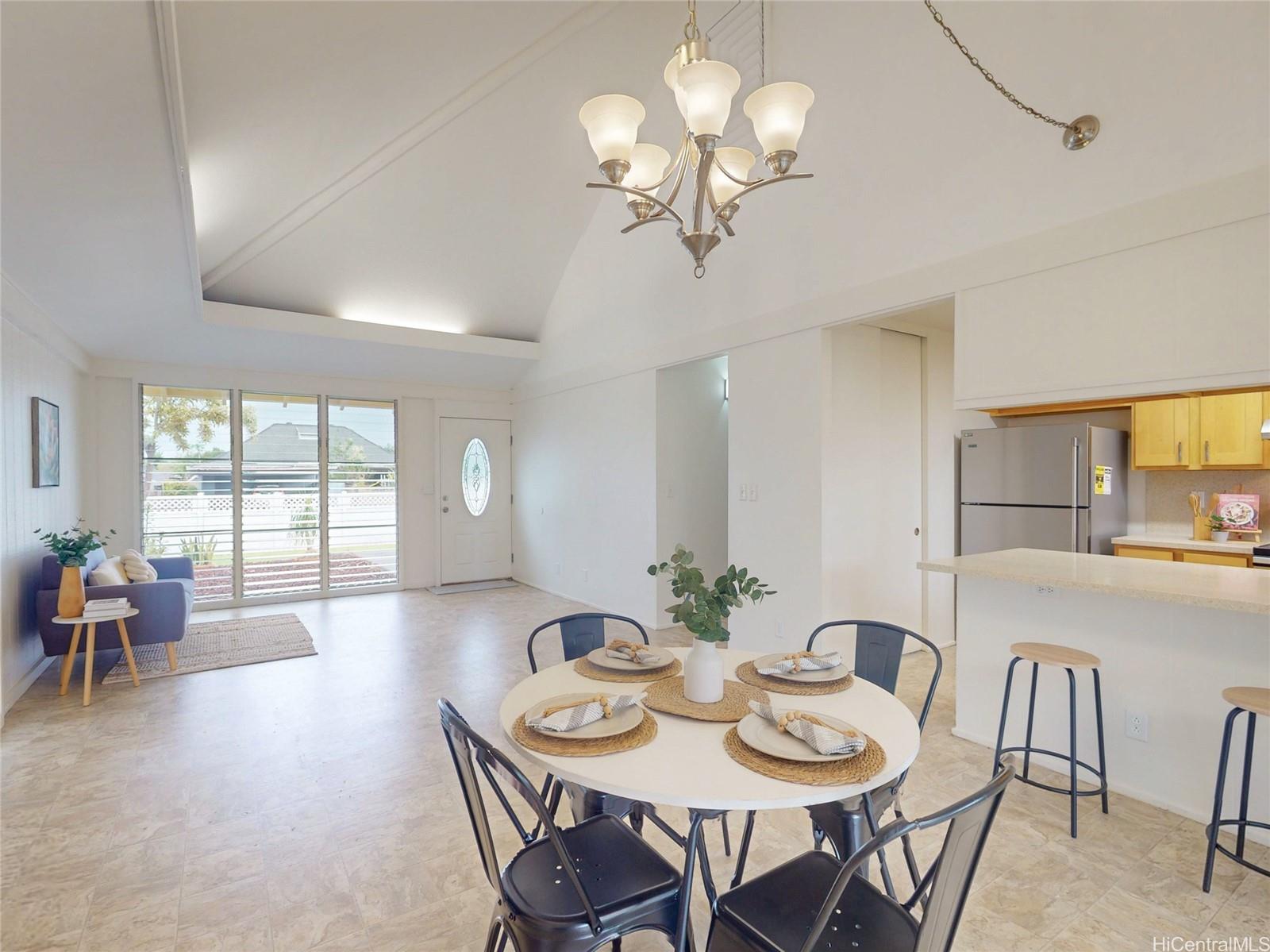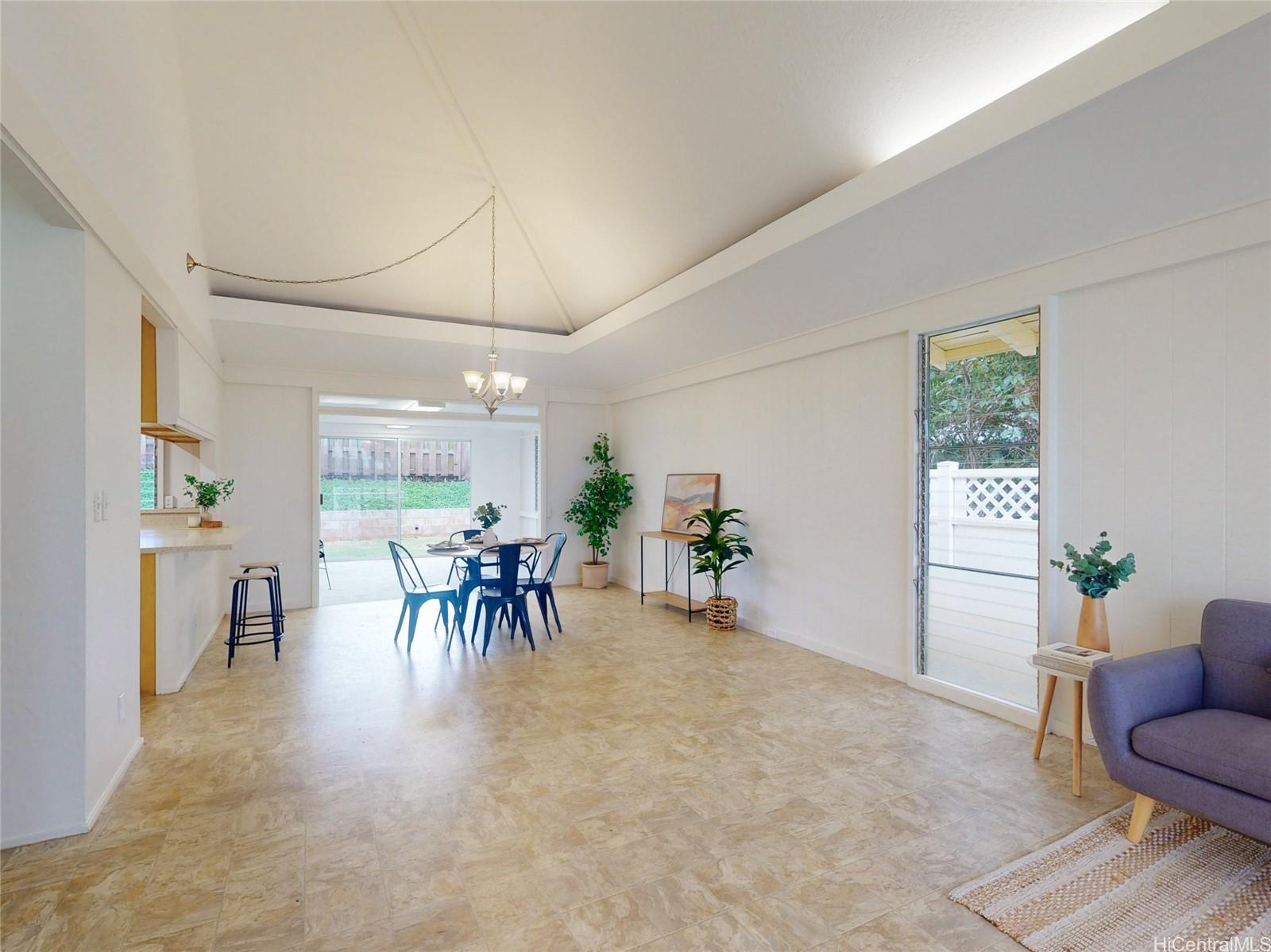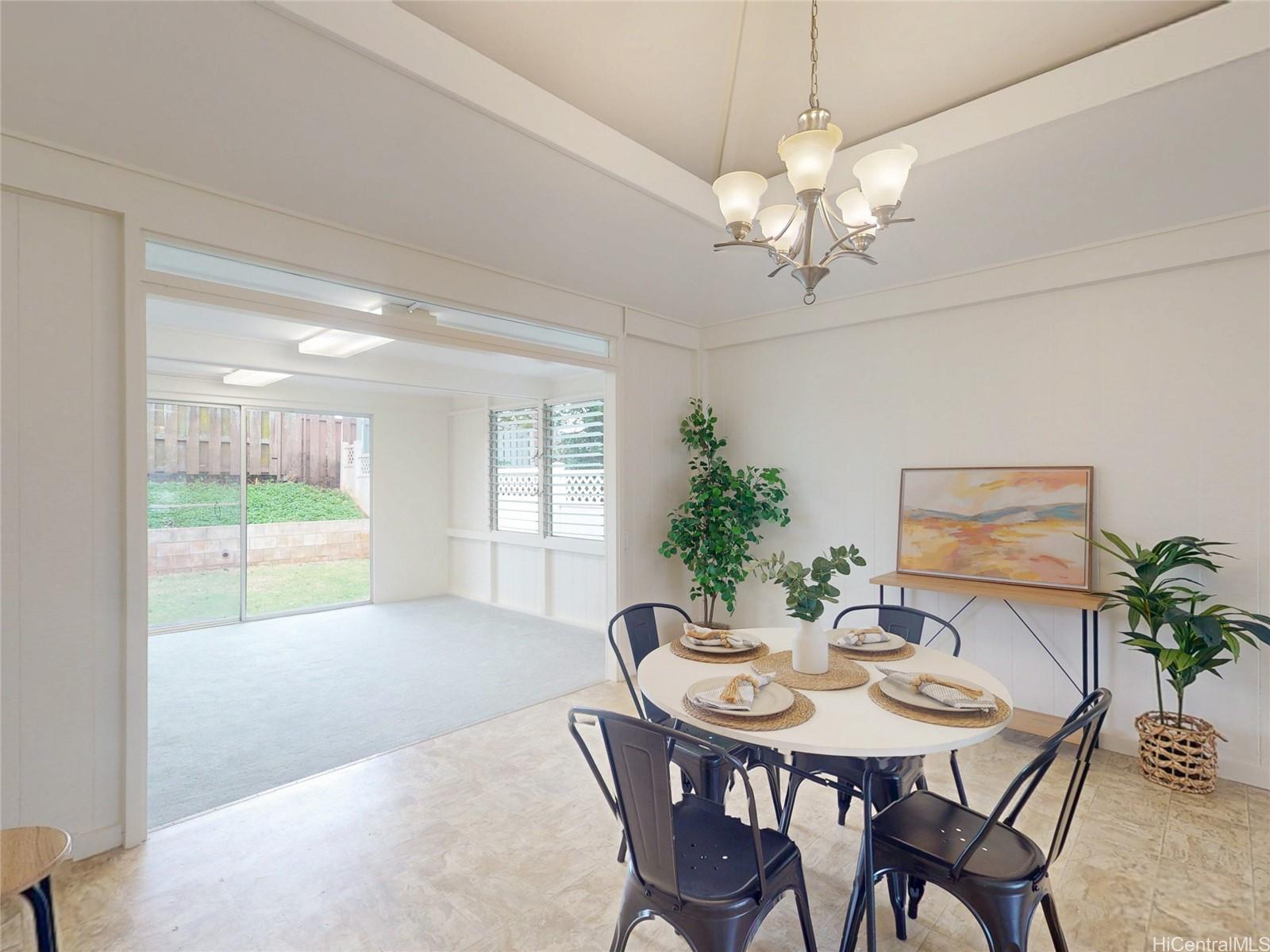 すぐにお住まいいただける平屋建ての4ベッドルーム・2バスルームの一戸建て住宅へようこそ!広々とした敷地に建ち、裏に隣家がないためプライバシーが確保されています。公園に隣接した理想的な立地で、ご自宅からわずか数歩の場所に開放的な緑地が広がっています。 最近の改修点としては、内装の塗装が新しくなりました。カーペットは新品に張り替えられ、屋根も新しくなりました。これにより、この家は次のオーナー様を迎える準備が整っています。 機能的な単層レイアウトは、屋内と屋外のシームレスな流れによる快適な居住空間を提供し、日常の生活やおもてなしに最適です。 人気のミリラニに位置し、住民はプール、クラス、アクティビティ、コミュニティイベントを備えた7つのレクリエーションセンターを利用できます。 ショッピングセンター、レストラン、劇場、週末のアクティビティに便利な立地で、セントラルオアフの暮らしの魅力を存分に味わえる住まいです。 スコフィールド兵舎とウィーラー陸軍飛行場まで、ほんの少しの通勤距離です。 注:1枚以上の写真が加工されている可能性があります。 .