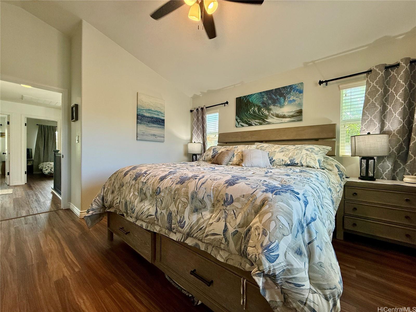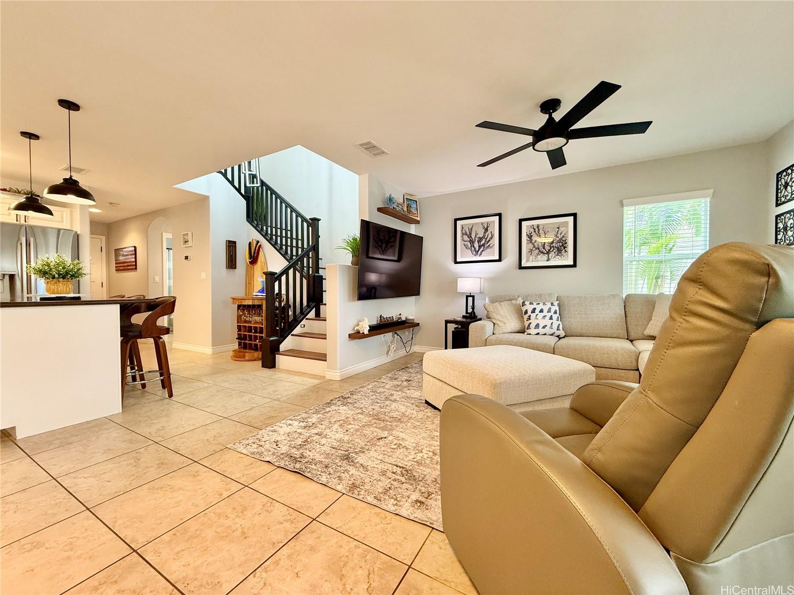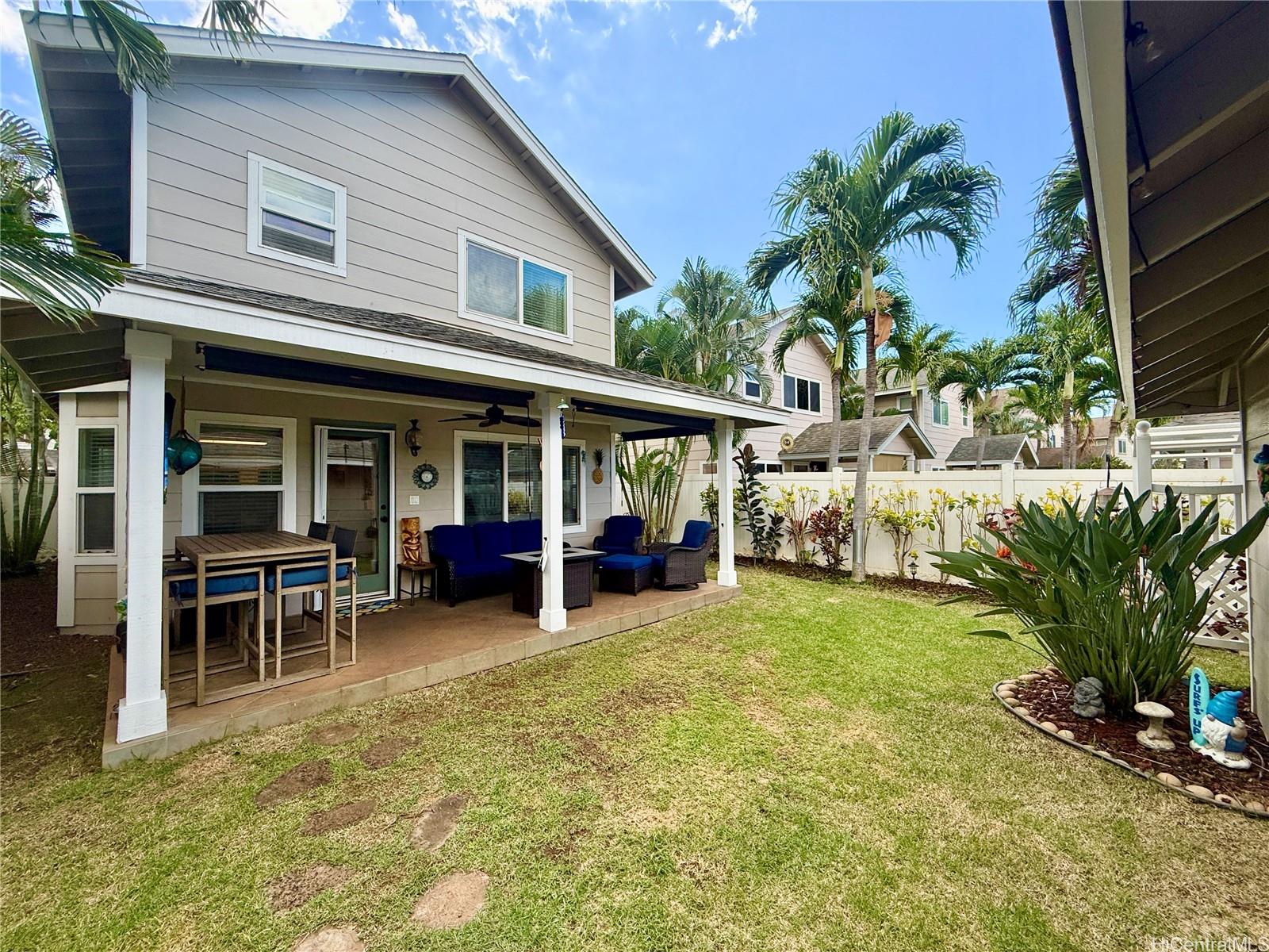 This isn’t just move-in ready, it’s move-in upgraded! This beautifully maintained 4-bedroom home has thoughtful custom touches throughout from updated lighting and modern fixtures, to give the home character you simply don’t find in standard models.Outside and you’ll immediately notice one of the standout features: an extended lanai designed for real Hawai‘i living. Whether it’s quiet mornings with coffee or relaxed evenings hosting friends, this outdoor space adds meaningful square footage to your lifestyle.A highly desirable main-level bedroom and full bath create flexible living options for guests, extended family, or a private home office. The open-concept layout flows for entertaining, connecting living, dining, and kitchen spaces in a way that feels both functional and inviting. The fully fenced yard offers privacy, while the detached two-car garage keeps parking and storage convenient.Located in the heart of Ocean Pointe, you’re just minutes from beaches, parks, Ka Makana Ali‘i, golf courses, dining, 10 mins from the rail, and everyday essentials, making it easy to enjoy everything Ewa Beach has to offer. *VA Assumption option of a 5.75% interest rate*