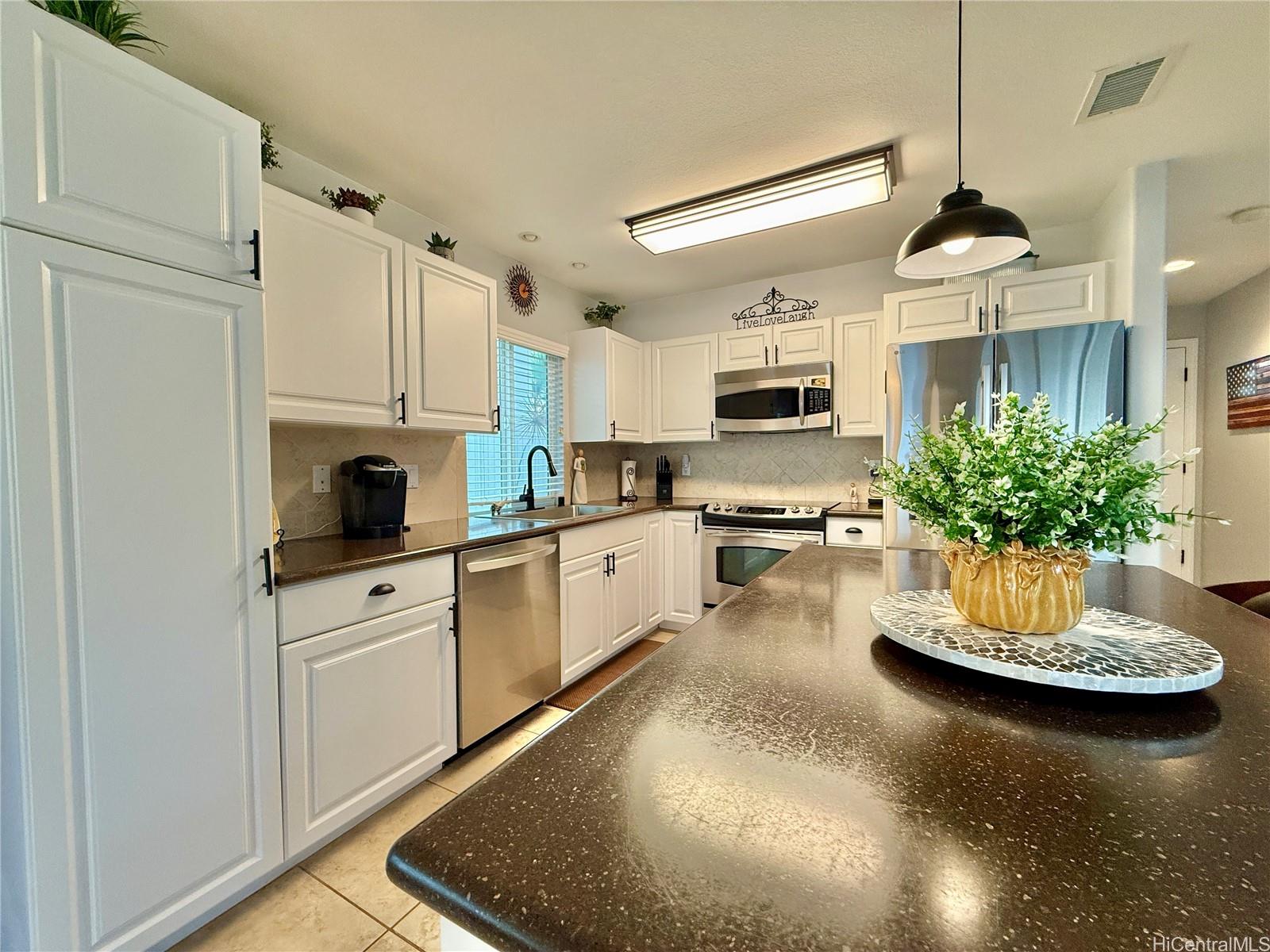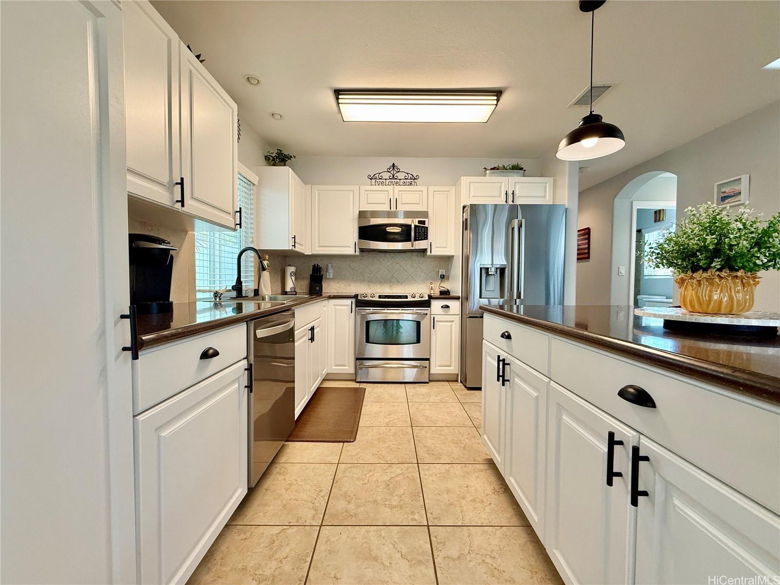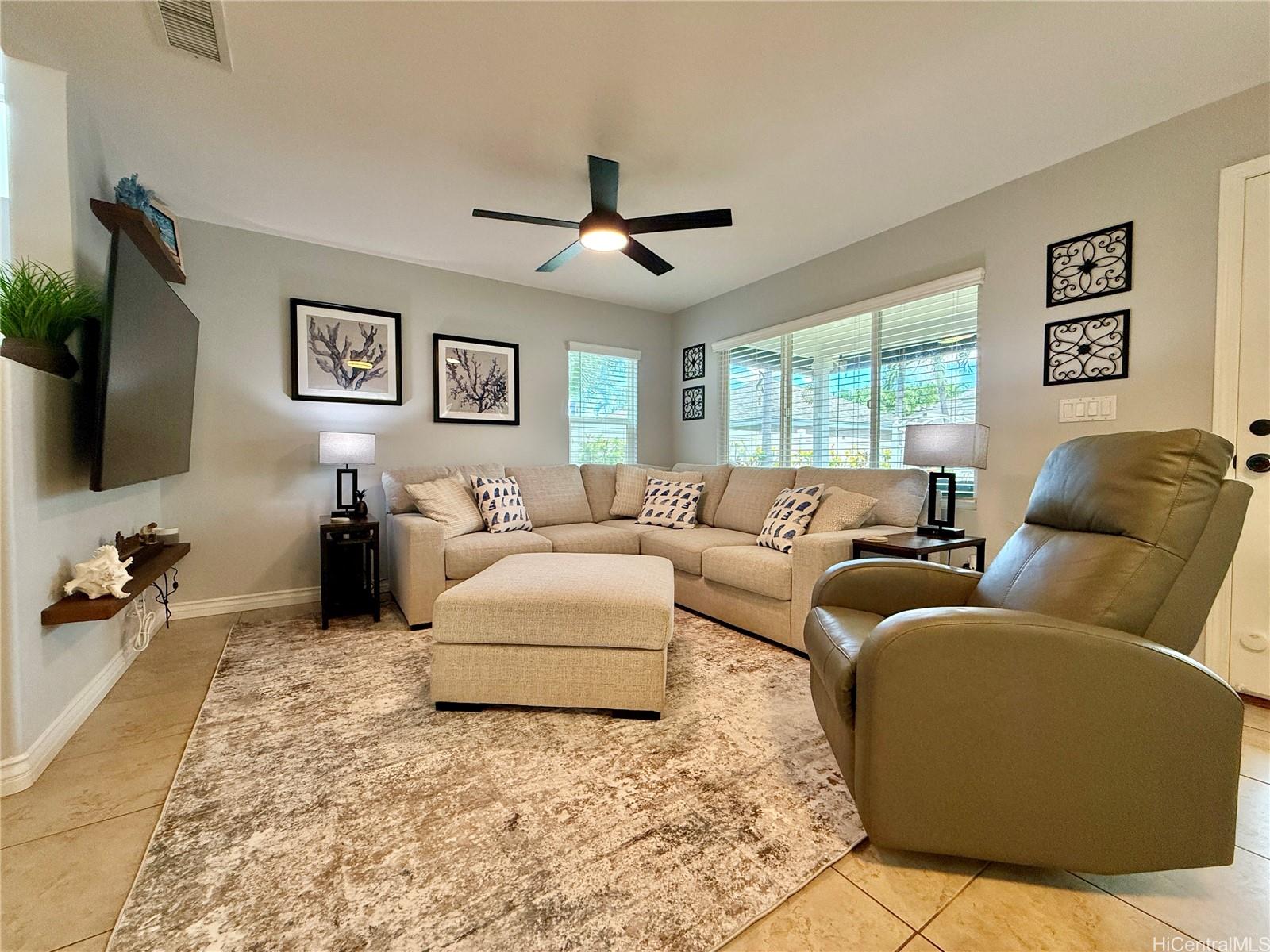 This isn’t just move-in ready, it’s move-in upgraded! This beautifully maintained 4-bedroom home has thoughtful custom touches throughout from updated lighting and modern fixtures, to give the home character you simply don’t find in standard models.Outside and you’ll immediately notice one of the standout features: an extended lanai designed for real Hawai‘i living. Whether it’s quiet mornings with coffee or relaxed evenings hosting friends, this outdoor space adds meaningful square footage to your lifestyle.A highly desirable main-level bedroom and full bath create flexible living options for guests, extended family, or a private home office. The open-concept layout flows for entertaining, connecting living, dining, and kitchen spaces in a way that feels both functional and inviting. The fully fenced yard offers privacy, while the detached two-car garage keeps parking and storage convenient.Located in the heart of Ocean Pointe, you’re just minutes from beaches, parks, Ka Makana Ali‘i, golf courses, dining, 10 mins from the rail, and everyday essentials, making it easy to enjoy everything Ewa Beach has to offer. *VA Assumption option of a 5.75% interest rate*