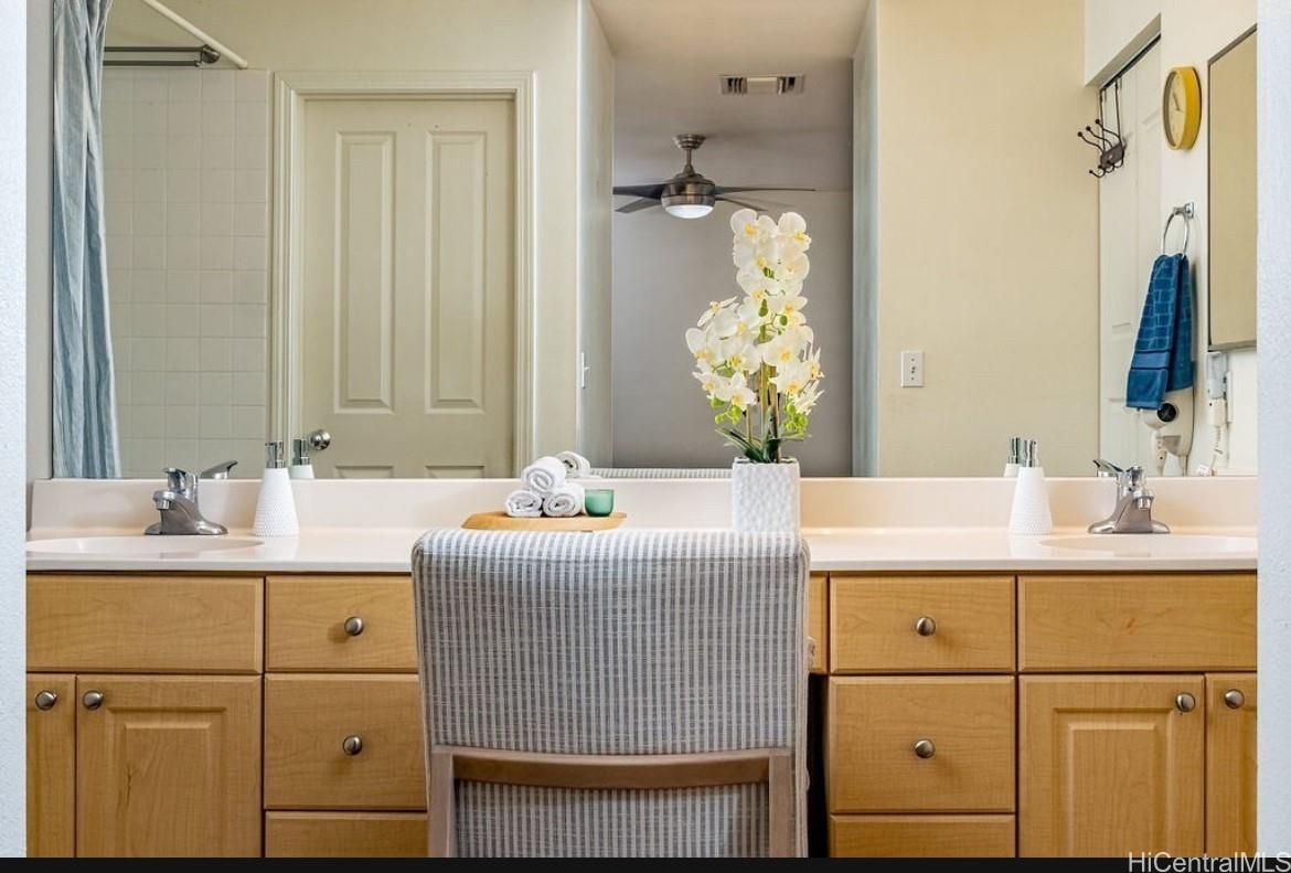 Welcome to 91-313 Hoalauna Place — a stunning, turn-key 4 beds 3 full bath home where comfort, efficiency, and modern island living come together. Step inside and be greeted by abundant natural light and an open, airy floor plan that perfectly balances style and functionality.Energy efficiency is built right in with an owned 24-panel PV system, and solar water heater, helping you keep electric bills low while enjoying sustainable living. Take advantage of a rare 2.875% VA-assumable loan (approx. $4,383 PITI) — an incredible opportunity in today’s market — paired with super low $50/month HOA dues and no maintenance fees.Outdoors, enjoy your private backyard oasis featuring mature, fruit-bearing avocado, orange, and banana trees, ideal for relaxing or entertaining. The automatic sprinkler system keeps the entire yard lush and easy to maintain, while central AC ensures year-round comfort inside.Conveniently located in a desirable Ewa Gen Prescott neighborhood, this home combines energy savings, comfort, and value — truly a rare find!