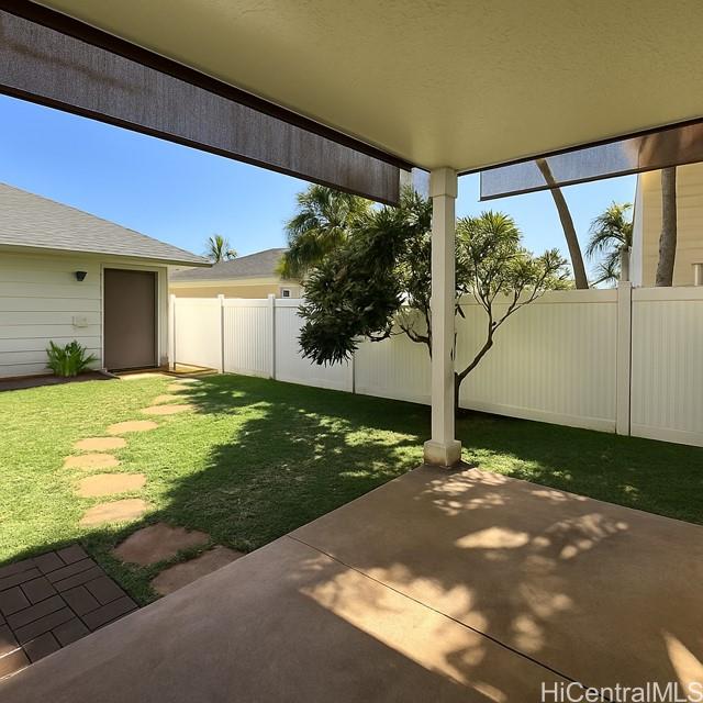 Wonderfully spacious 4 bed, 2.5 bath single family home in Ocean Pointe, with 2 car garage and extra driveway parking for oversized vehicles! Featuring brand new plantation shutters on all tinted windows, ceramic tile and carpet flooring, two solar hot water systems, upgraded washer/dryer and a large private backyard perfect for entertaining. Enjoy energy savings with a 10.08kW solar PV featuring 22 high efficiency panels. The upgraded kitchen features new cabinets, countertops, stainless steel appliances, Samsung smart refrigerator and dishwasher. Situated close to parks, schools, shopping center, and golf courses! This property is part of the Ke’Alohi Kai Community Association, and the Ocean Point Community Master Association.