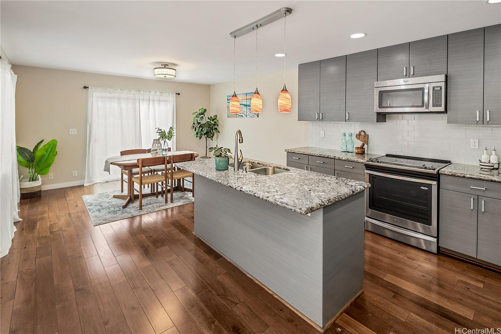 Attached CPR single-family home located in the Punchbowl area of Honolulu. Built approximately 10 years ago, this two-story residence offers a functional floor plan with 4 bedrooms and 2.5 bathrooms. The property includes a two-car garage plus driveway parking and a fenced patio/yard area, providing additional outdoor space for an in-town location.Interior features include wood flooring on ground floor, stainless steel appliances, granite countertops, cabinetry, and split air-conditioning systems throughout. The home is centrally located with convenient access to the H-1 freeway, Downtown Honolulu, Kaka?ako, Queen’s Medical Center, universities, dining, shopping, and other services.This is a CPR’d attached single-family residence with no maintenance fees. The four-bedroom configuration allows for flexible use and accommodates multiple occupants.