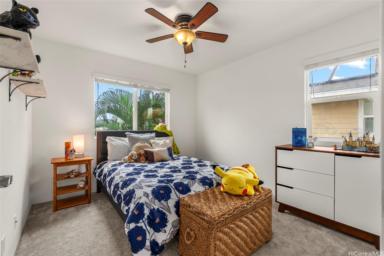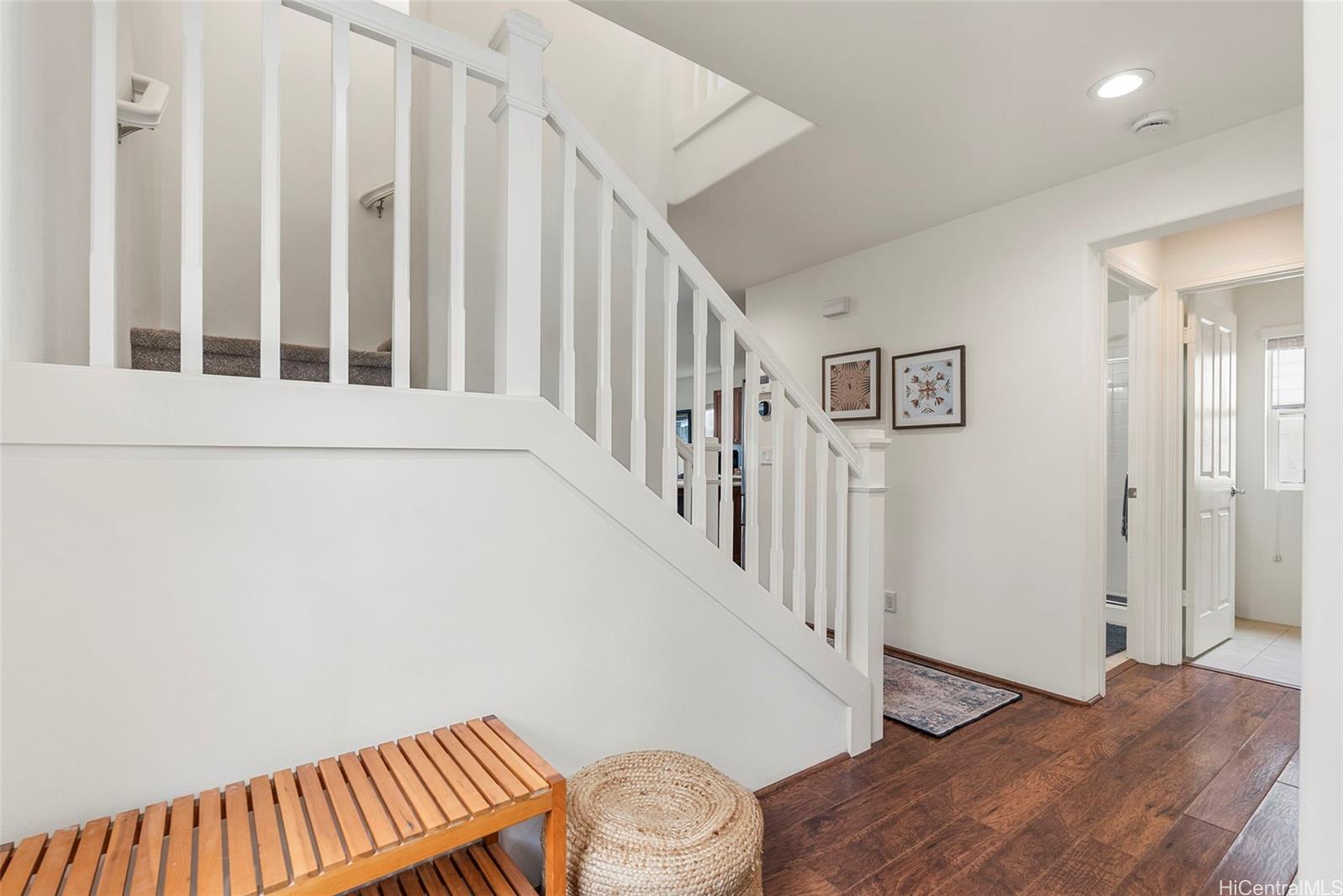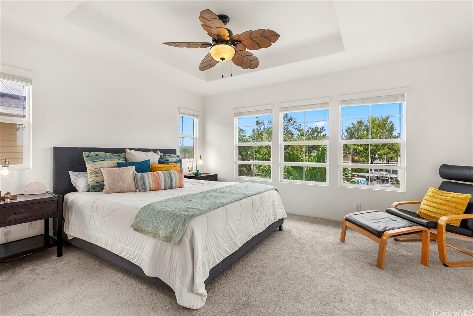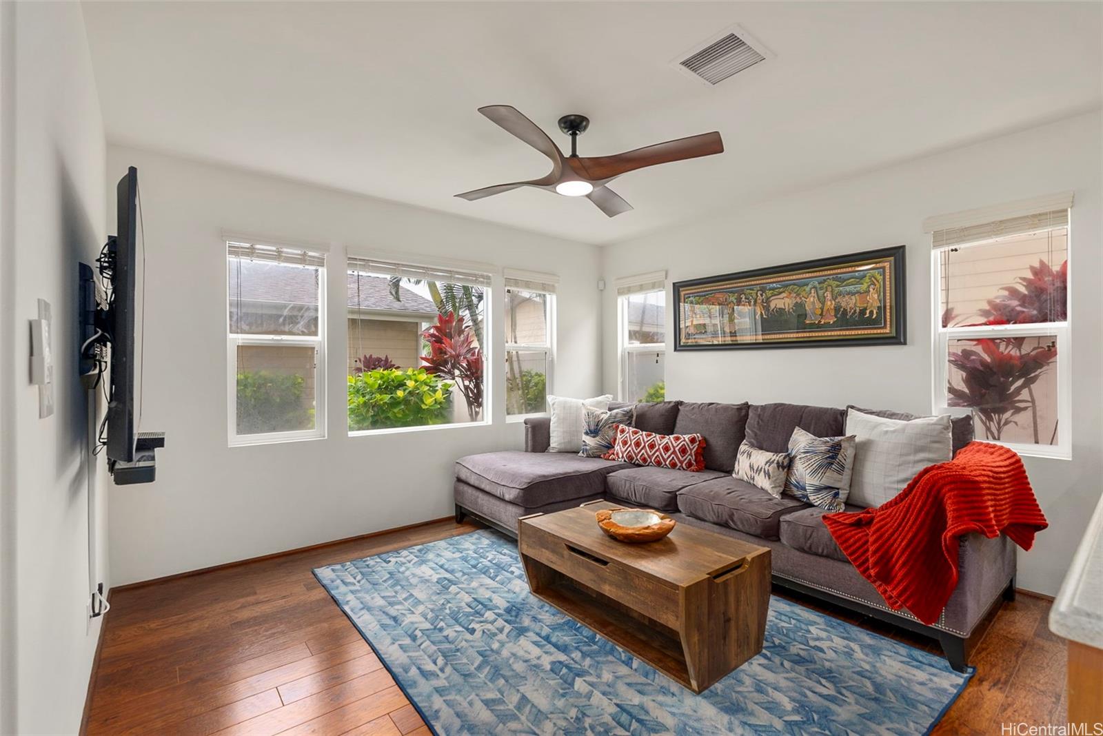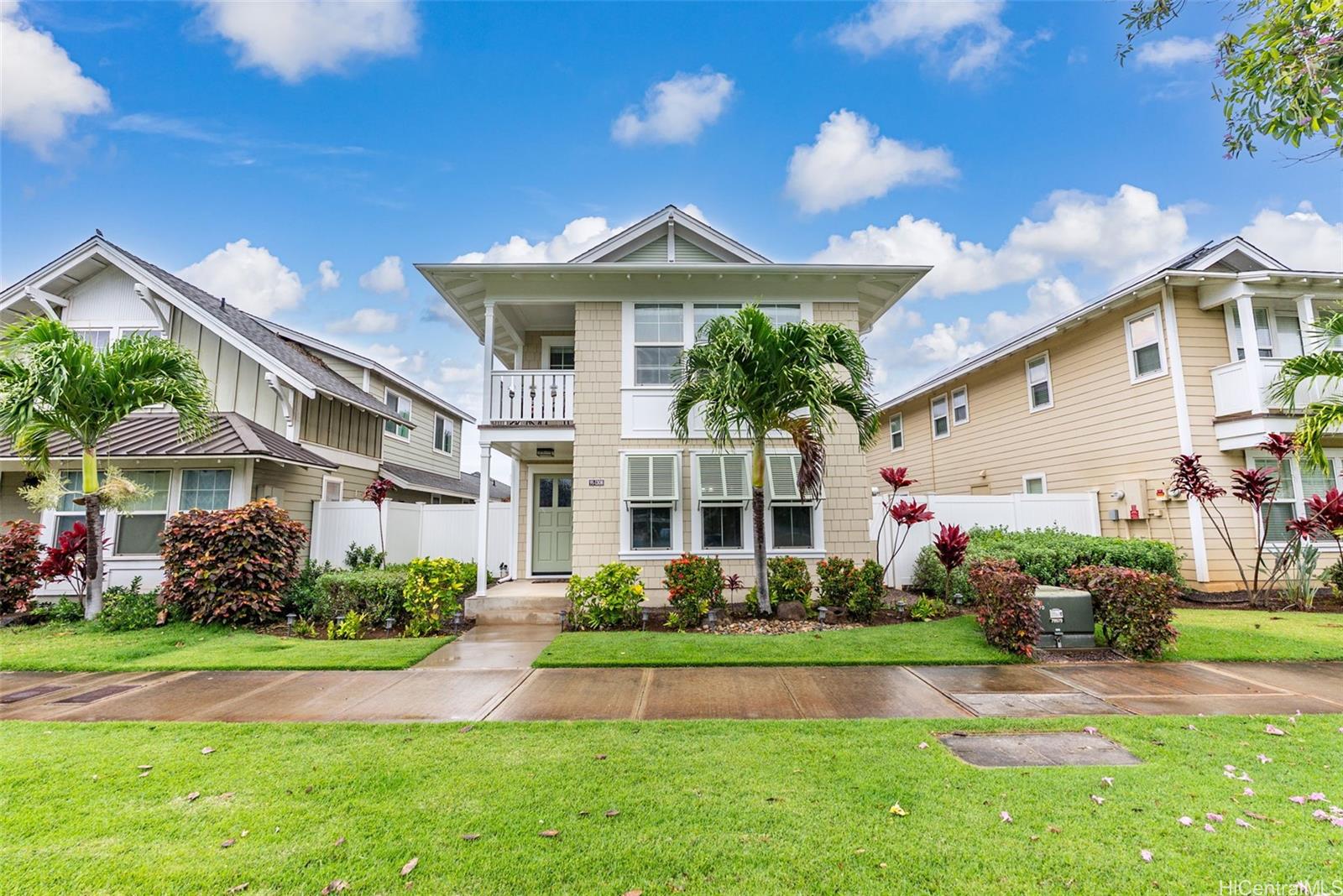 Welcome home to Kuapapa at Hoakalei! This pristine 4-bedroom, 3-bath residence instantly feels special. From the lush landscaped yard and colorful hibiscus to the charming pineapple trim on the upstairs wood deck, this home is filled with warmth, personality, and pride of ownership. The flexible floor plan includes a bedroom and full bath on the first floor, ideal for guests, multigenerational living, or a home office, while the primary bedroom upstairs opens to a private deck. Features include laminate flooring, 30 owned PV panels with 2 Tesla batteries, solar water heater, smart WiFi irrigation, and so much more. Exterior painting was completed in 4/2026. As part of the Kuapapa community, enjoy access to the private Wai Kai Lagoon plus neighborhood amenities including a resort-style pool and hot tub. HOA dues include cable, high-speed internet, and home phone service. Near guest parking with additional street parking nearby. A warm and welcoming home you will want to experience in person! 1st Public Open House is Sunday, 4/19, 2-5pm.