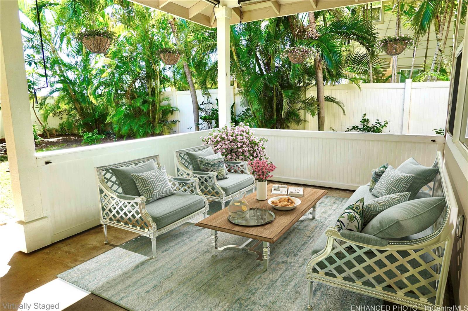 広々とした2/2、駐車場2台付き、好評の'01'角部屋、ラナイ付き。 クオーツ・カウンタートップを備えた最新のキッチンとバス・キャビネット。 広々とした間取りで、大きなダイニングテーブルと椅子も楽に置ける。 明るく風通しの良いユニ ...