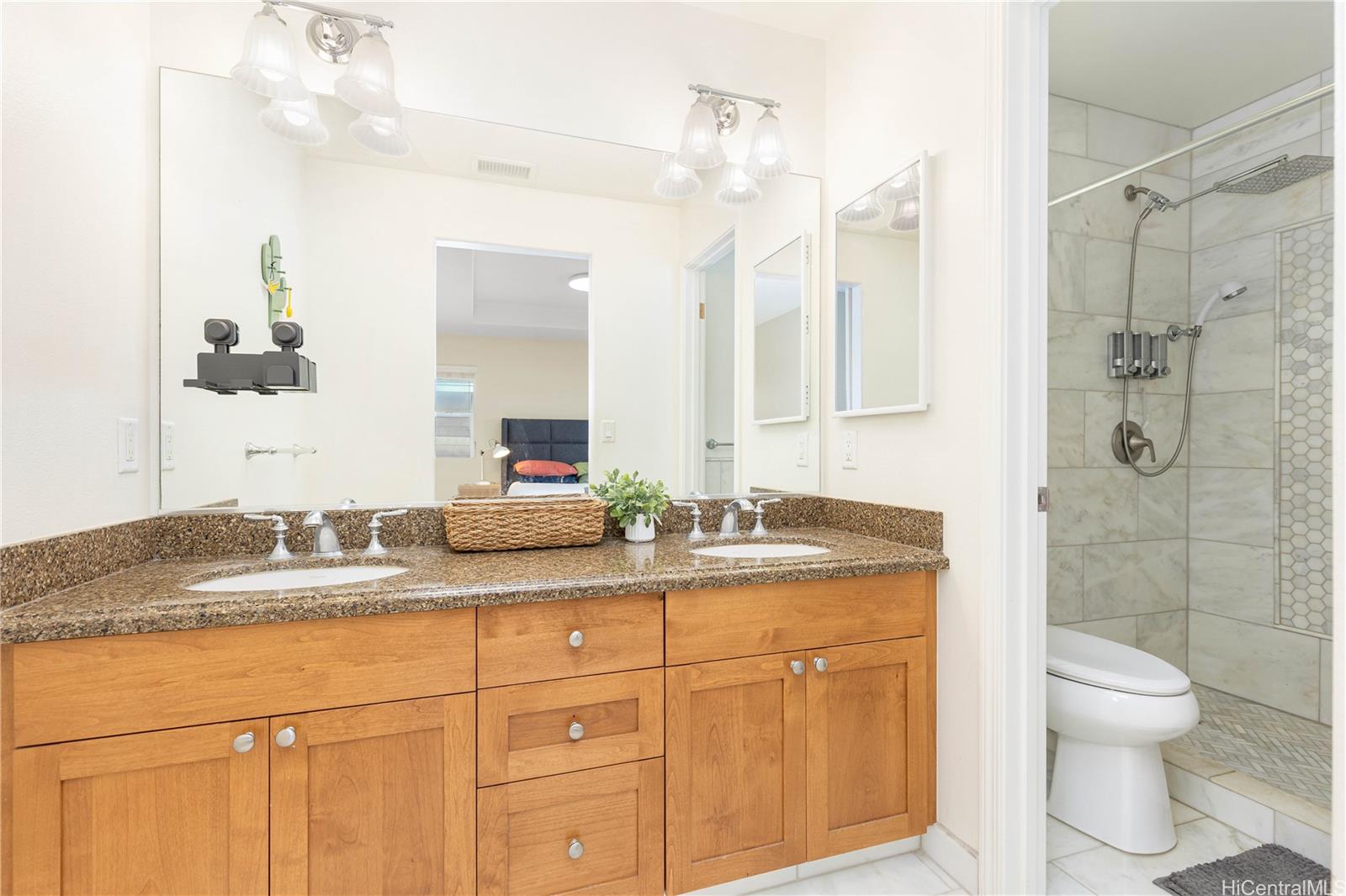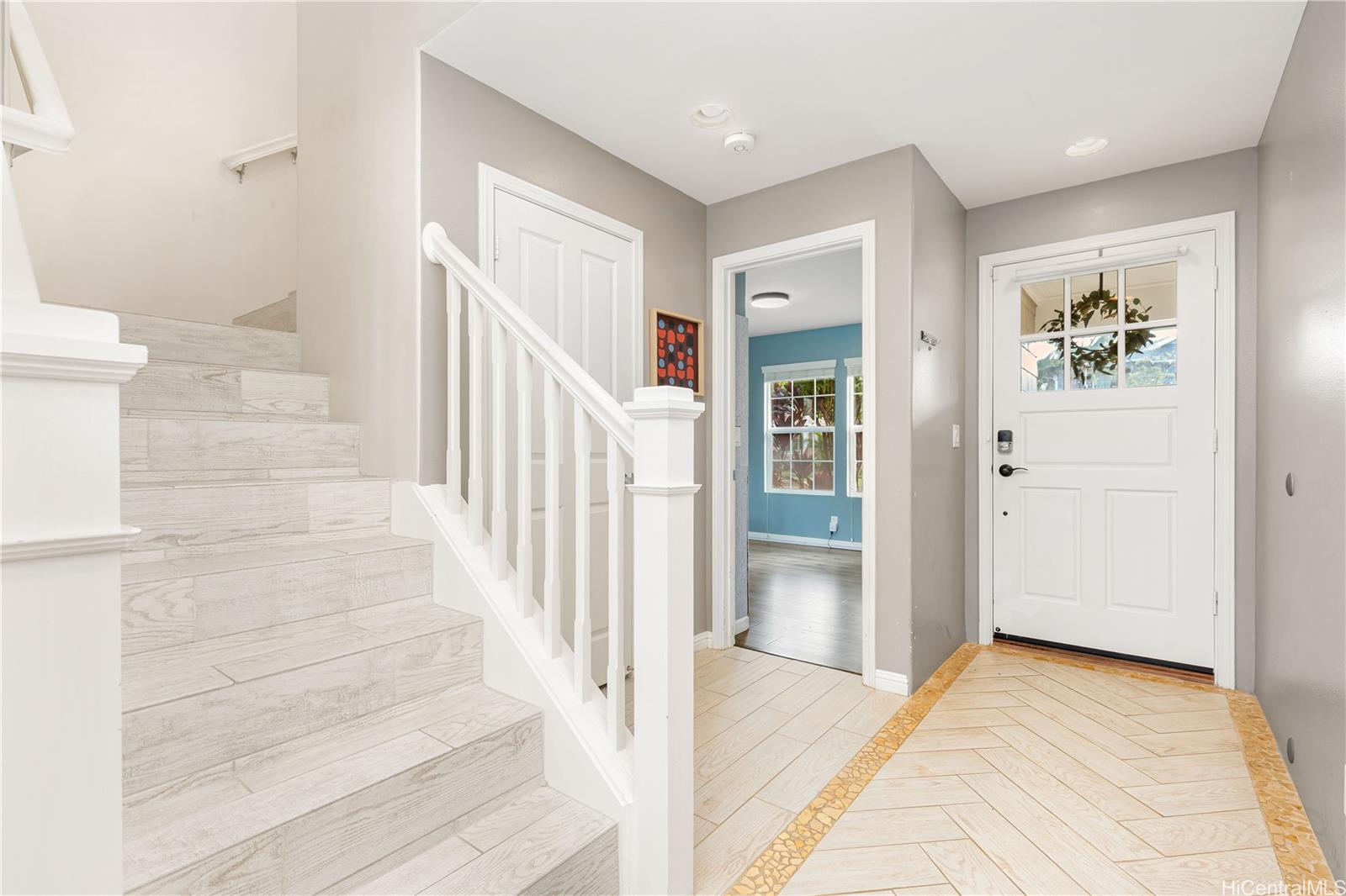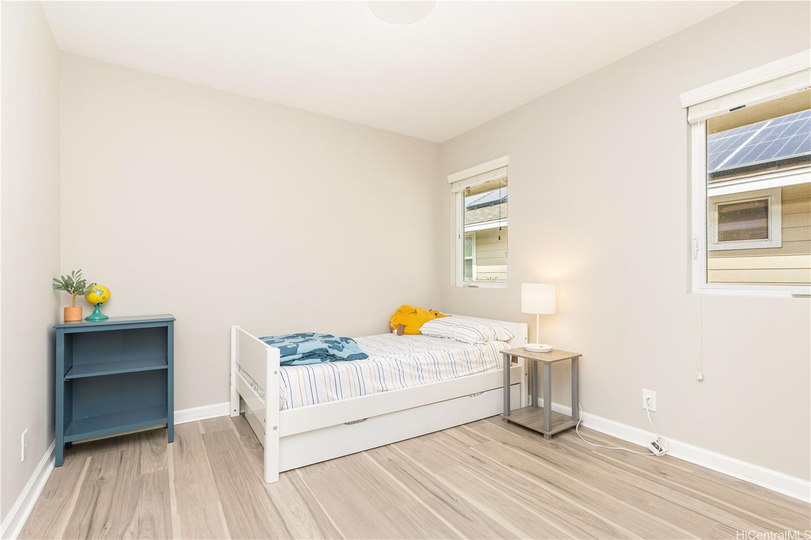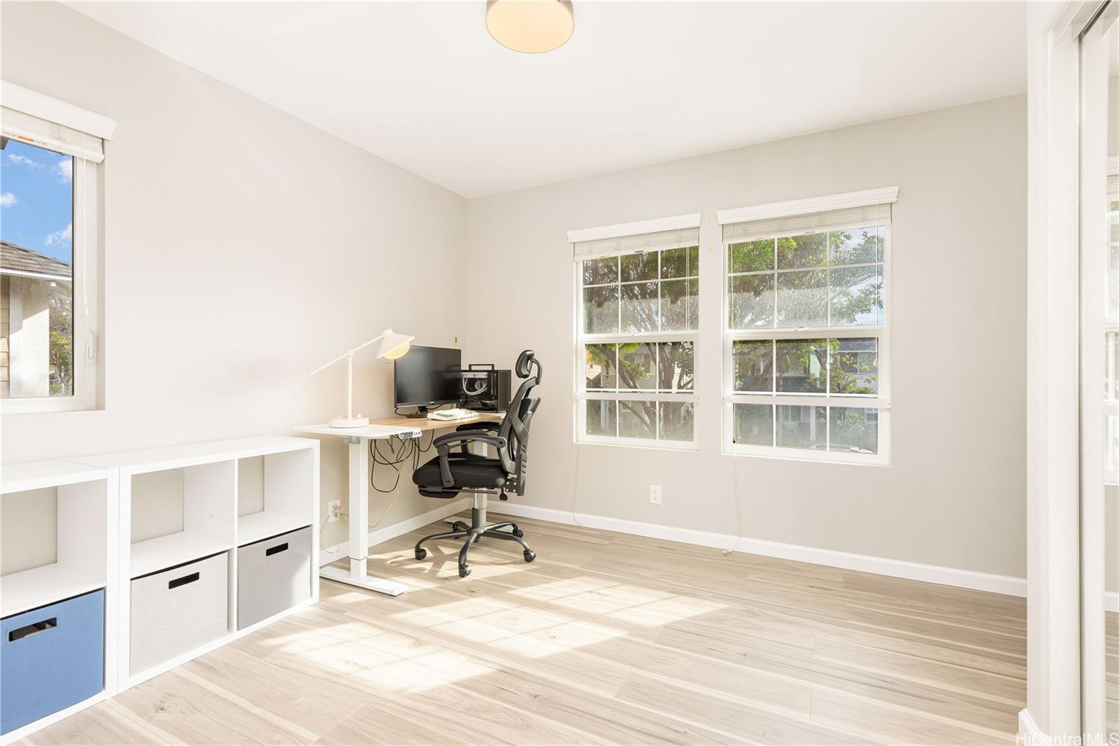 Experience the resort-style living in this move-in ready 4 bedrooms, 3 baths house in the beautiful community of Kuapapa at Hoakalei. This bright and airy home features a bedroom and full bath on the first floor, perfect for a visiting guest. Open floor plan welcomes you with ceramic tile floors throughout the first floor, stairs, hallway, & primary bedroom. The second floor leads to primary bedroom with closet system installed in primary bedroom closet and a marble tiled shower in the primary bath, a study/office nook area, 2 additional bedrooms and a 3rd bathroom. Upgrades include upstairs two bedrooms LVP floorings and paints. Enjoy the breeze from the covered front porch or back lanai. Home is equipped with 28 leased photovoltaic panels with 2 batteries to keep your electric bill low all year long. HOA fee includes cable, internet, access to Wai Kai Hale Club and Kuapapa swim club with pool, spa, and BBQ areas. Stroll down the street to the recreation & entertainment center at Wai Kai with surf wave pool, restaurant/bar, special events, and many more. Short distance to beaches, golf courses, shopping, restaurants, schools, and Kamakana Ali’i shopping mall.