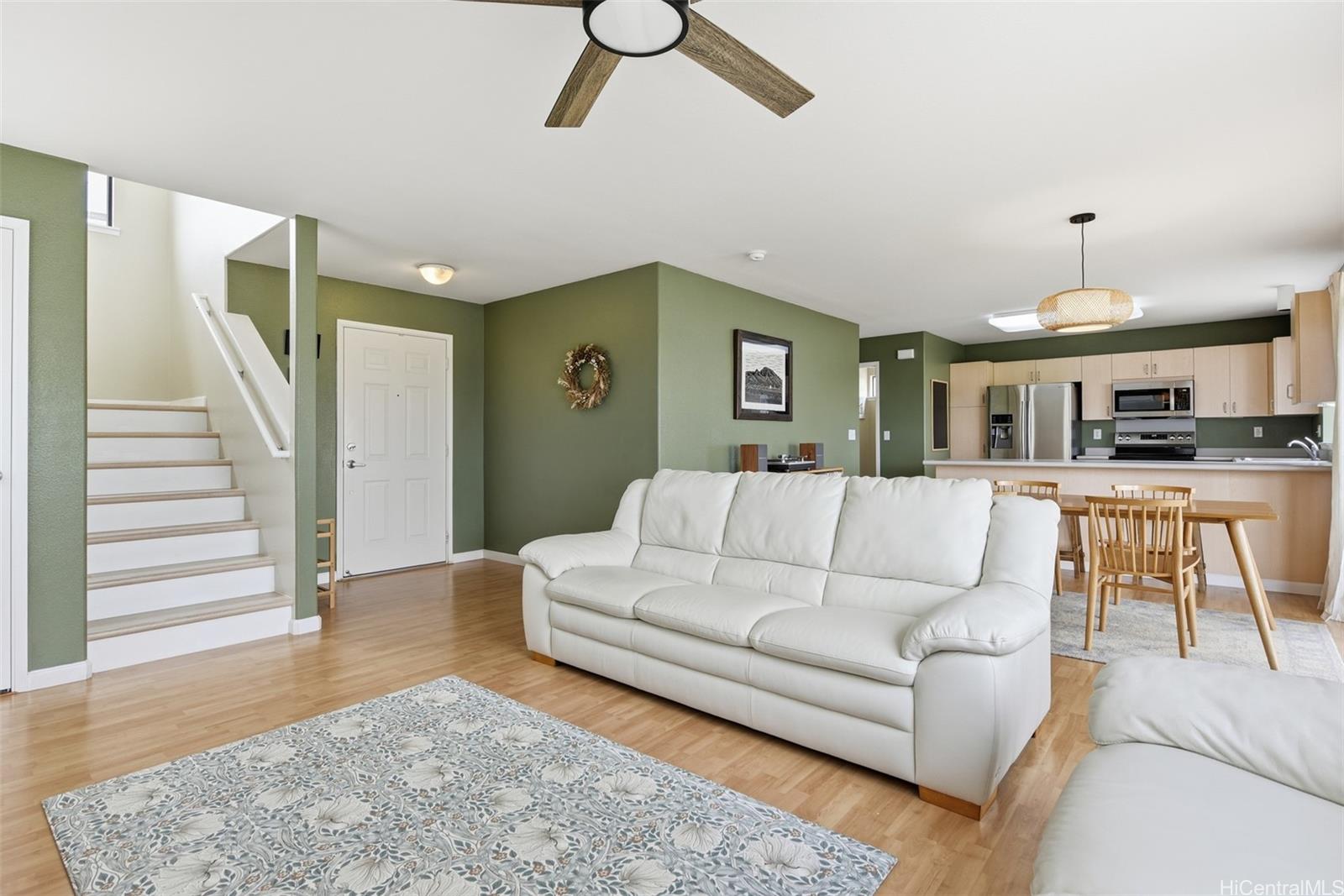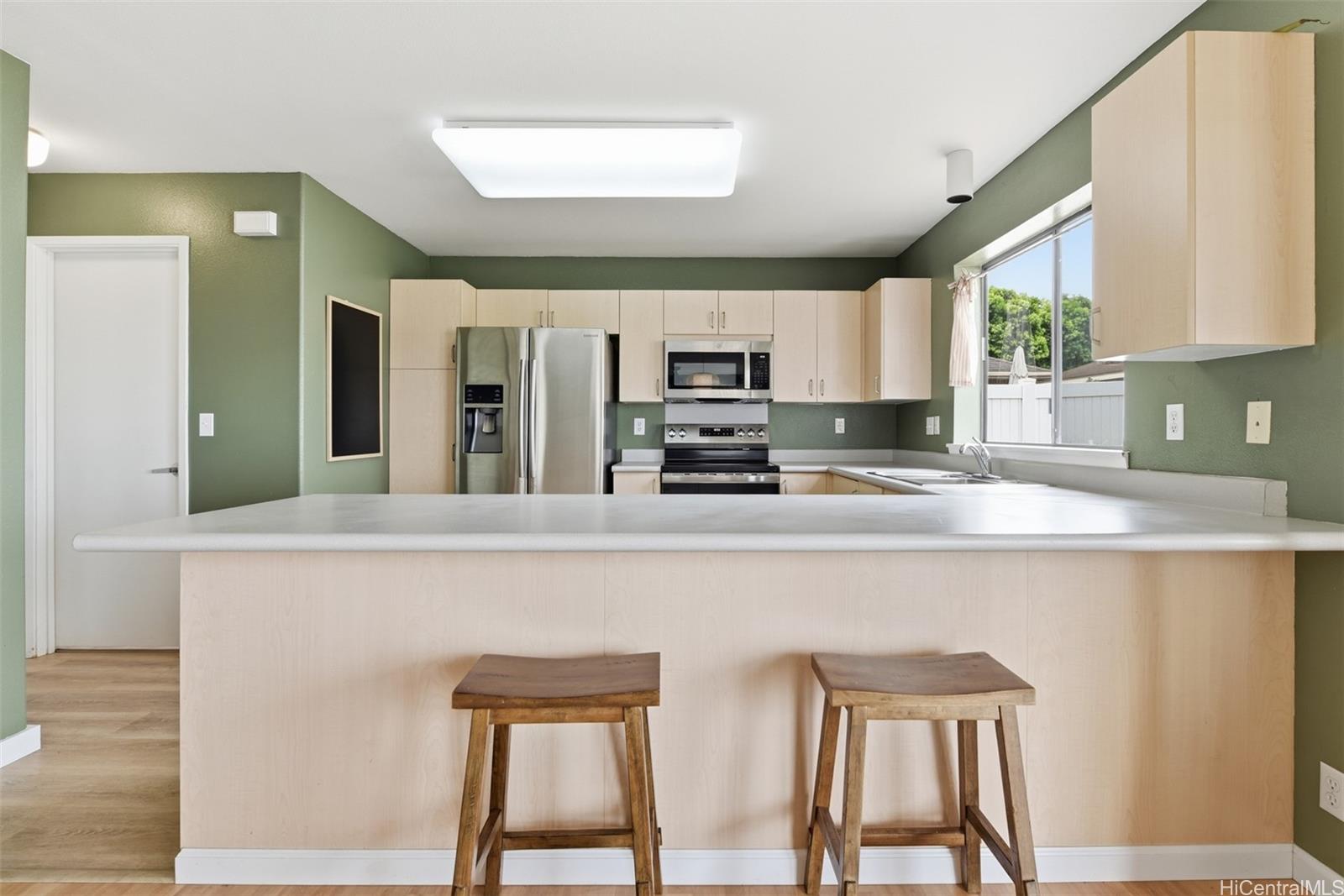 Tucked at the end of a quiet cul-de-sac in Royal Kunia, this 4-bedroom, 2.5-bath rim lot home offers privacy and open mountain views with no rear neighbors. Inside, the home has been well maintained and thoughtfully updated, creating a clean, move-in-ready space. The flexible four-bedroom layout provides room for guests, a home office, or growing households, and the 2.5-bath floor plan keeps daily life efficient and functional. The fully fenced backyard captures the breeze and offers space to relax or entertain. Located in the Royal Kunia community near parks, recreation areas, and everyday conveniences, this home combines comfort, privacy, and a practical layout in a desirable setting.