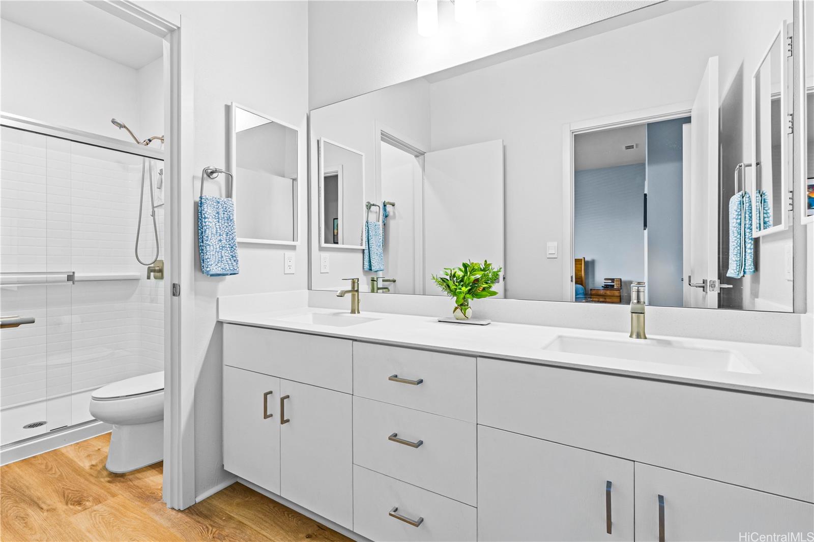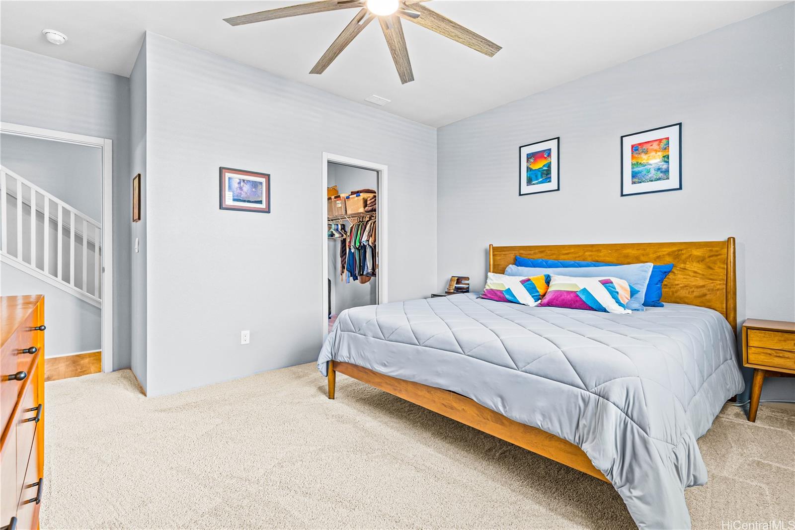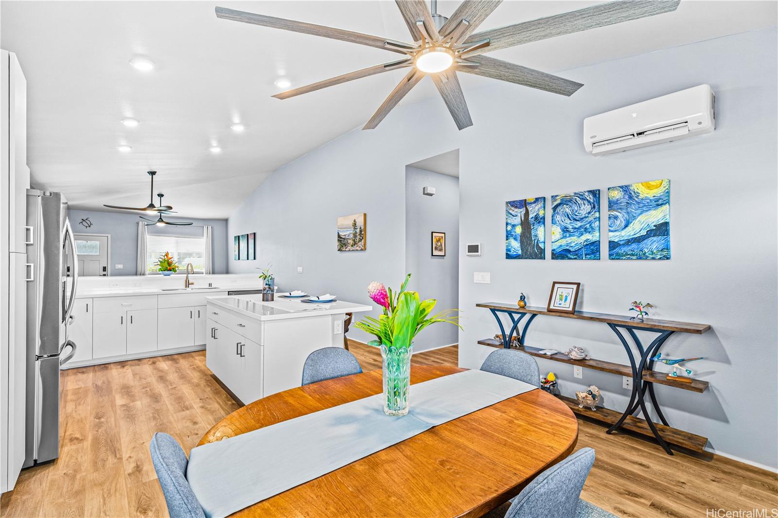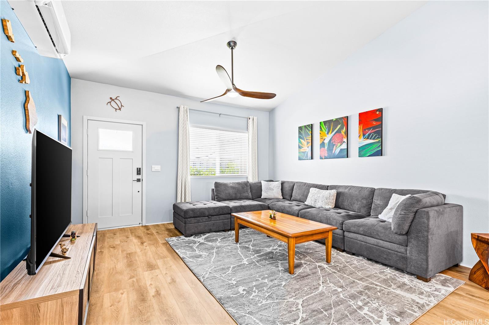 Rare ground-floor primary suite & owned solar system! The one you’ve been waiting for! Discover the pinnacle of modern island living in this pristine 4-bedroom, 2.5-bath single family home in the highly sought-after Kanalani at Hoopili community. Built in 2023, this newer residence offers a thoughtfully designed layout with spacious living areas, abundant natural light, and contemporary finishes throughout.The open-concept kitchen flows seamlessly into the living and dining areas as well as the family room, offering a versatile layout ideal for both everyday living and entertaining. The primary bedroom is conveniently located on the ground floor and features a private en-suite bathroom.Enjoy energy efficiency and long-term savings with 21 owned PV panels paired with a Tesla Powerwall battery, providing sustainable power and added peace of mind.This home has been meticulously cared for and offers the perfect blend of comfort, style, and convenience in one of Ewa Beach’s most sought-after communities. Don’t miss this opportunity to own a stunning home in Hoopili!