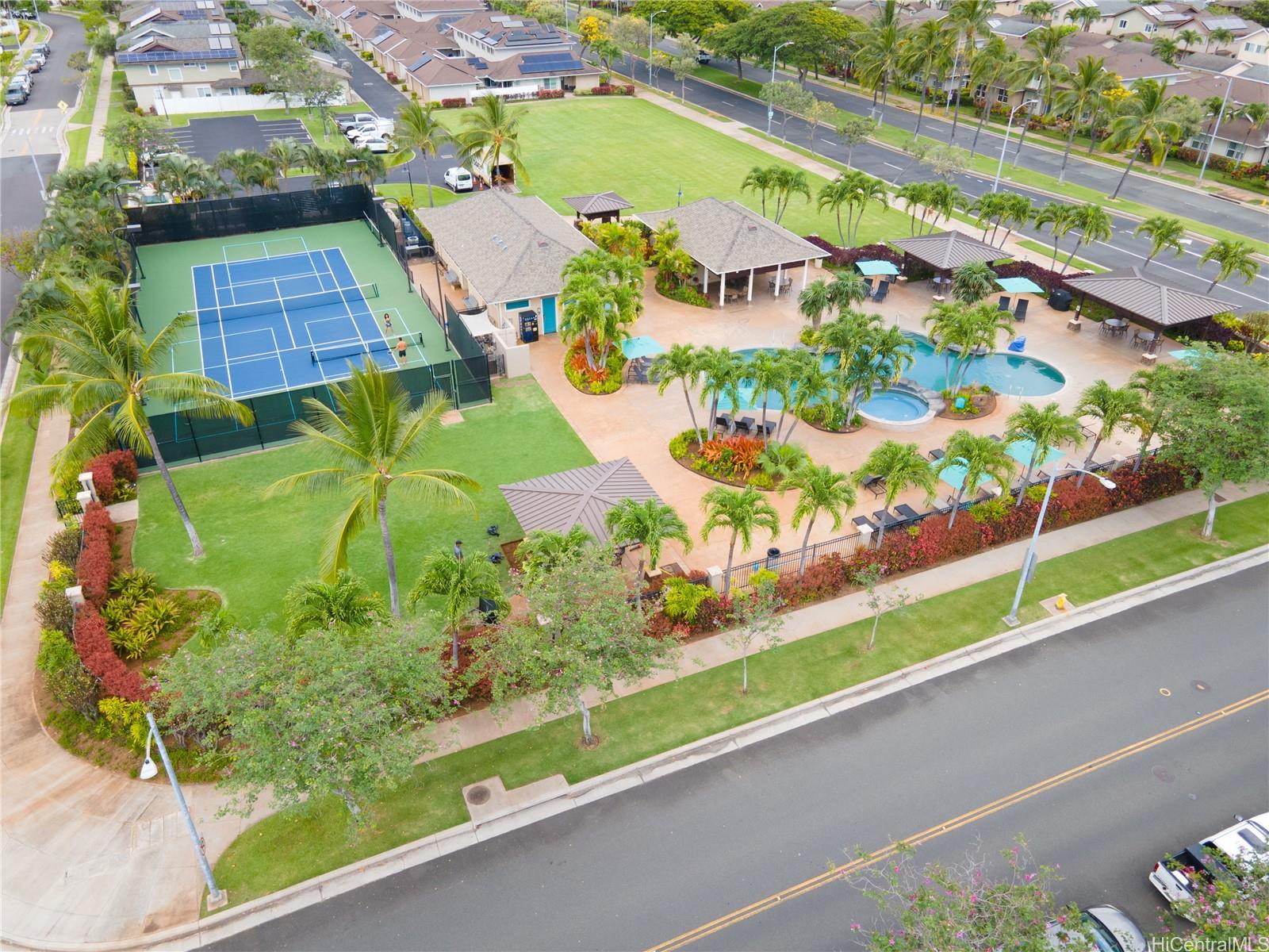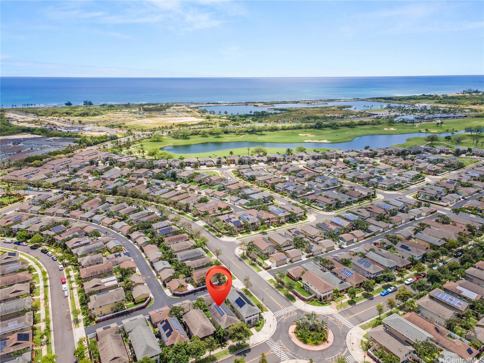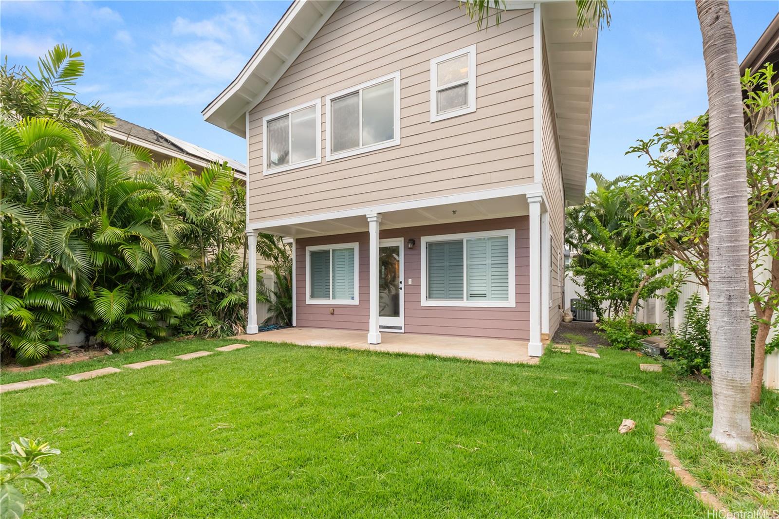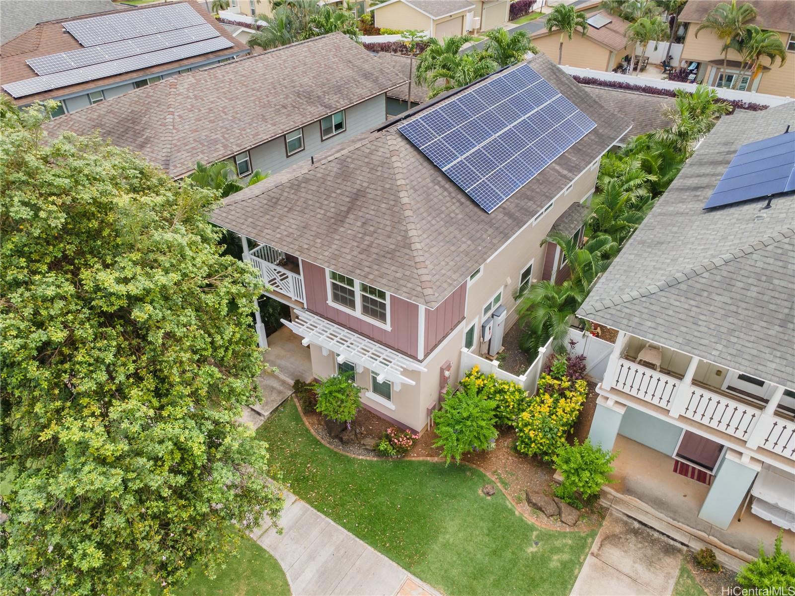 Welcome to this resort style neighborhood, minutes from the private Hoakalei County Club, an LPGA tournament destination golf course. Walkable to the community Swim Club, tennis courts and gym. Minutes from the brand-new Wai Kai Resort with a 52-acre lagoon and the world’s largest standing wave pool. This beautifully upgraded 4-bedroom, 3-bathroom home blends island elegance with energy efficiency. The floor plan includes a full bedroom and bath on the main level, wood-grain ceramic tile throughout downstairs, and a spacious kitchen with stainless steel appliances. Enjoy 23 owned solar panels with battery backup, solar water heater, and central A/C for year-round comfort. Plantation shutters add charm, while the ground-level laundry room and detached 2-car garage with extra storage. The landscaped, fully fenced yard offers privacy and space to relax or entertain. Freshly painted interior and exterior, new flooring upstairs, new stair treads, and base boards. HOA covers high-speed internet, cable and home phone through Spectrum. Assumable loan balance is $1,043,174.94 at 4.25% PITI is $6000.00.