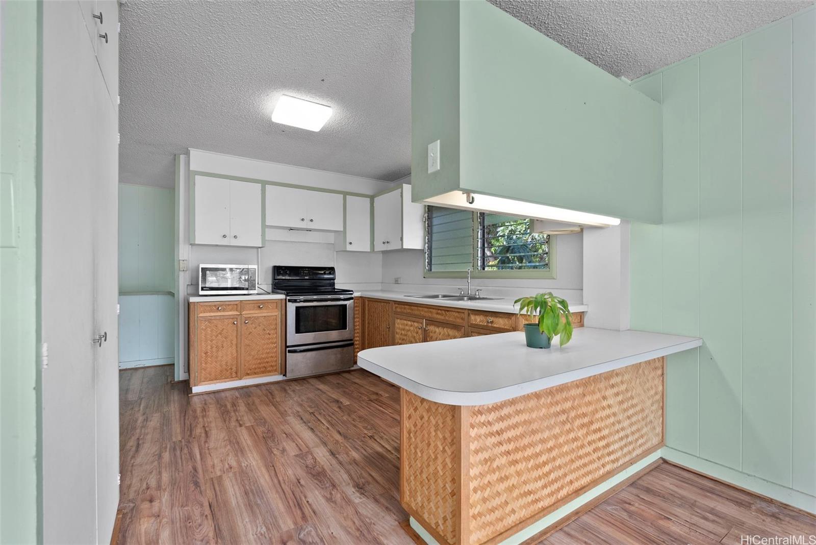 好立地、優れた間取り、そして実用的な敷地!この素晴らしい物件は、幹線道路から離れたプライベートな旗型敷地に位置しています。 高速道路の上に位置し、自然の気流が素晴らしく、カハラを越えて海まで見渡せる眺めを楽しめます。 完全に囲まれた庭には、広々とした駐車スペース、庭スペース、そして2台分のカーポートが備わっています。 2階にはリビングルーム、キッチン、3つの寝室、2つのバスルーム、そして広々とした囲い付きのラナイ(テラス)があり、追加の居住スペースとしてご利用いただけます。 1階には独立した入口があり、リビングルーム、寝室、バスルームを備え、広い屋根付きラナイが付いています。 リデザインやカスタマイズが可能な物件を求める買い手に最適です。 .