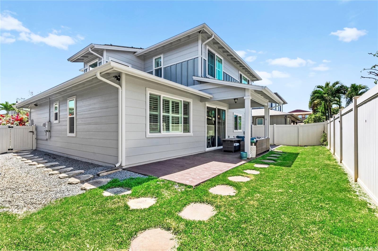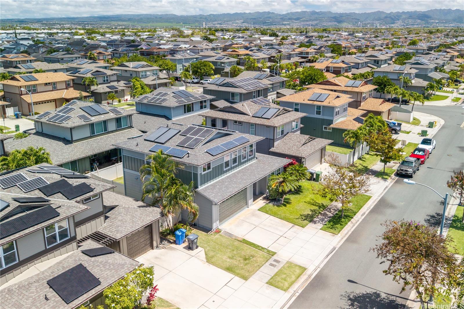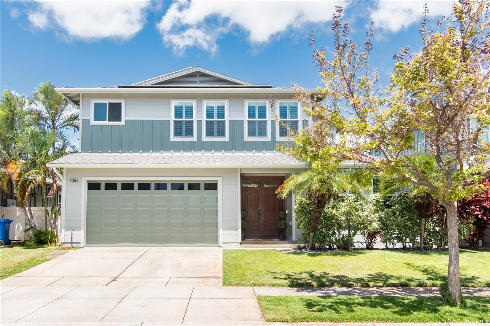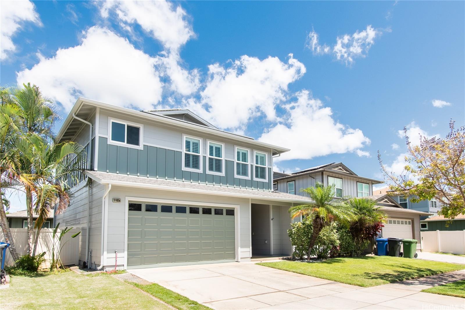 Located in the highly desirable Ewa by Gentry Sandalwood community in Ewa Beach, this home offers a prime location with a low HOA of just $53 a month, just minutes from schools, shopping centers, restaurants, and golf courses. This well-maintained 4-bedroom, 3-bathroom detached single-family home offers a functional layout with a full bedroom and bathroom on the first floor, ideal for guests, in-laws, or a home office.Fresh interior and exterior paint, new carpets on the second floor, and a beautifully upgraded kitchen featuring a gourmet double oven, perfect for cooking and entertaining. Enjoy a nice-sized backyard with an extended lanai, great for relaxing or hosting.Leased PV panels help with energy efficiency and savings. Parking includes a 2-car garage, driveway, and additional street parking.A great opportunity to own in one of Ewa Beach’s most sought-after communities.