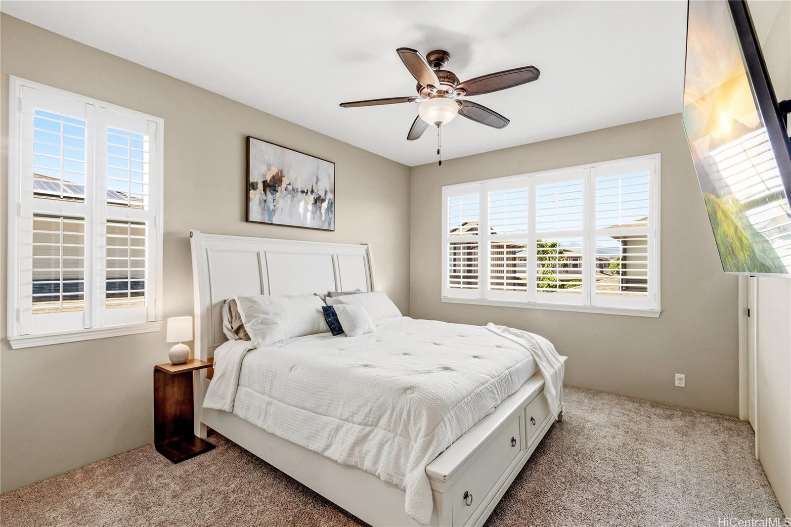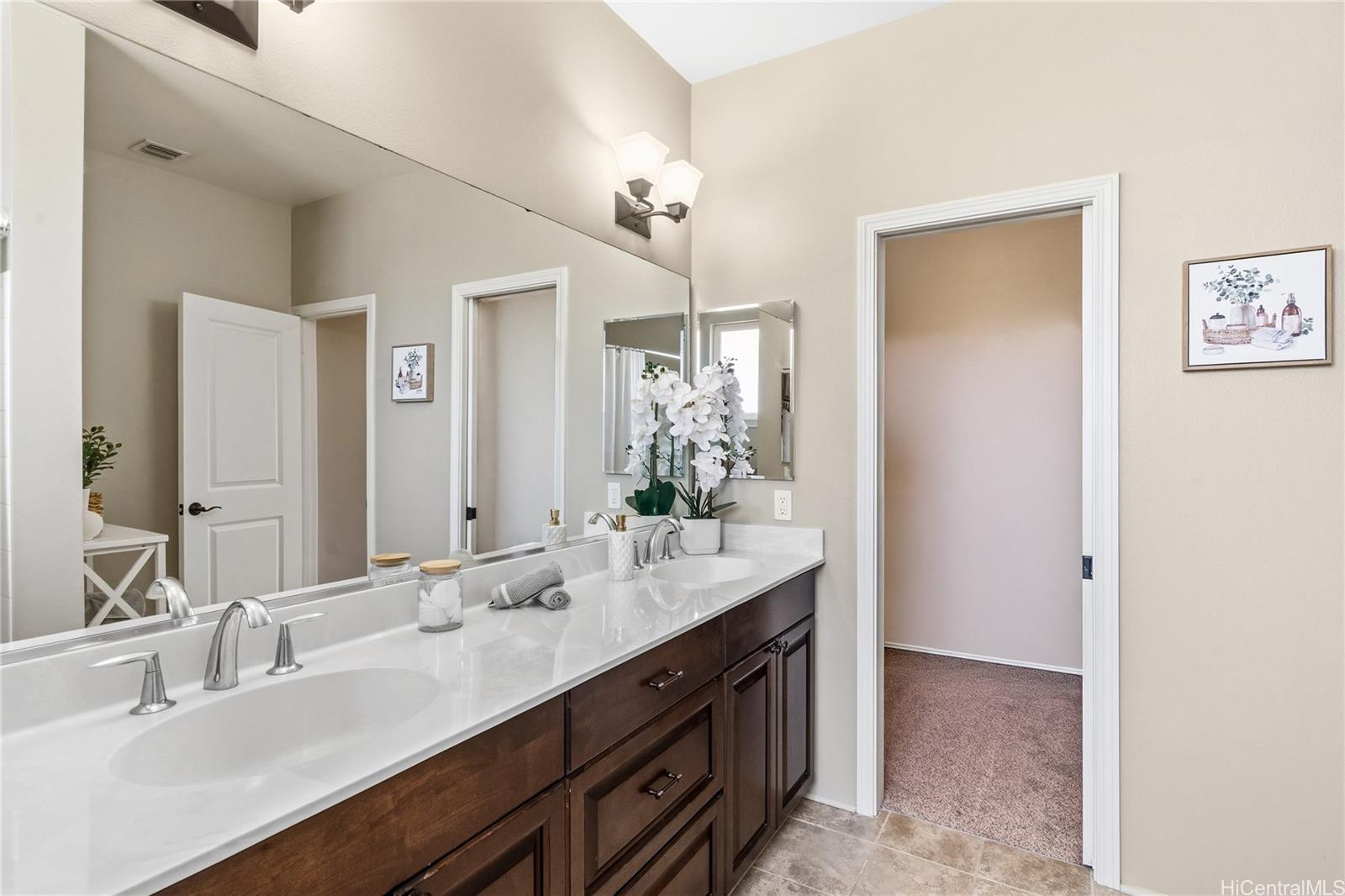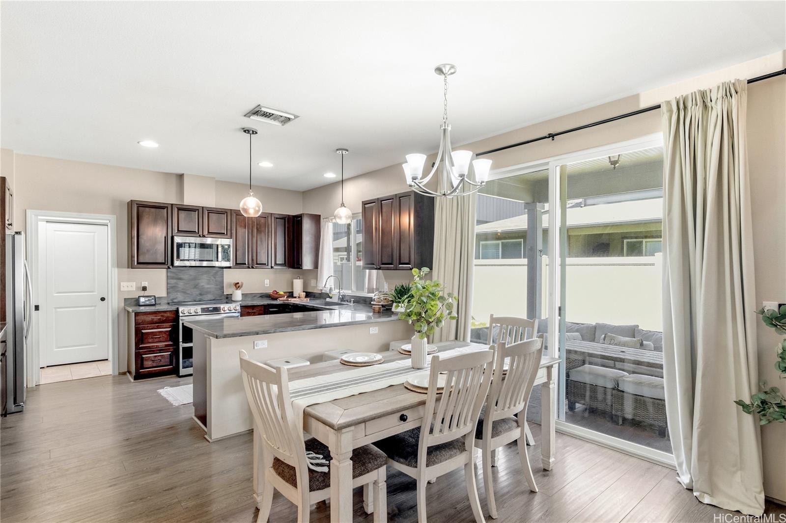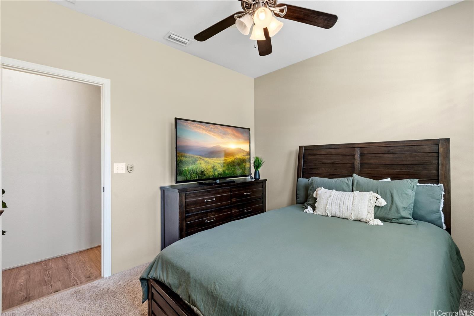 Located in the highly desirable Ewa by Gentry Sandalwood community in Ewa Beach, this home offers a prime location with a low HOA of just $53 a month, just minutes from schools, shopping centers, restaurants, and golf courses. This well-maintained 4-bedroom, 3-bathroom detached single-family home offers a functional layout with a full bedroom and bathroom on the first floor, ideal for guests, in-laws, or a home office.Fresh interior and exterior paint, new carpets on the second floor, and a beautifully upgraded kitchen featuring a gourmet double oven, perfect for cooking and entertaining. Enjoy a nice-sized backyard with an extended lanai, great for relaxing or hosting.Leased PV panels help with energy efficiency and savings. Parking includes a 2-car garage, driveway, and additional street parking.A great opportunity to own in one of Ewa Beach’s most sought-after communities.