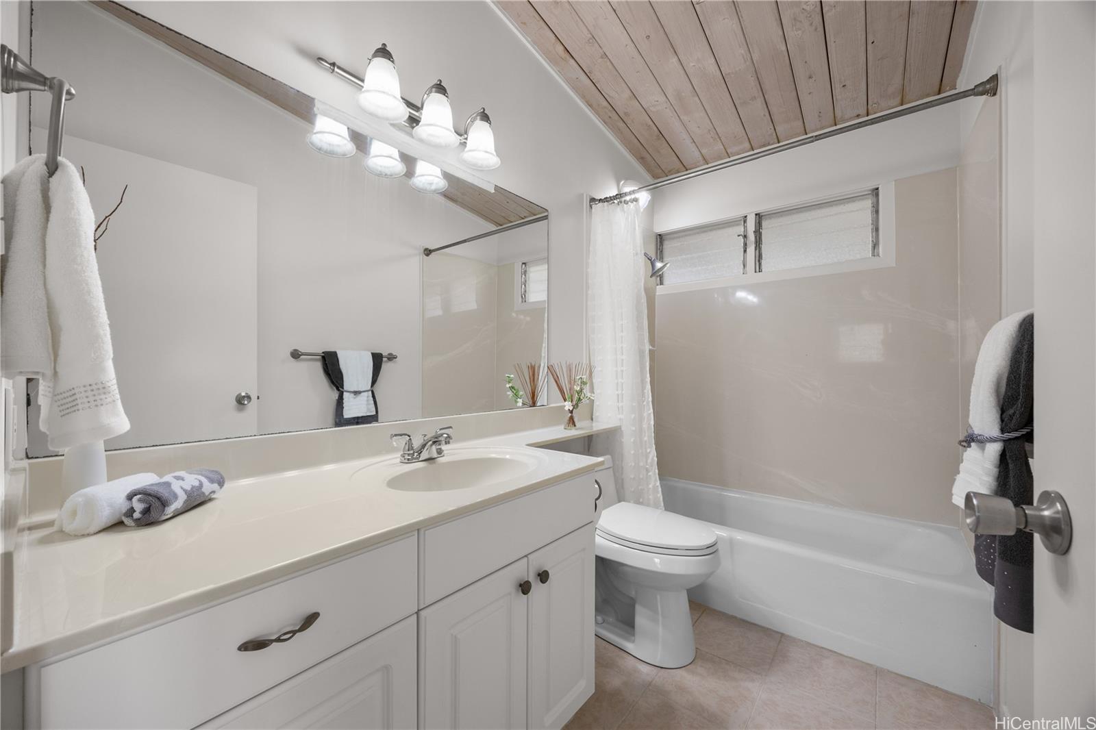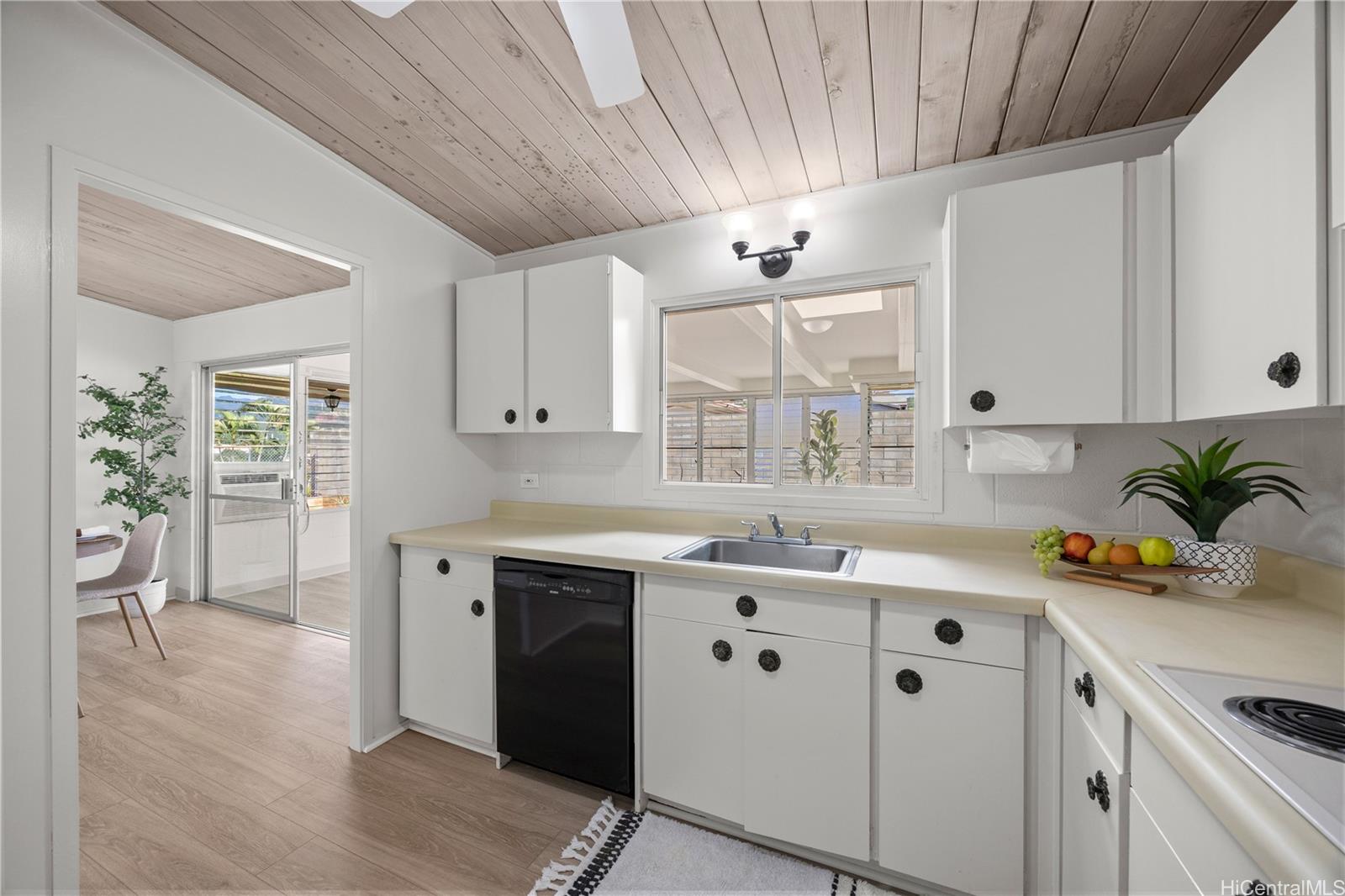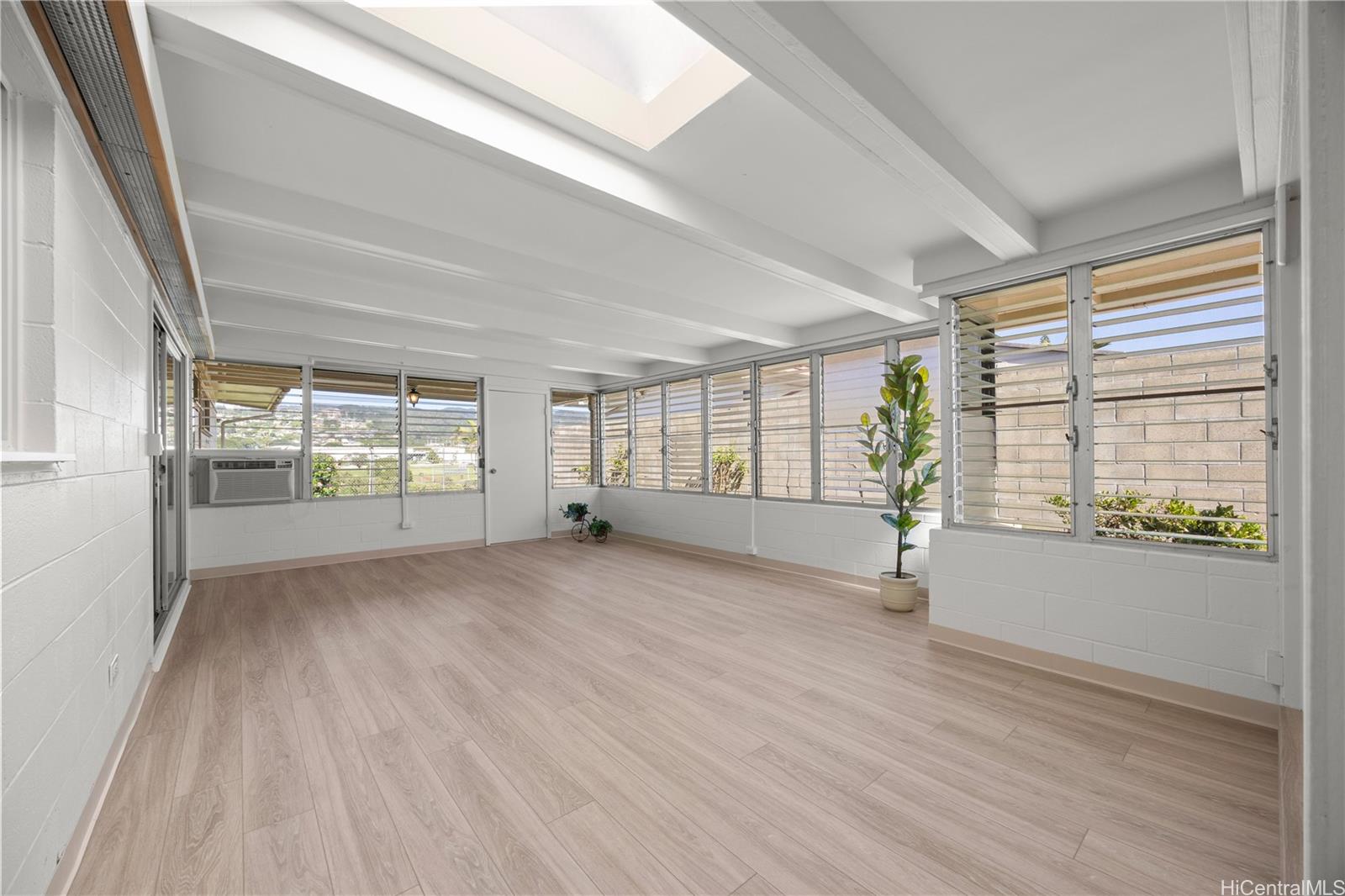 This lovely single-level 4 bedroom 2 bath home with open-beam ceilings, an abundance of storage space and efficient floor plan is MOVE-IN READY! Foster Village is sought after for its central location and convenience to Pearl Harbor, Hickam, freeway access east or west, schools, shopping and the highly anticipated New Aloha Stadium development. Improvements include new luxury vinyl plank floors throughout, interior/exterior paint, remodeled bathrooms, landscaping, roof coating and more! You’ll appreciate the large additional family room that leads out to a covered patio for flexible indoor and outdoor entertainment options. Sweeping mountain and city views from your lanai with no back neighbors all within and enclosed low maintenance yard ideal for pets. Shows very well, however to be conveyed in “As Is” condition.