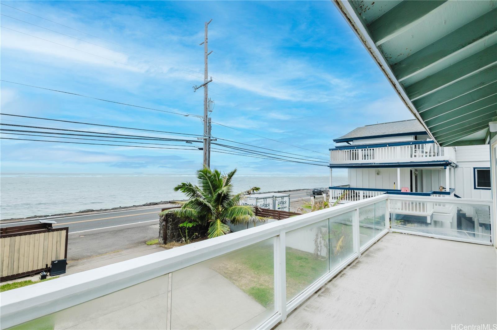 Back on Market with a Price Reduction. OPEN HOUSE on SUNDAY, 3/1 from 2-5pm. Seller is offering a $2,000 credit toward buyer’s closing costs (subject to terms). Ocean-view residence just steps from the shoreline, offering a two-story layout with two bedrooms and one full bath on each level, along with separate kitchens for added flexibility. The ground floor has been remodeled.Enjoy a setting near calm, protected beaches, with seasonal whale watching from the lanai and nearby shoreline access for swimming and coastal activities. The property includes fruit-bearing coconut, papaya, and ice cream banana trees. Conveniently located near North Shore attractions, including Pounders Beach, with easy access to outdoor recreation and island amenities.
