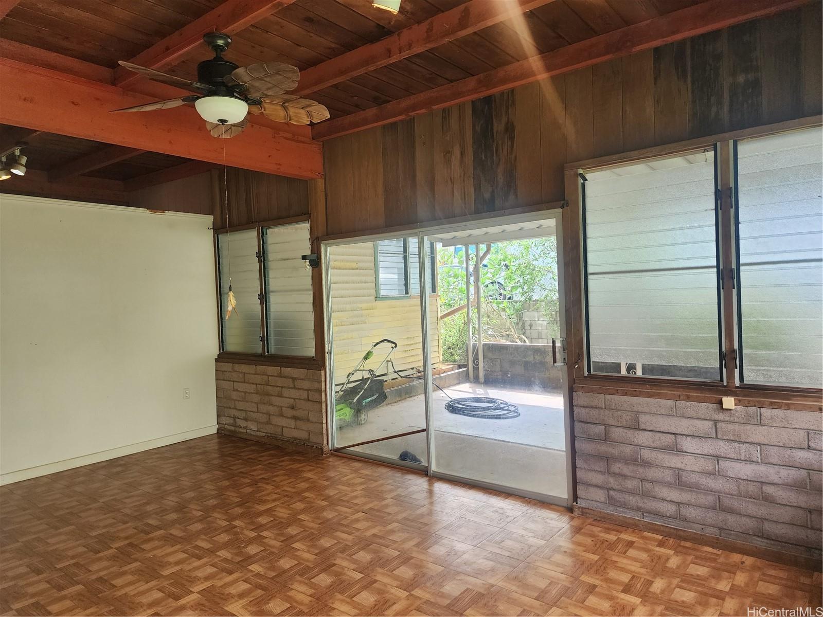 Nicely expanded 4 bedroom and 2 bath home that is separated to 3/1 and 1/1 configuration of living space in Keolu Hills! Great for multi-generational family or potential rental income living. Home has 2 spacious lanais for entertaining and relaxation. Home needs ‘TLC’ but has great potential; needs your contractor for repairs and improvement, to fit your living style. Nicely landscaped and enclosed yards for pets. Gorgeous plants and trees…avocado, variegated calamansi, and fig trees and more! Home is located close proximity to Lanikai and Kailua beaches and to restaurants, shops, grocery store, and more! Seller is selling home is “As-Is’ condition with no credits, repairs, and concessions.