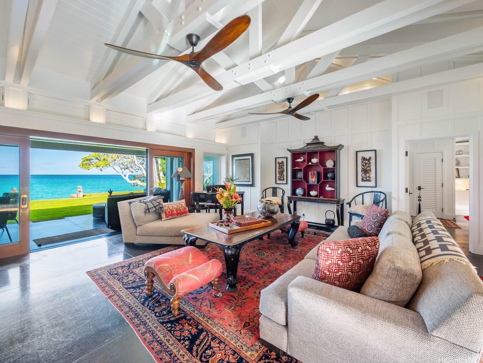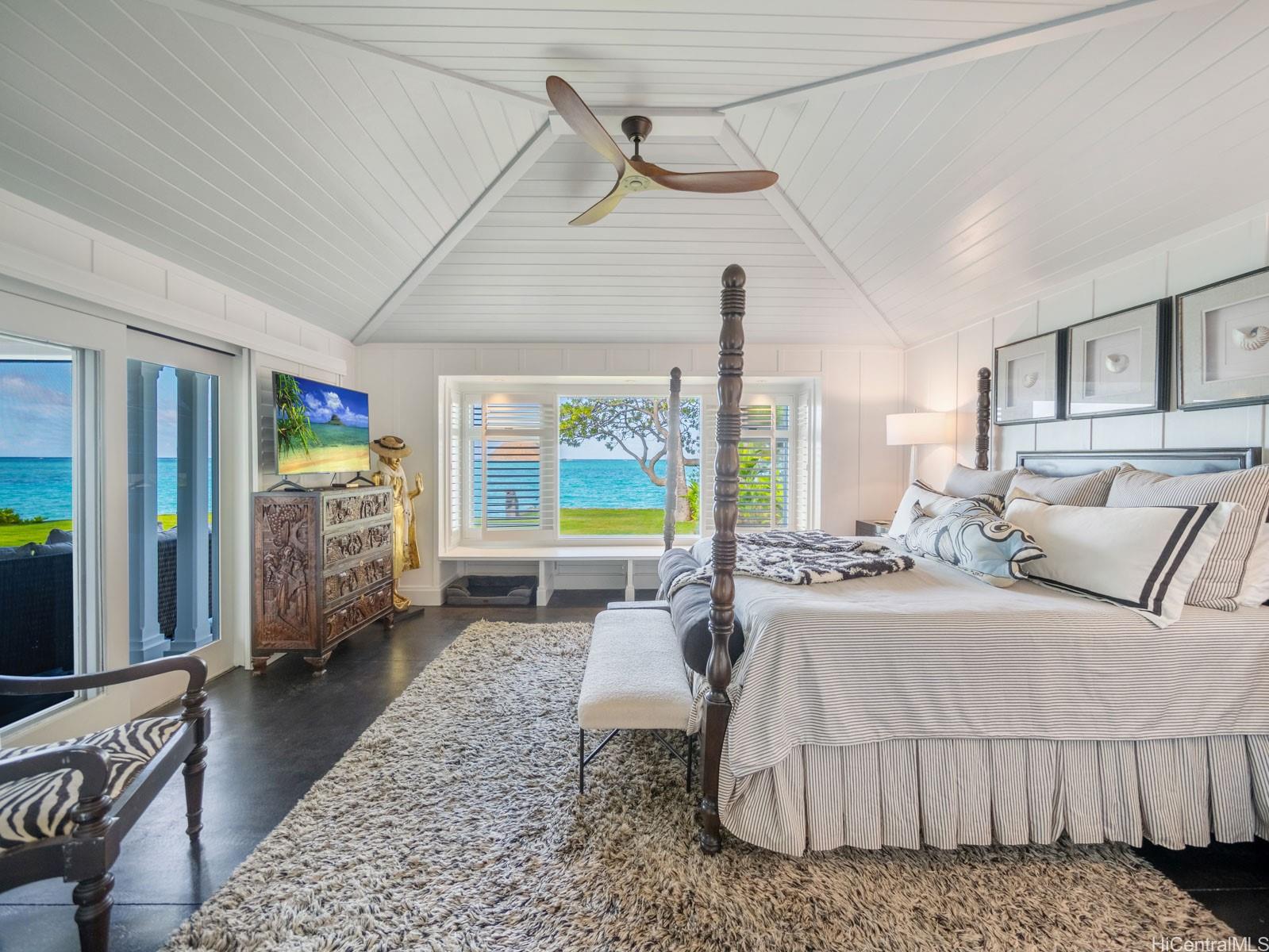 ラニカイの鮮やかな青い海に浮かぶ魅惑の宝石箱——誰もが憧れるラニカイ・ループの最奥に位置する——この5つ星のカップル向け隠れ家は、まるでプライベートリゾートのような雰囲気です。 ゲート付きで静かな環境、美しく手入れされた、新しく建てられたハワイアン風のオアシスです。 温水タイル張りの長いプール、ジャグジー、赤外線サウナ、ジムエリア、そして広々とした緑の芝生をお楽しみください。 トレリスの下で食事や接待を楽しみながら、ガス式ティキトーチが灯る中、朝日が昇り、月明かりが水面にきらめく光景を眺められます。 広々としたオーシャンフロントのラナイと、配慮の行き届いた景観照明が、この環境を完成させている。 クリス・エマーソンによる完璧な造りで、その品質と職人技は比類のないもの——内外装ともに板張りと羽目板仕上げ、高くそびえるアーチ型天井、そして全室にわたり完全オーダーメイドの内装が施されている。 .