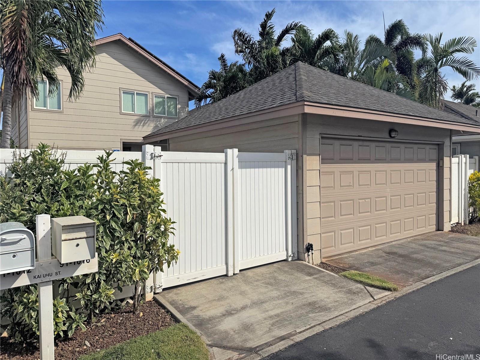 This Lovely 402 model Executive Home offers Relaxed Island Living. Bright, open floor plan featuring 4 nice size bedrooms, 3 full bathrooms, 3 parking and located on a very desirable quiet street with a private community park. There is a large bedroom and full bath downstairs perfect for guest, family or office. 3 Bedrooms upstairs. The Master has a large walk-in closet. Large Luxurious bathroom with separate shower and tub. The other bedrooms are generous in size sharing a Jack n Jill bathroom. You will feel the comfort of this home immediately walking through the entry with the High windows and cathedral ceilings capturing the natural light throughout the house. 34 owned PV solar panels on the NET METERING agreement with HECO to lower electric bills. 2 Solar hot water heaters with 3 panels. Replaced original AC outside with a large Rheem and upstairs AC handler. This home is very spacious inside and outside for entertaining and your own everyday comfort and enjoyment. Minutes away from the beach, golf courses, shopping, schools and so much more. This is a great opportunity with all this home offers!