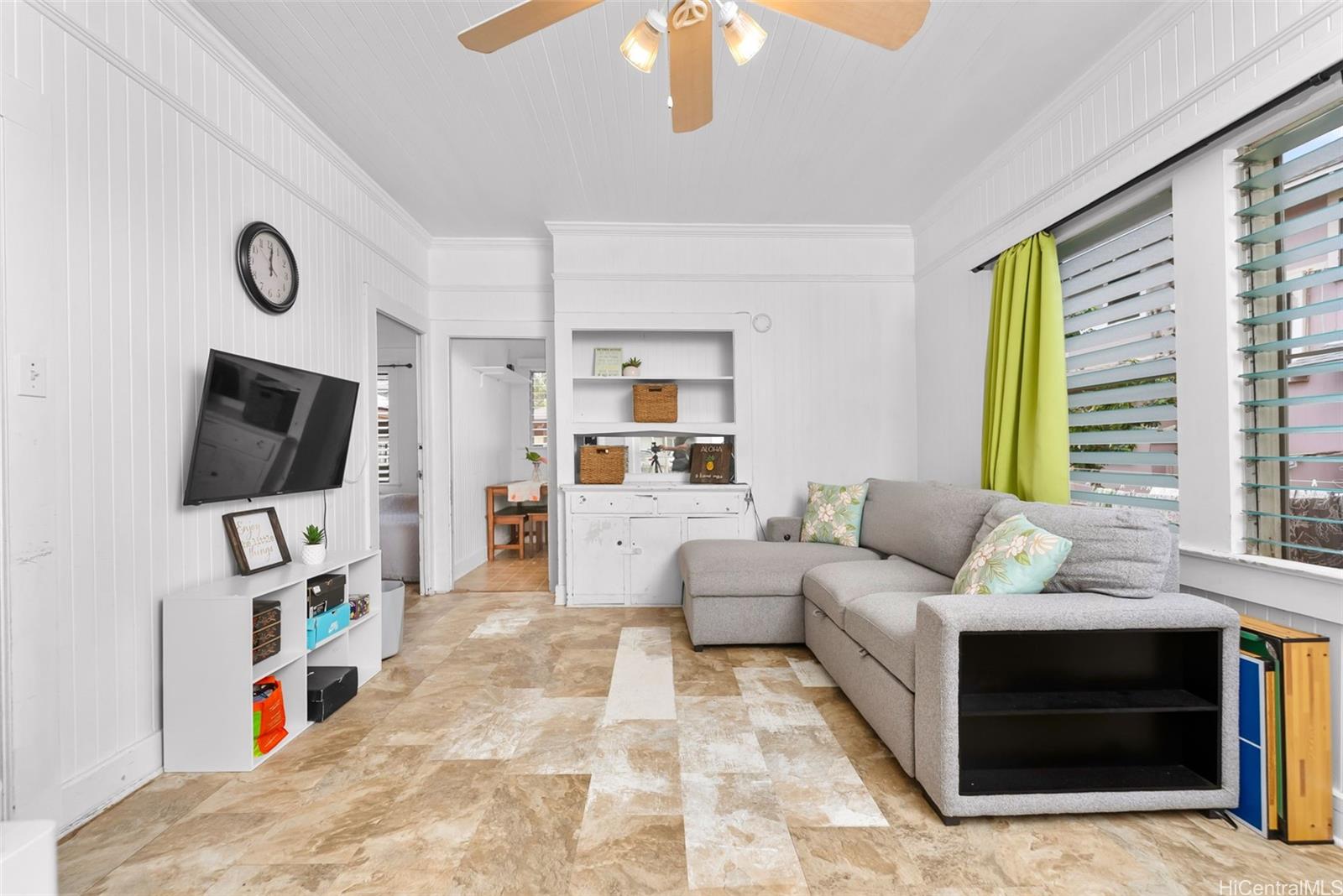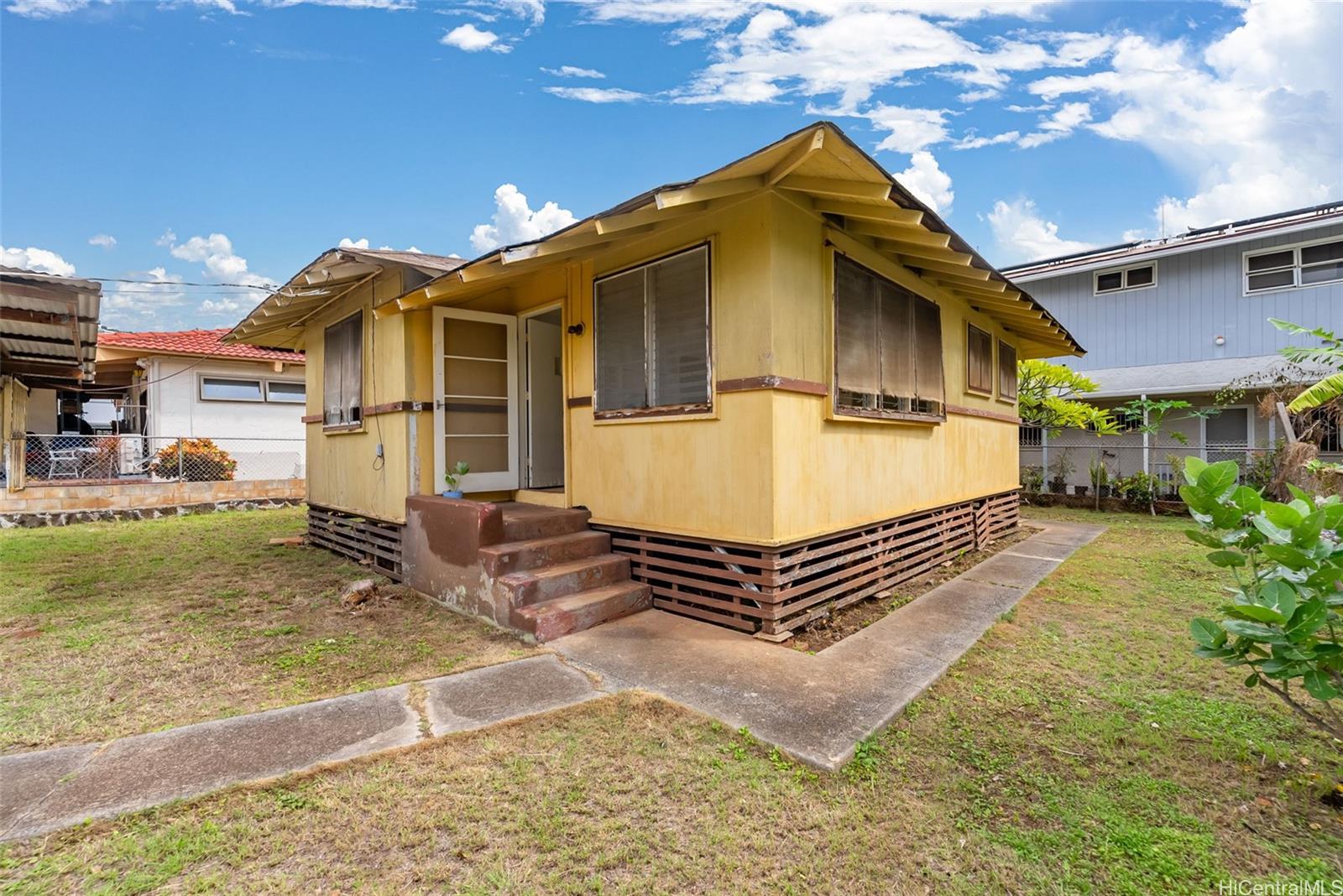 Unique and rarely available opportunity featuring two detached dwellings on a clear, level lot. The front residence is a charming 2-bedroom, 1-bath plantation-style home with classic character and plentiful parking. The rear 2-bedroom, 1-bath dwelling offers generous yard space, a separate electrical meter, and the flexibility for you and your contractor to explore future possibilities. Situated on a nearly 8,000-square-foot lot with R-5 residential zoning and ohana permitting, this property presents strong investment potential in a highly desirable location. To be sold strictly “AS IS”. This versatile property offers endless opportunities to expand, enhance, or reimagine—making it an exceptional find for both homeowners and investors alike.