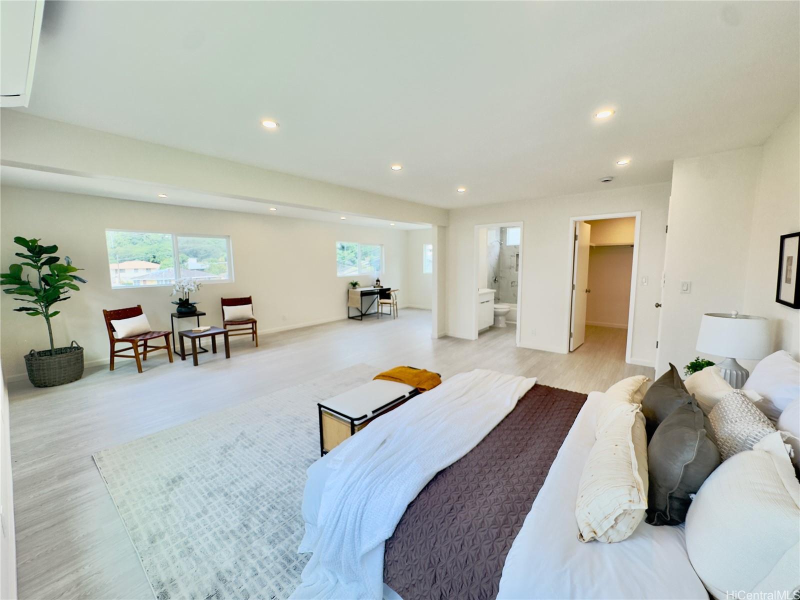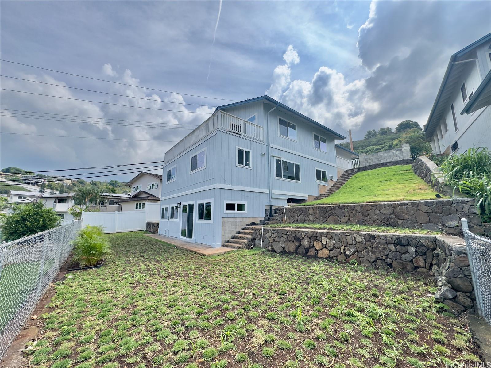 Welcome to this beautiful residence in desirable Aiea Heights! Perch on top along the perimeter lot with breathtaking Views! Ample yard space with fully fence gates and it’s custom finishes and high quality upgrades throughout the home. This residence truly offers living at it finest. The open spacious living area leads out to the expansive deck for hosting a gathering and your enjoyment of the amazing surrounding views. Step inside the home to discovered the very large living space on the main level. A very spacious primary bathroom located on the middle level along with 2 other bedrooms. The lower level features a 1 bedroom, 1 bath separate entrance. This home offer endless possibilities!!!