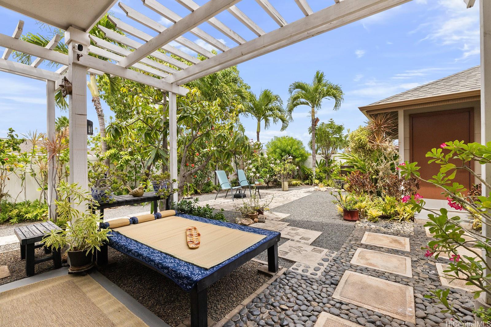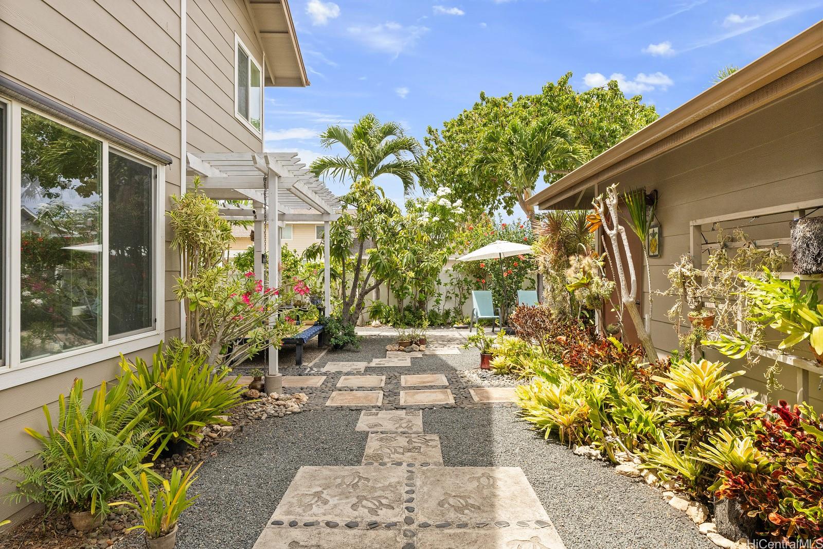 Situated on a prime corner lot in the desirable neighborhood of Ocean Pointe, this home exudes pride of ownership and is in exceptional, like-new condition.Step inside to find plantation shutters, upgraded flooring, and a modern kitchen featuring upgraded cabinetry—perfect for both everyday living and entertaining. The convenient layout includes a bedroom and full bathroom on the first floor, ideal for guests or multi-generational living. Enjoy the comfort of central air conditioning (new system in 2022) and the ease of a detached 2-car garage, offering ample space and storage. The large loft upstairs offers a separate living area and could easily be converted to a 5th bedroom.Step out back to your garden oasis with custom stonework, water fountain and an array of flowering foliage, even a mango tree! There is plenty of room to add more parking if desired. All furnishings negotiable, making this a perfect turnkey home!With its beautiful upgrades and unbeatable location, this home offers the perfect blend of style, comfort, and functionality. Close to beaches, schools, golf courses, shopping, restaurants and Wai Kai Lagoon!