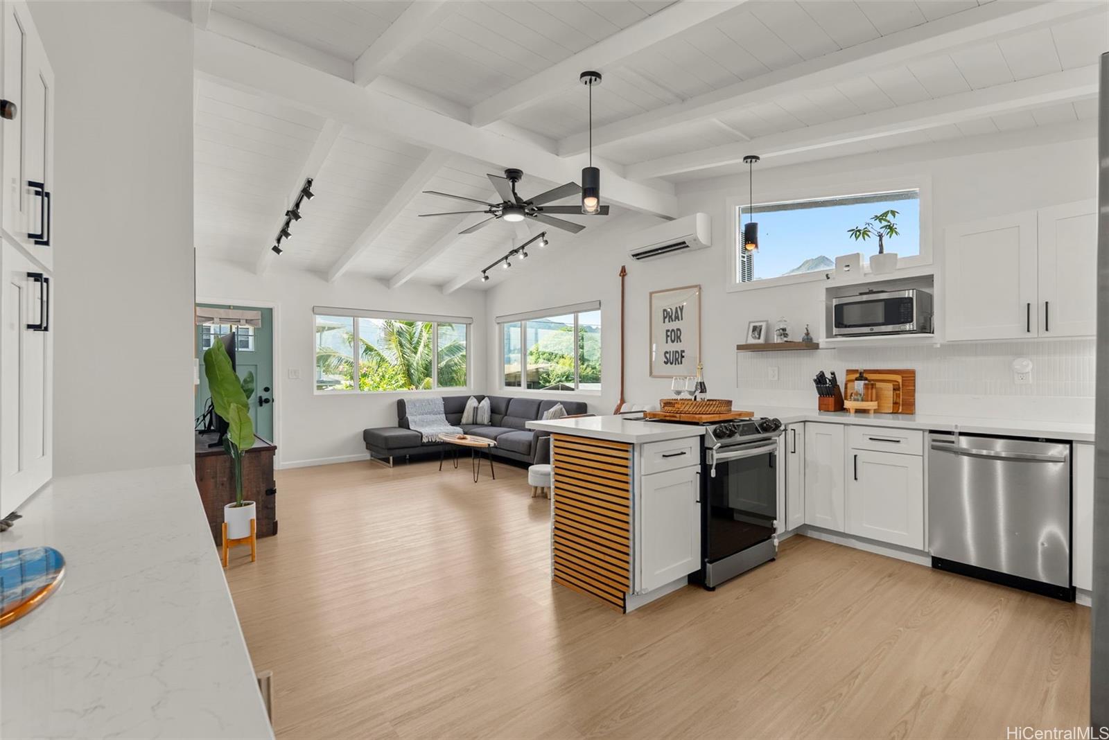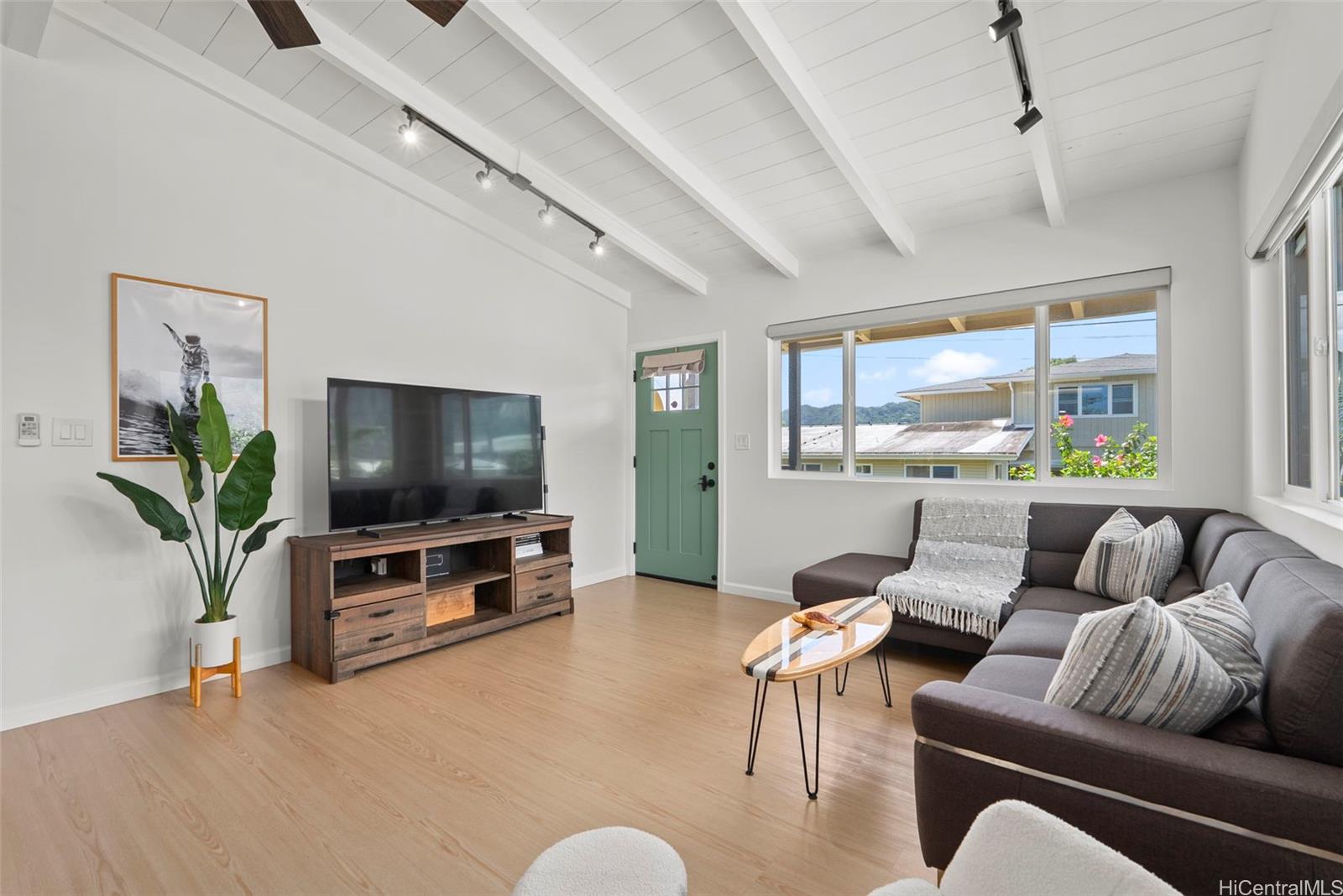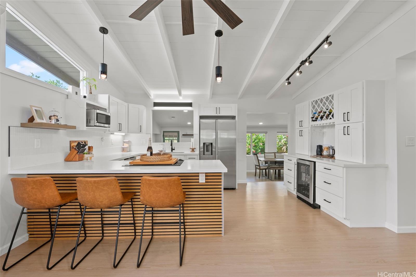 カネオヘにある、広々とした8,127平方フィートの敷地に建つ、美しく改装済みで即入居可能な4ベッドルーム・2バスルームのスプリットレベル一戸建て住宅です。 キッチンは全面改装済みで、ステンレス製の家電が備わっています。バスルームも改装済みです。リビングルーム、エンターテインメントルーム、主寝室、およびエンターテインメントルームに隣接する部屋には、個別空調が設置されています。 残りの2つの寝室には窓用エアコンが設置されています。 カーポートの横に、洗濯機と乾燥機専用の部屋と物置を併設しています。 カーポートには2台分の車を完全に覆える十分なスペースがあり、さらにその背後に2台分の駐車スペースがあります。 周囲をフェンスで囲まれた裏庭は、生い茂ったライチやオレンジの木、若木のパパイヤ、そして香りのよいプアケニケニやジャスミンの木が茂り、まるで熱帯の楽園のようです。 ウィンドワード・モール、スーパー・ターゲット、カイルア・ビーチ、そして生活に必要な施設まで数分の距離にあり、背後には雄大なコオラウ山脈が広がっています。 H-3号線へのアクセスが良好で、島内全域への通勤が便利です。ハワイ海兵隊基地のすぐ近くに位置しており、H-3号線を利用すれば島を横断して、キャンプ・スミス、パールハーバー・ヒッカム統合基地、トリプラー、フォート・シャフターへもスムーズにアクセスできます。 投資志向のオーナーであれば、エンターテインメントルームと隣接する寝室を、独立した賃貸用ユニット(オハナ)として活用することができます。 画像は補正されました。 .