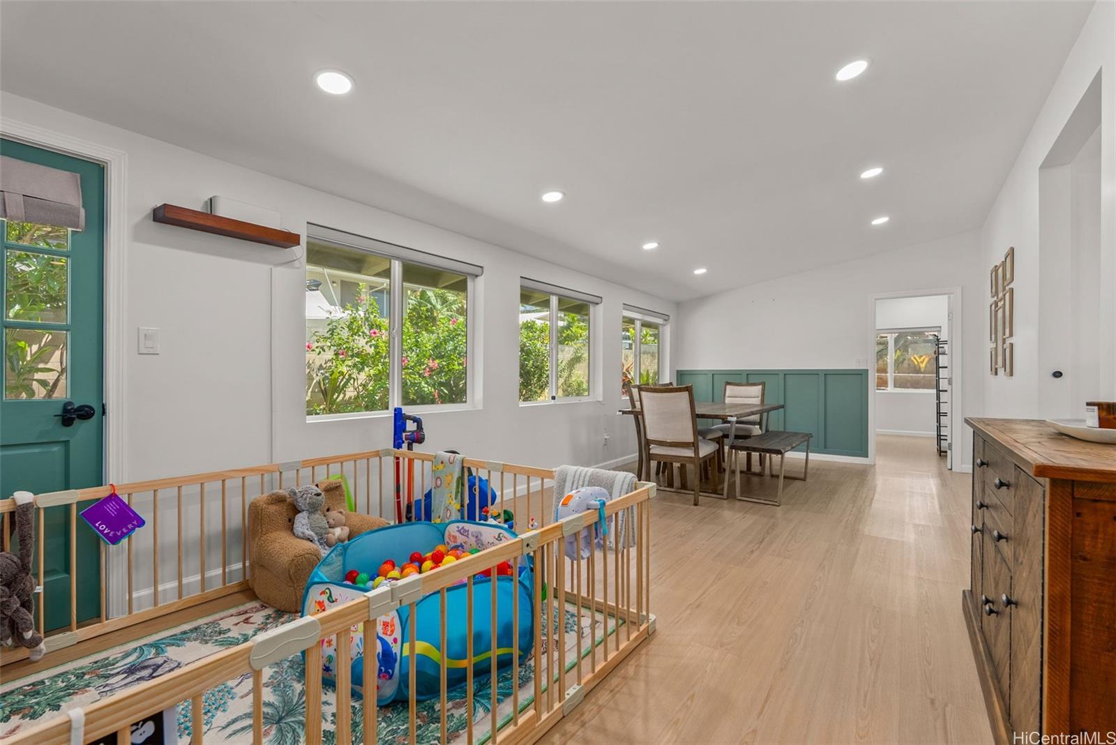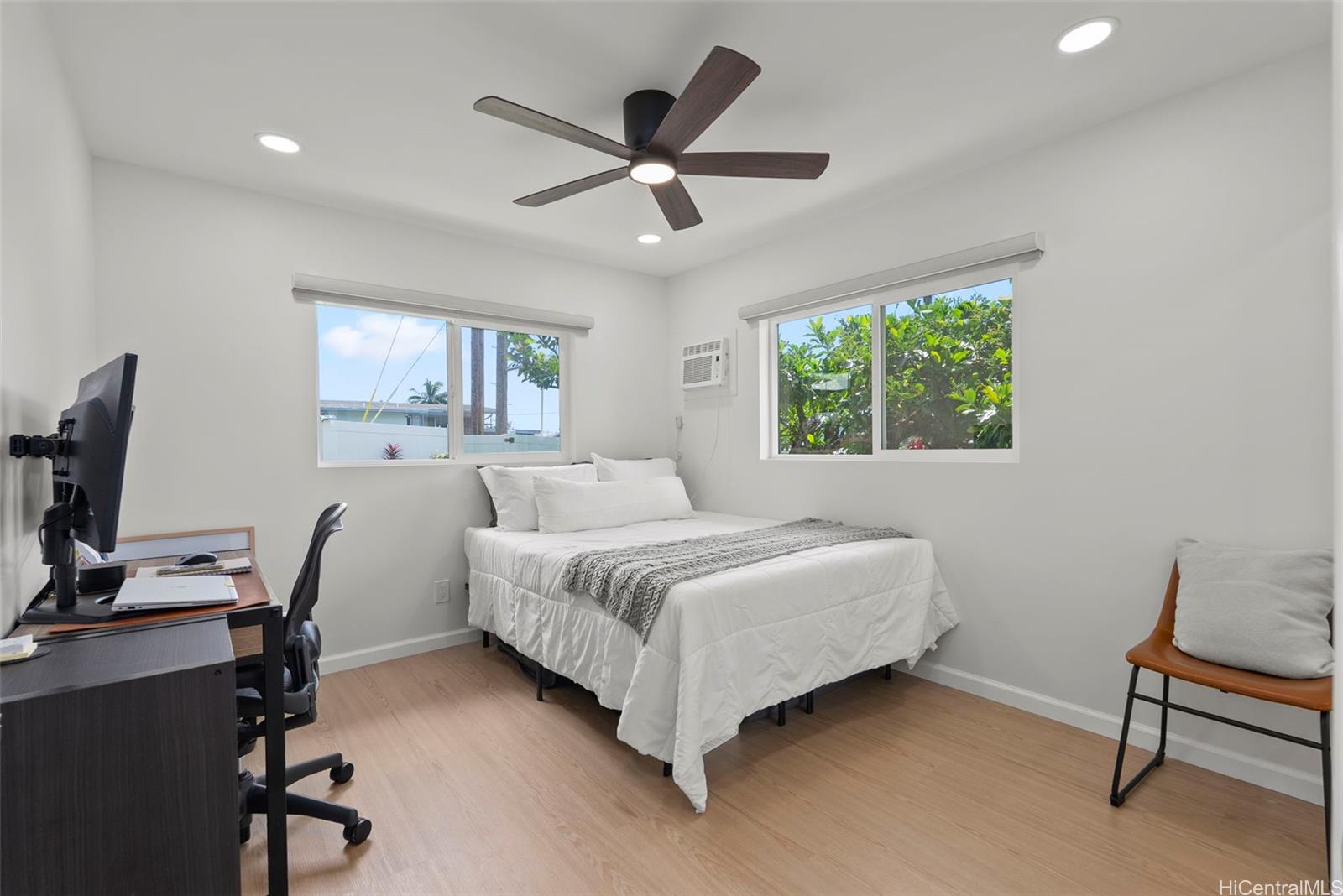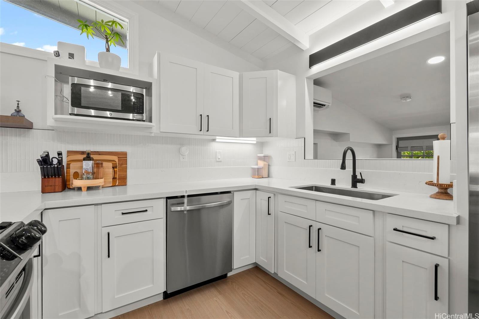 カネオヘにある、広々とした8,127平方フィートの敷地に建つ、美しく改装済みで即入居可能な4ベッドルーム・2バスルームのスプリットレベル一戸建て住宅です。 キッチンは全面改装済みで、ステンレス製の家電が備わっています。バスルームも改装済みです。リビングルーム、エンターテインメントルーム、主寝室、およびエンターテインメントルームに隣接する部屋には、個別空調が設置されています。 残りの2つの寝室には窓用エアコンが設置されています。 カーポートの横に、洗濯機と乾燥機専用の部屋と物置を併設しています。 カーポートには2台分の車を完全に覆える十分なスペースがあり、さらにその背後に2台分の駐車スペースがあります。 周囲をフェンスで囲まれた裏庭は、生い茂ったライチやオレンジの木、若木のパパイヤ、そして香りのよいプアケニケニやジャスミンの木が茂り、まるで熱帯の楽園のようです。 ウィンドワード・モール、スーパー・ターゲット、カイルア・ビーチ、そして生活に必要な施設まで数分の距離にあり、背後には雄大なコオラウ山脈が広がっています。 H-3号線へのアクセスが良好で、島内全域への通勤が便利です。ハワイ海兵隊基地のすぐ近くに位置しており、H-3号線を利用すれば島を横断して、キャンプ・スミス、パールハーバー・ヒッカム統合基地、トリプラー、フォート・シャフターへもスムーズにアクセスできます。 投資志向のオーナーであれば、エンターテインメントルームと隣接する寝室を、独立した賃貸用ユニット(オハナ)として活用することができます。 画像は補正されました。 .