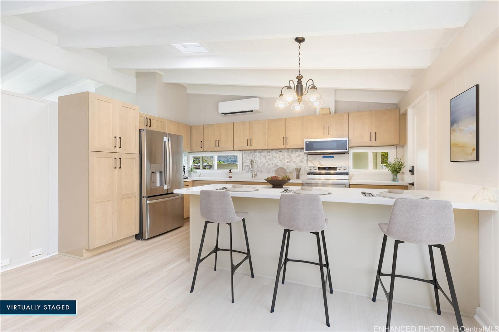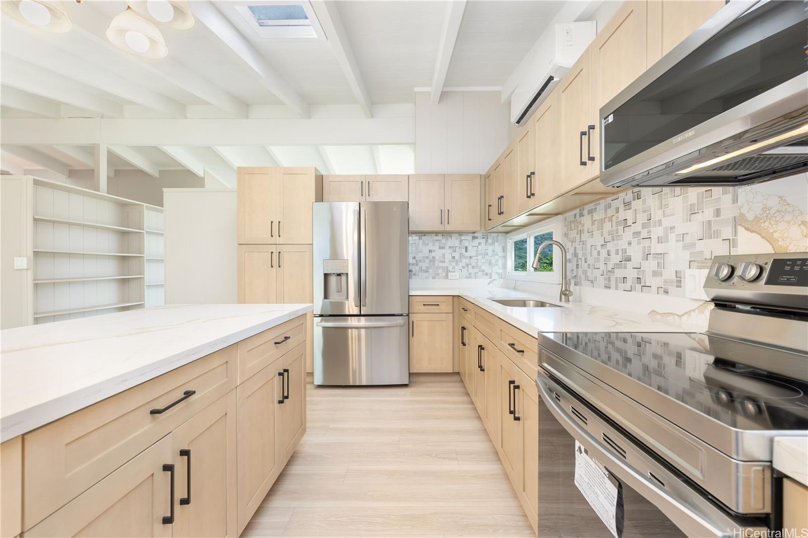 売り出し再開! 4ベッドルーム、2バスルーム、全ベッドルームにウォークインクローゼット付。 この美しく改装された住宅は、現代の生活に最適な広々としたレイアウトで、モダンな快適さとスタイルを提供します。 洗練されたキャビネット、クオーツカウンタートップ、電化製品、内外装の新しいペイントが施された真新しいキッチンが特徴で、家全体がアップグレードされた仕上げで輝いています。 新鮮な高級ビニルプランクフローリング、シーリングファン、効率的なスプリットエアコン、屋根裏のソーラーファンが快適さと利便性を高めている。 両方のバスルームは、キャビネット、クォーツ・カウンタートップ、備品、タイル張りのシャワーが新しく、すっきりとした現代的な雰囲気に改装されている。 手前にプアケニケニの木、奥にバナナ、アボカドの木。 引っ越し準備が整い、質の高いアップグレードで設計されたこの家は、新しい所有者を迎える準備ができています!売主は、オールド・リパブリック・タイトルにエスクローを依頼します。 .