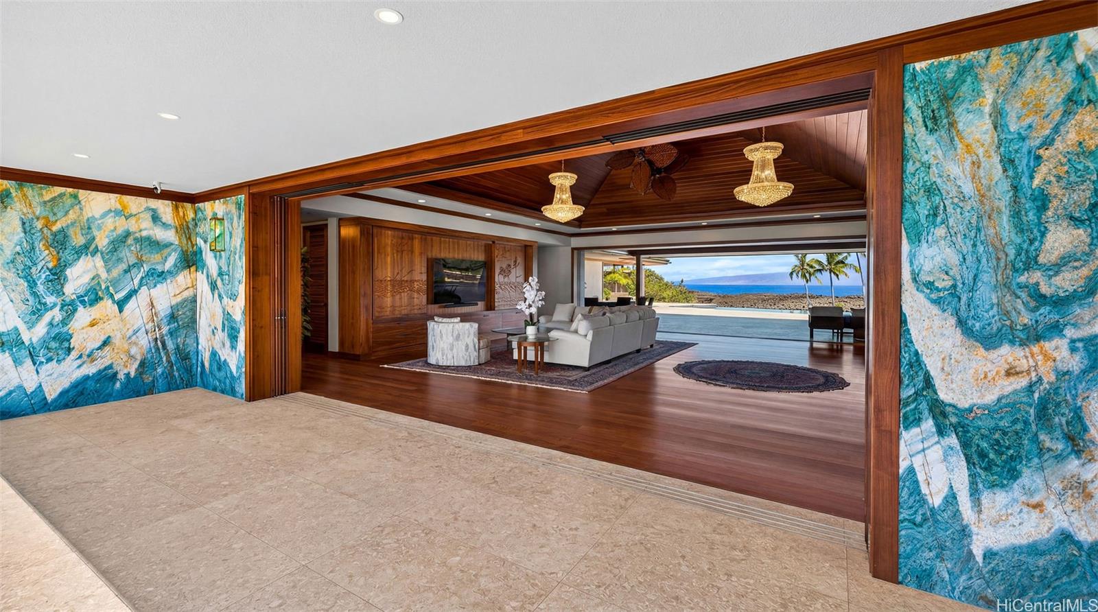 Welcome to Ka Hale Kai Nani, the Beautiful Ocean House. This exceptional “Modern Hawaiian” style oceanfront estate is in the prestigious One Ocean community at the world-class Mauna Lani Resort. With sweeping views of the ocean, golf course, and Mauna Kea, this home is a true masterpiece of design.Limestone and Mahogany gate brings you to a private courtyard and Great Room with vaulted ceilings, Brazilian Cherry floors, Sapele, custom Koa and Mango cabinetry. Elegant full wall sliding doors create the perfect indoor out experience.The chef’s kitchen is a showpiece, featuring exquisite cabinetry by Roy Lambrecht Woodworkers and a dramatic Blue Louise quartzite island and curved bar that bring art and function together.Covered lanai includes a summer kitchen with wet bar, and a 52-ft saltwater infinity pool. Tiki torches and lava fire pots frame unforgettable sunset evenings. Exclusive One Ocean amenities include: Ocean Club with oceanfront infinity pool, Sports & Wellness Club, conference center with full kitchen, pool, and BBQ area. Mauna Lani owners also enjoy access to the private Beach Club, Napua Restaurant, Golf Club, Fitness Center, and Shops.