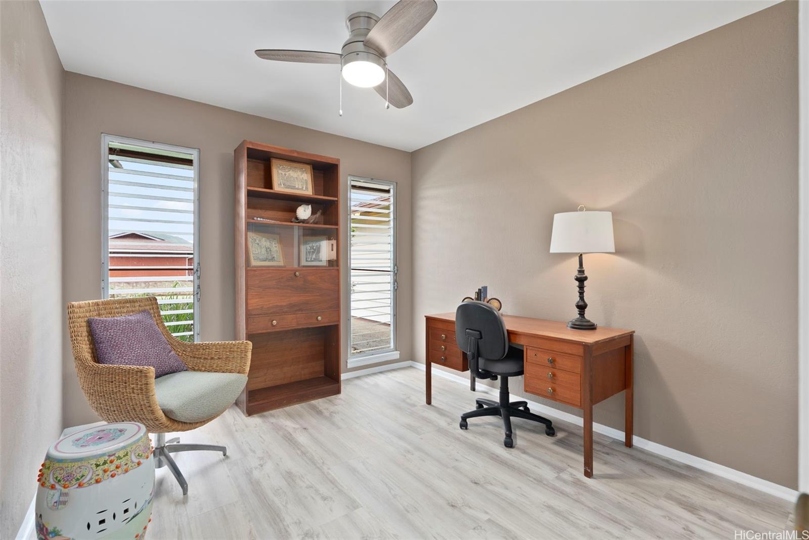 Welcome home to this beautifully upgraded 4-bedroom, 2-bath Kailua gem in the highly desirable Kaelepulu school district. From the moment you arrive, you will feel the care and warmth throughout. Thoughtfully refreshed with popcorn ceilings removed, new vinyl flooring, fresh interior paint, updated fixtures, painted trim and eaves, and a landscaped fully fenced yard, this home is move-in ready and full of charm. The flowing floor plan feels inviting and comfortable, perfect for everyday living and gathering with family and friends. Enjoy the lush green yard and lovely patio space ideal for outdoor fun, weekend BBQs, and relaxing evenings at home. The spacious primary bedroom includes an upgraded walk-in closet. With 30 owned PV panels, solar water heating, and new split AC in 2025, this home offers both comfort and efficiency. Wide streets, underground utilities, and ample parking add to the appeal. Come see why this home feels so special. First Open House Sunday, 4/26, 2-5pm. Come experience it in person.