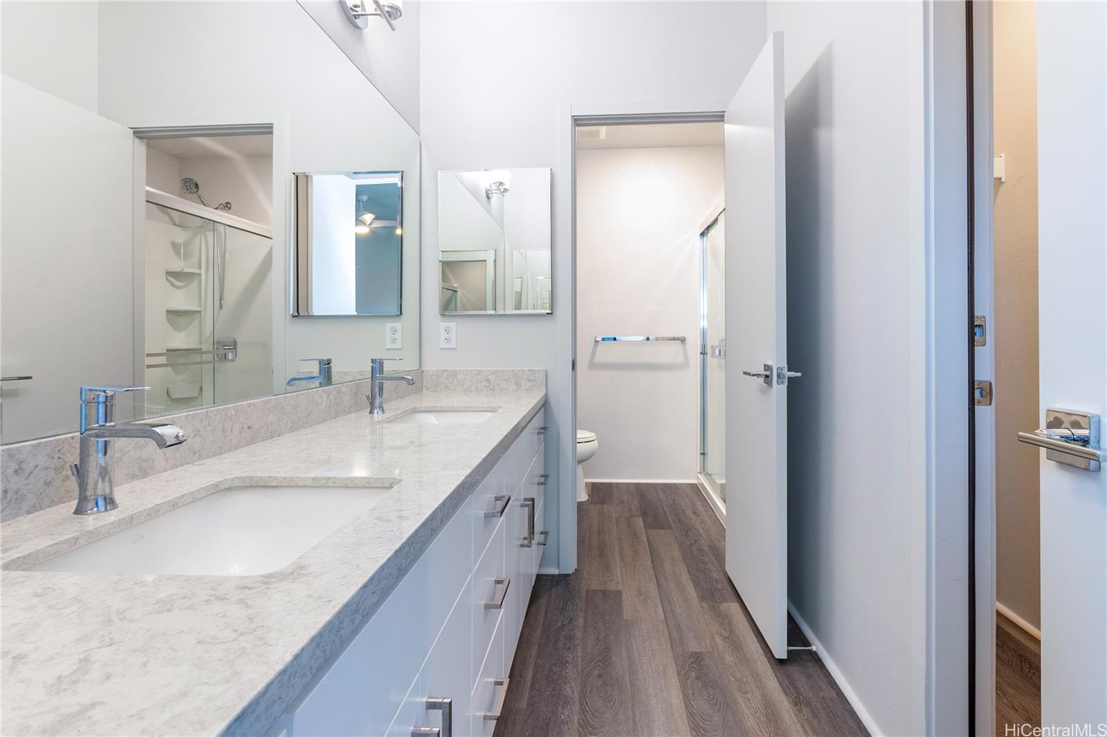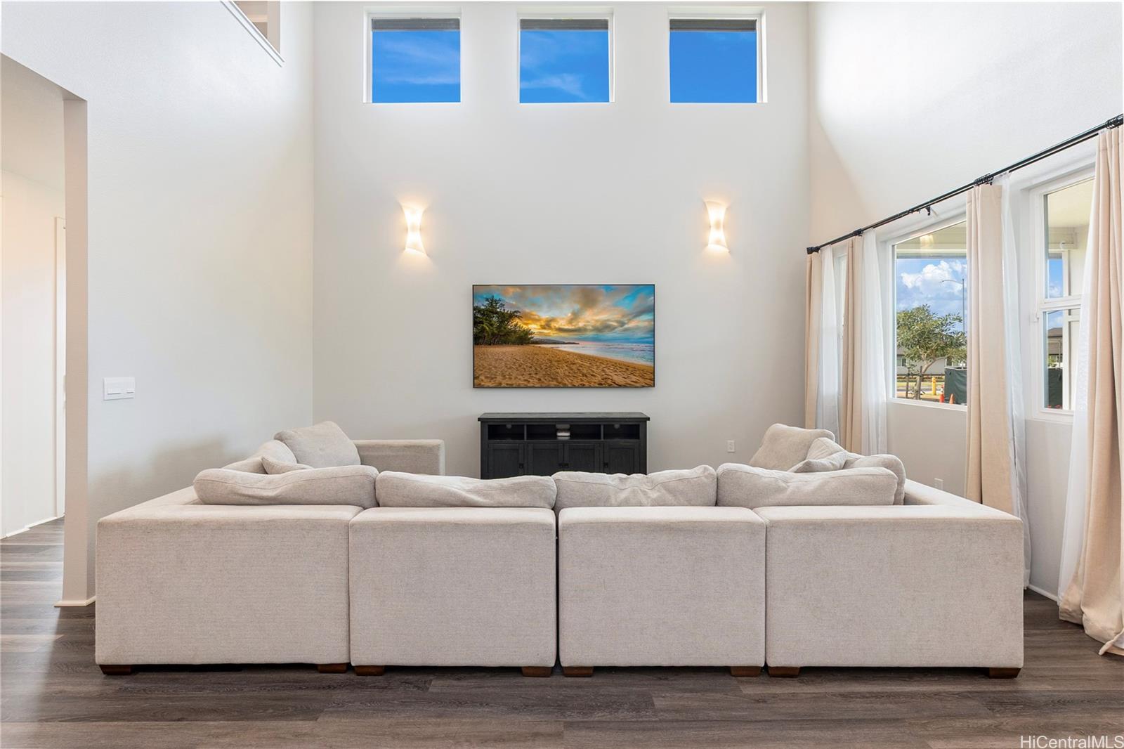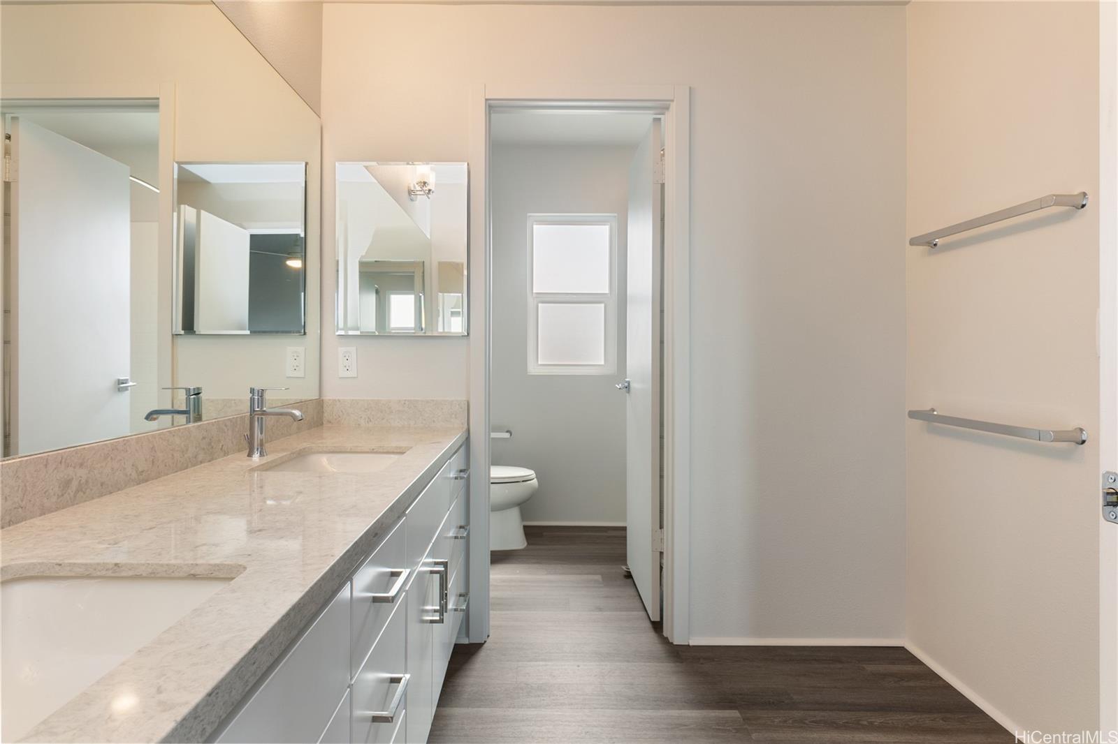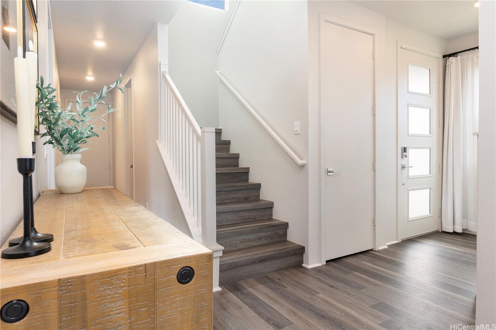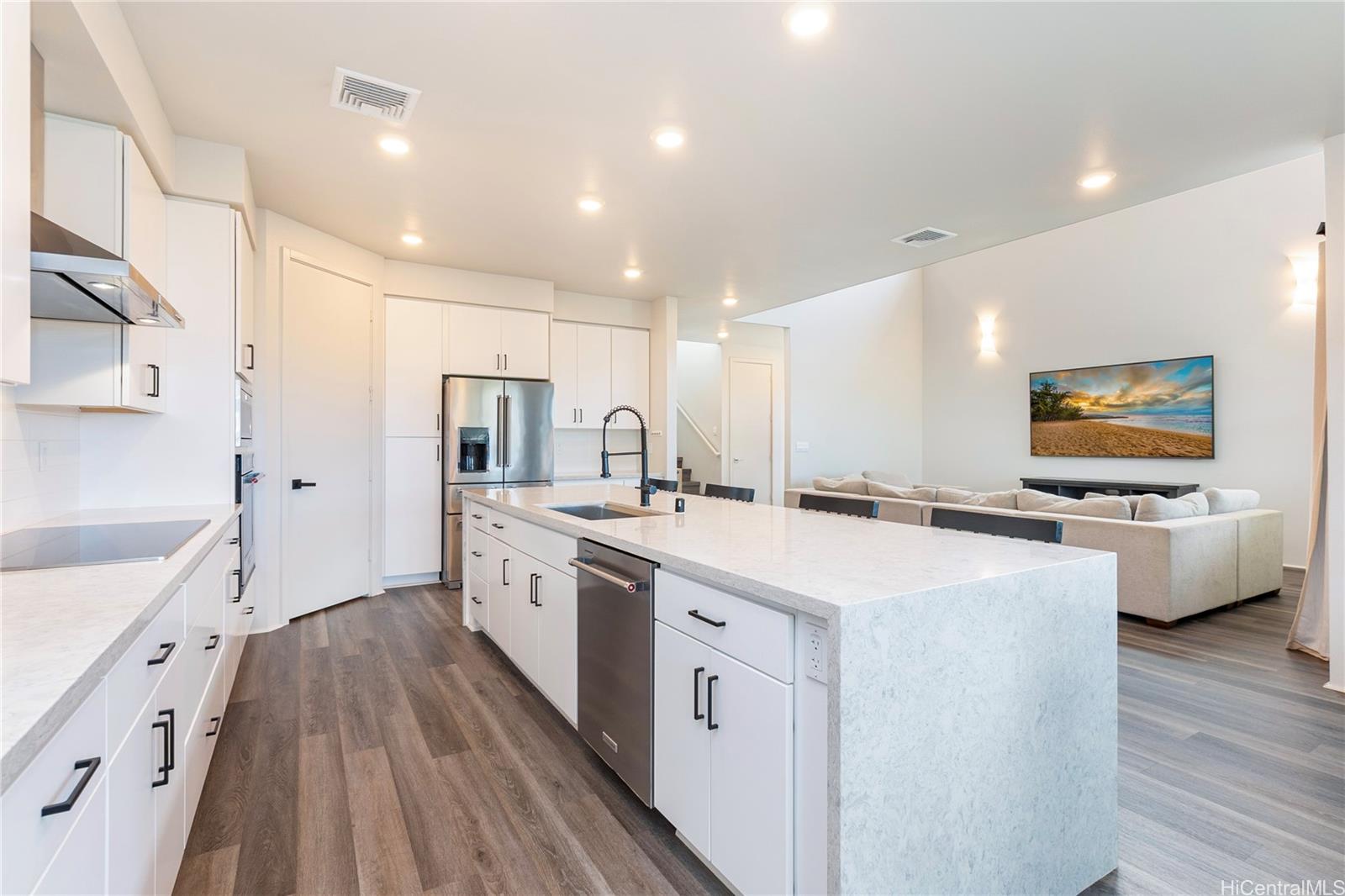 Rarely available “Bluffs” home in Hoopili located on a desirable cul de sac! This luxurious 4 bedroom, 3.5 bath residence offers 2,372 sq ft of thoughtfully designed living space with an open concept floor plan. Highly sought after layout featuring a full bedroom & bathroom on the 1st floor, ideal for multi-generational living, guests, or a home office. An oversized 2 car garage provides ample room for storage. Step inside to a dramatic 2 story vaulted living room filled with natural light from expansive windows. The gourmet kitchen is a true centerpiece, showcasing a quartz waterfall island, walk in pantry, & stainless steel appliances. The kitchen flows seamlessly into the spacious great room & dining area, creating the perfect setting for everyday living or entertaining. The 1st floor also includes a powder room & dedicated laundry room. Upstairs, you’ll find 3 additional bedrooms, including an impressive primary suite with vaulted ceilings, walk in shower and closet, dual vanities, freestanding soaking tub, & bidet ready seat. Enjoy a beautifully landscaped and fully fenced yard that’s ideal for entertaining, pets, or simply relaxing outdoors. Put this on your must see list!