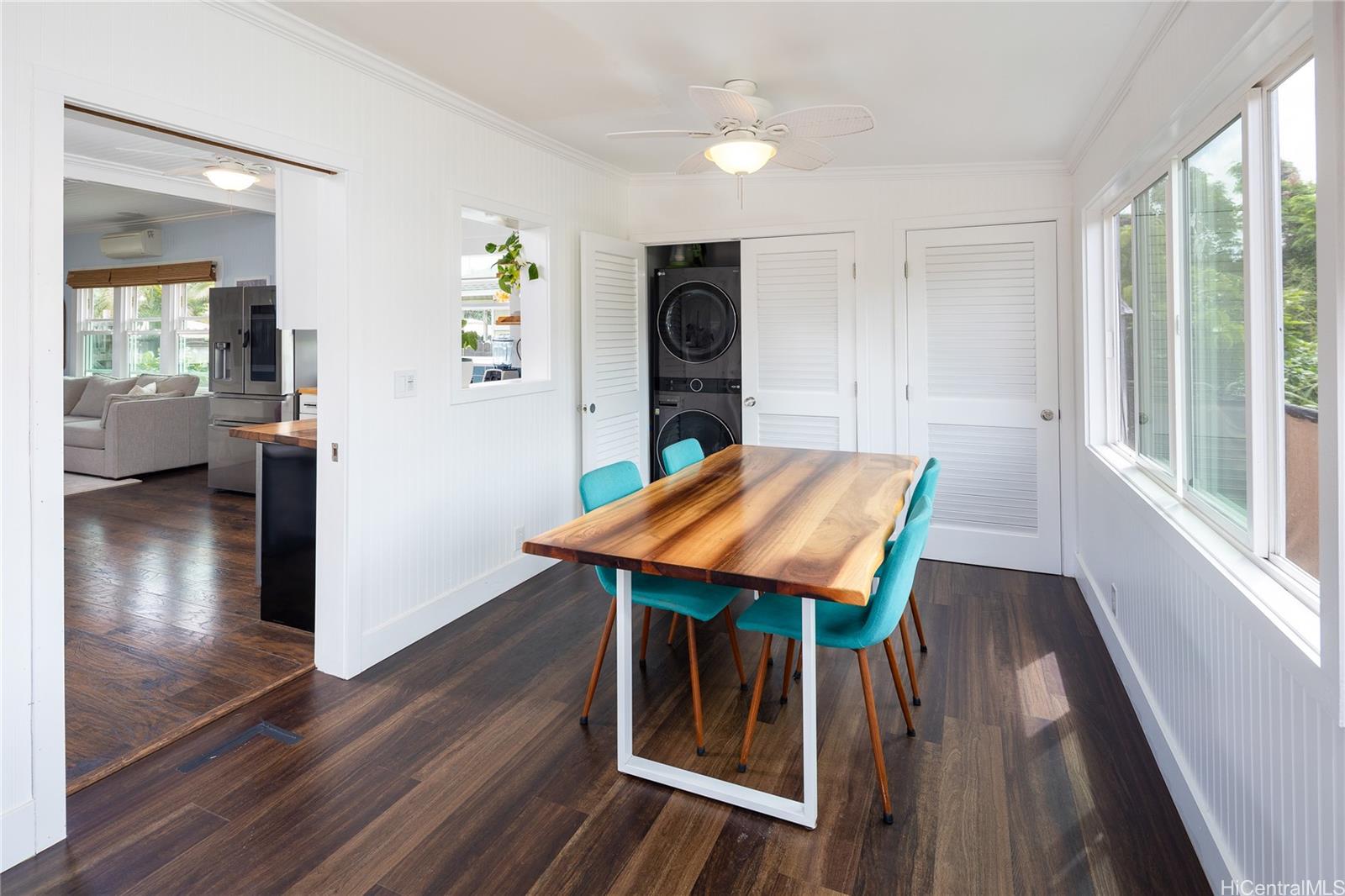 人気の高いハレイワの町に位置し、ビーチまで徒歩圏内という、魅力的なプランテーションスタイルの住宅へようこそ!この住宅は、ハレイワ・ロードから分岐するプライベートなナリム・ロード沿いにあり、多くの有名ショップやレストラン、アクティビティ、その他の施設が立ち並ぶ活気ある商業地区の近くに位置しています。 この物件は、ベッドルーム3室とバスルーム2室を備えたメインハウスで構成されています。1階にはリビング、キッチン、ダイニングルームに加え、ベッドルーム1室とバスルーム1室があり、2階には山々の景色を望む専用バスルーム付きのプライベートな寝室があります。 この物件には、広いラナイで本館とつながっている、ベッドルーム1室・バスルーム1室のオハナユニットも備わっています。 この物件には広々とした庭、2台収容可能な大きなカーポートに加え、25枚の自家用ソーラーパネルとバッテリーを備えた新しい屋根、新しい外壁、窓、家電製品など、数多くの改修が施されています。 このお住まいは、ハワイでも最も人気のあるエリアの一つに位置し、ビーチへのアクセスも良く、周辺には便利な施設も充実しているため、島暮らしの魅力を存分に満喫したい方に最適です!一般公開内覧会は土曜日に開催されます .