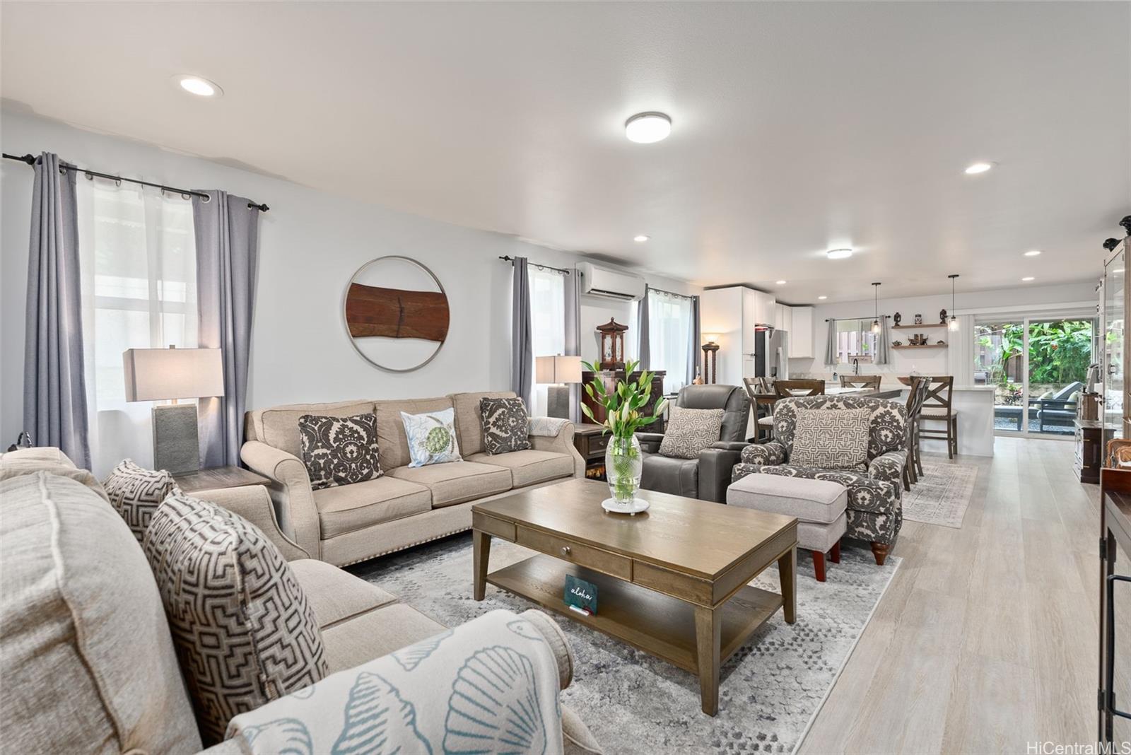 Welcome to this modern immaculately maintained luxury residence, positioned at the end of a quiet cul-de-sac offering refined design, privacy and contemporary comfort. This home features a modern spacious kitchen with stainless steel appliances, quartz countertops, and plenty of space for dining and entertaining. The living room flows seamlessly from the kitchen and dining area to create an open and inviting space for everyday living and enjoyment. The residence features 4 generously sized bedrooms, also a versatile suite with a private entrance, full bath and kitchenette – ideal for extended family, guests or rental option. There are six new split A/C systems for enhanced comfort. The backyard area offers a welcoming outdoor space designed for relaxation, and outdoor gatherings. Don’t miss the opportunity to own this home nestled in the heart of Kaneohe minutes from Windward Mall, theaters and restaurants. Close to H-3, Marine Corps Base Hawaii, Camp Smith, Hickam Air Force Base and Pearl Harbor. FIRST OPEN HOUSE, January 18th, 2-5pm. SEE VIDEO LINK