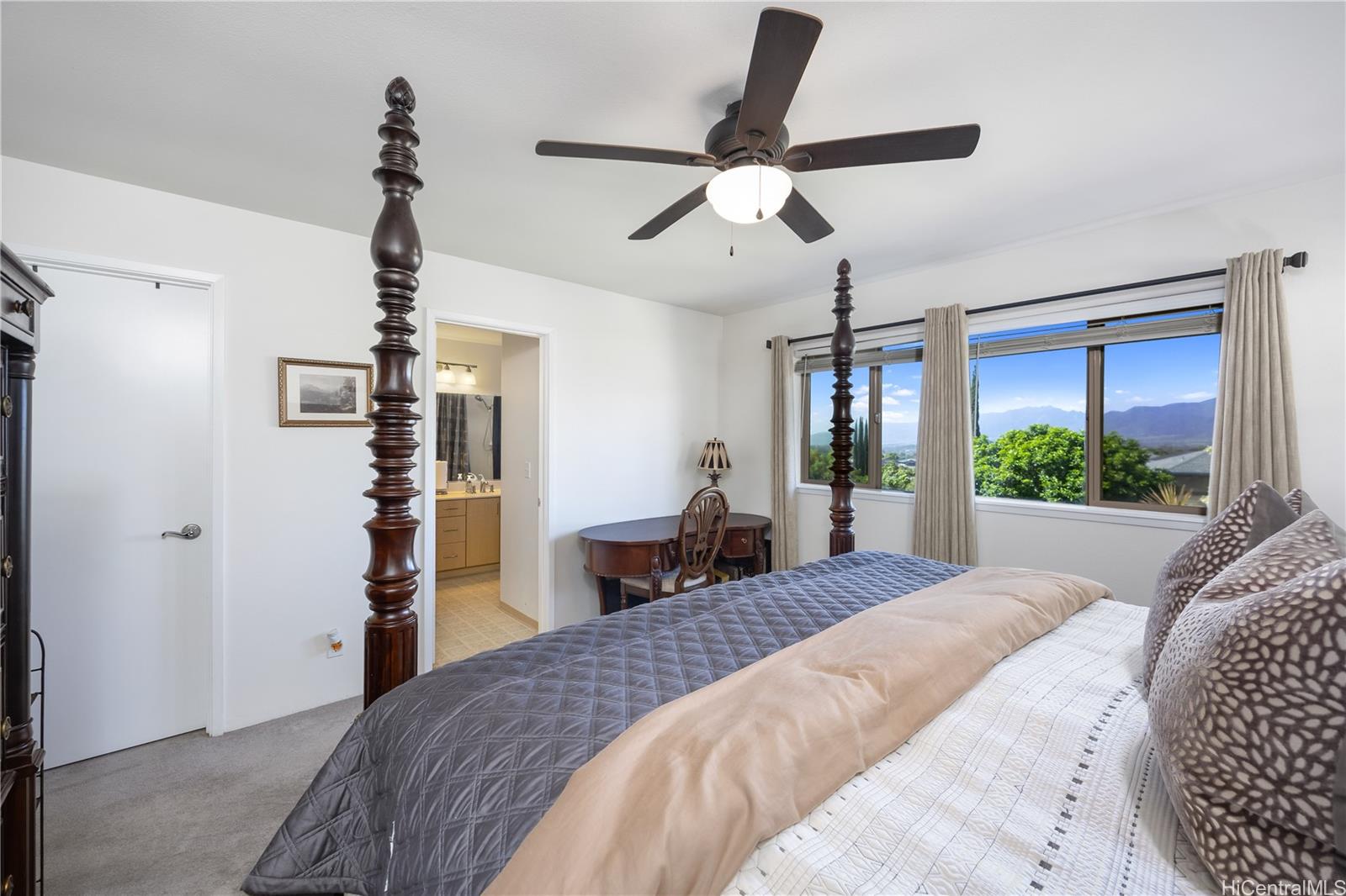 Welcome to this spacious Mililani Mauka residence located on a cul-de-sac. This expansive American Classics home features a flexible floor plan with a bedroom and full bathroom on the main level, ideal for guests, multi-generational living, or a home office. High ceilings and generous living and dining areas create an open, airy feel with abundant natural light throughout.The kitchen is equipped with a brand-new refrigerator and stove, ample cabinetry, and plenty of counter space for everyday living and entertaining. Upstairs, the large primary suite offers an ensuite bath and walk-in closet, while additional bedrooms provide versatility for family or guests. Roof replaced in 2020 for added peace of mind. Enjoy guava, bananas, and lilikoi from your own yard. Enjoy a yard with space to relax or entertain, plus access to Mililani Town Association amenities including multiple recreation centers, pools, parks, tennis courts, and gyms. Conveniently located near schools, shopping, dining, and freeway access. A rare opportunity to own a spacious home in one of Central Oahu’s most desirable communities.