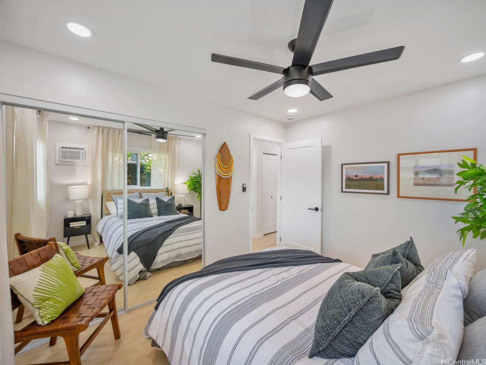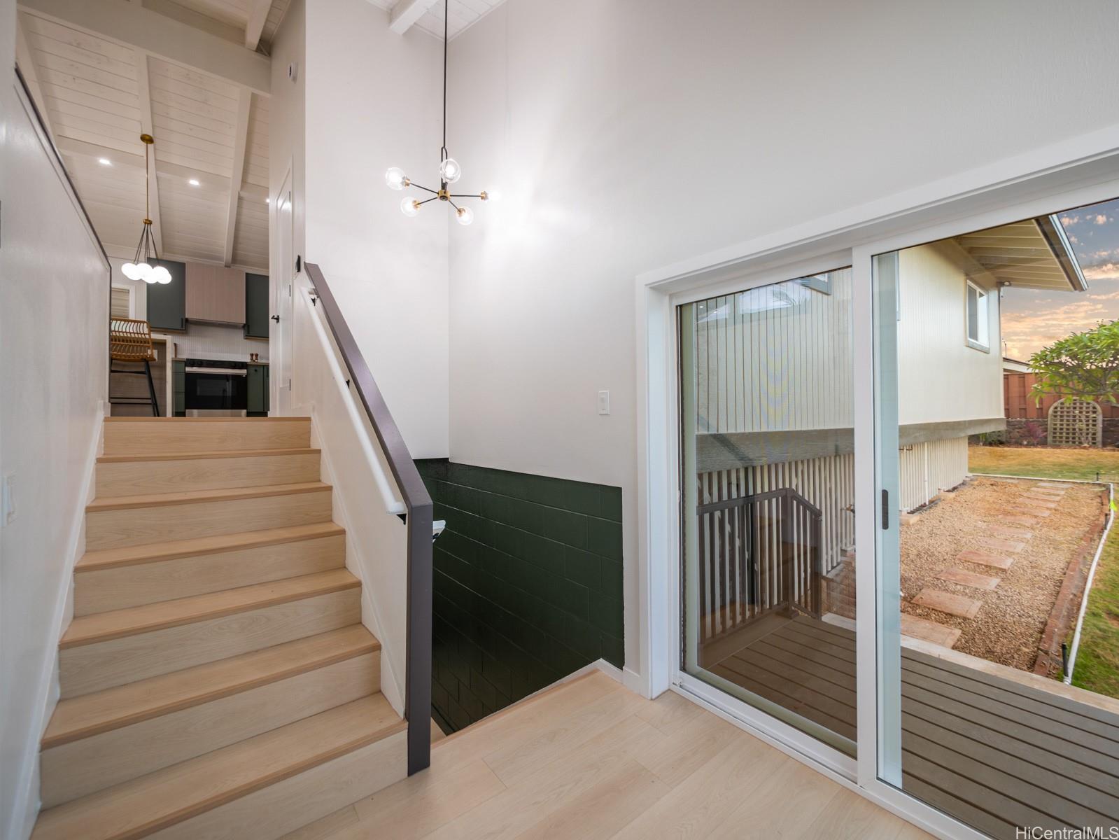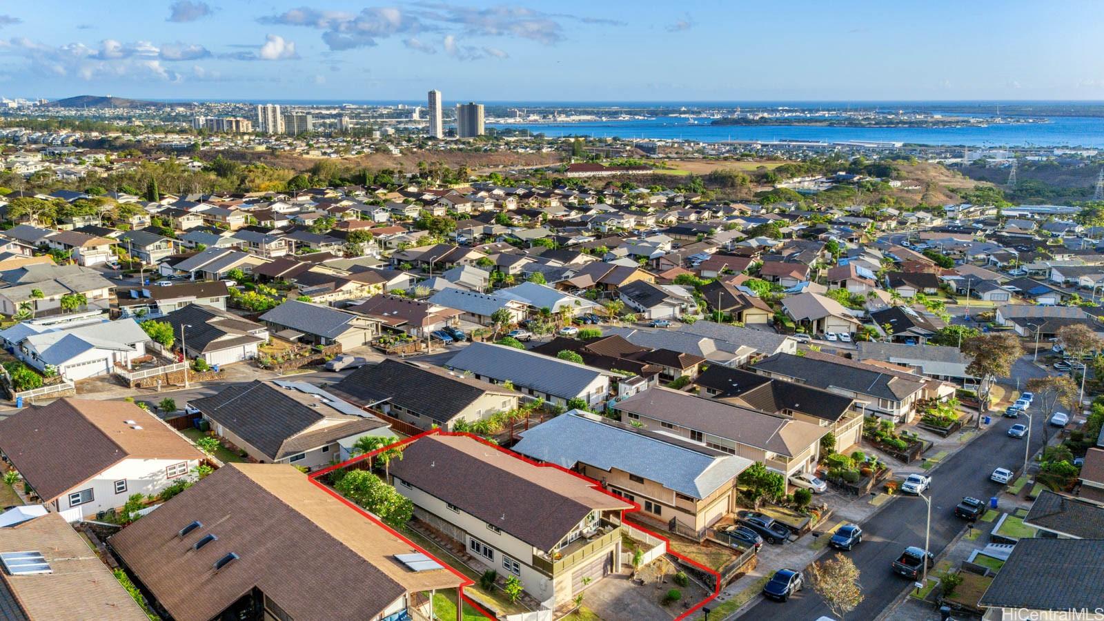 Welcome to this beautifully updated 4-bedroom, 2.5-bath home in desirable Newtown Estates. Featuring the exclusive Lanikai Maple flooring from the Mauka to Makai collection, this home offers modern comfort with island-inspired charm. Enjoy high ceilings, a spacious living area with split AC, and window units in all bedrooms. The generous kitchen is equipped with brand-new stainless steel appliances, and dual-pane windows provide energy efficiency throughout. A welcoming lanai invites seamless indoor-outdoor living, perfect for relaxing or entertaining. Take in stunning harbor views from multiple vantage points in the home. Move-in ready and thoughtfully upgraded, this is a must-see property in a prime location.