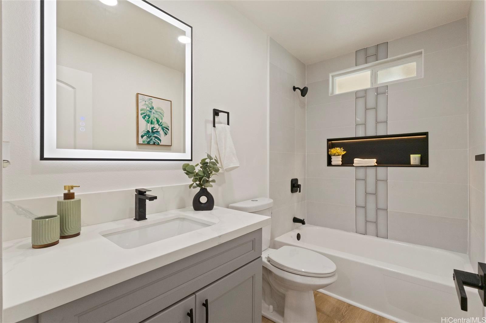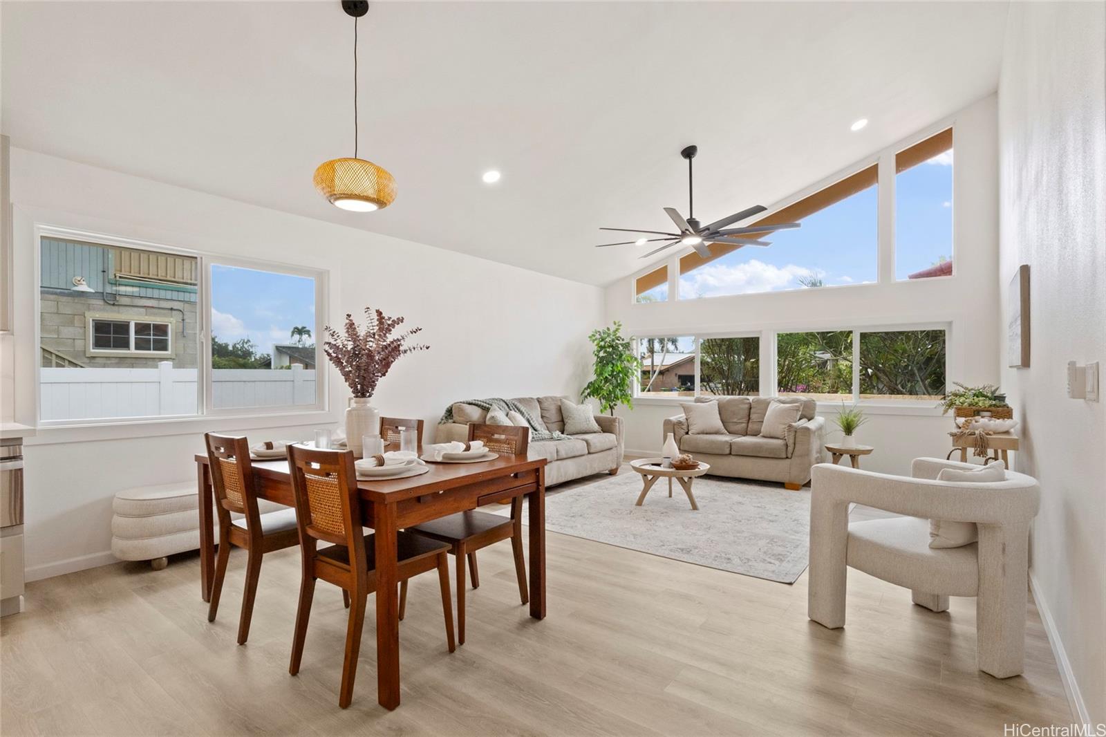 Price Improvement!! Beautiful Kalama Valley home comes with 4 bedrooms and 2 bathrooms. The main floor is 1,566 sq ft and the upstairs loft offers and additional 406 sq ft. This home has been tastefully upgraded with new luxury vinyl flooring throughout, new kitchen cabinets, and quartz countertops. The vaulted kitchen and dining room flow seamlessly to the open concept living room with tons of natural light from the large windows. The over 8,000 sq ft lot offers usable outdoor space that is perfect for entertaining. Enjoy all the benefits of living in Hawaii Kai with the top rated public schools, beautiful beaches, and close proximity to shopping.