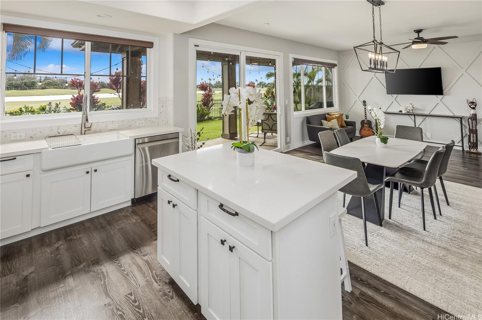 Absolutely stunning and rarely available, this 4-bedroom, 3-full-bath residence has been impeccably upgraded from top to bottom in 2022. Perfectly positioned overlooking the 7th hole of the Hawaii Prince Golf Course, the home offers breathtaking sunset views and a tranquil, year-round breeze that enhances its serene, resort-like setting. Step into a beautifully redesigned interior featuring a brand-new modern gourmet kitchen, fully renovated bathrooms, and extensive upgrades throughout. The custom pantry with wine bar adds both style and function, while NEW central AC ensures comfort in every room. The tropical backyard is landscaped and equipped with an automatic sprinkler system, creating a lush outdoor retreat ideal for relaxing or entertaining. Energy efficiency is maximized with 32 owned PV panels and brand-new battery storage (non-metered)—a tremendous value This exceptional property has no maintenance fees and is truly move-in ready. Experience HALEAKEA living at its finest—modern, refined, and effortlessly elegant. VA assumable at 4.625% with a balance as of Oct of $1,226,804.68.