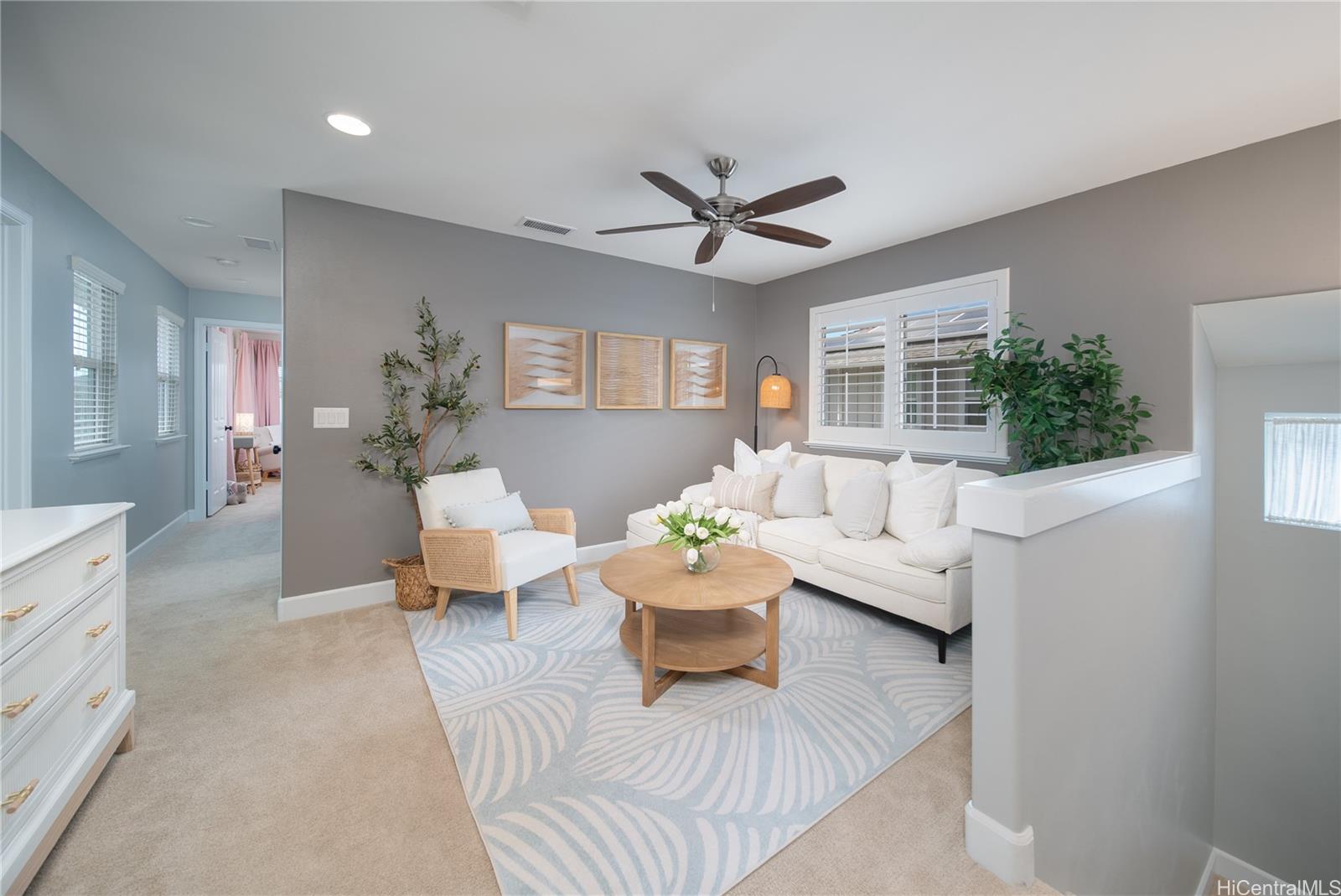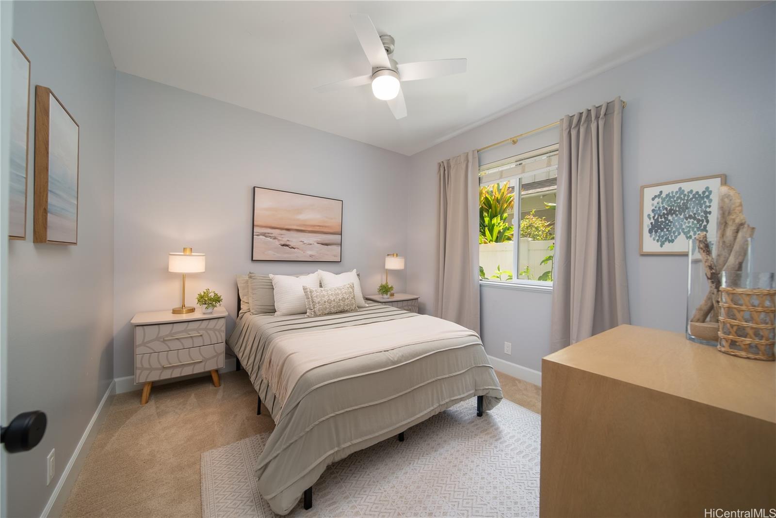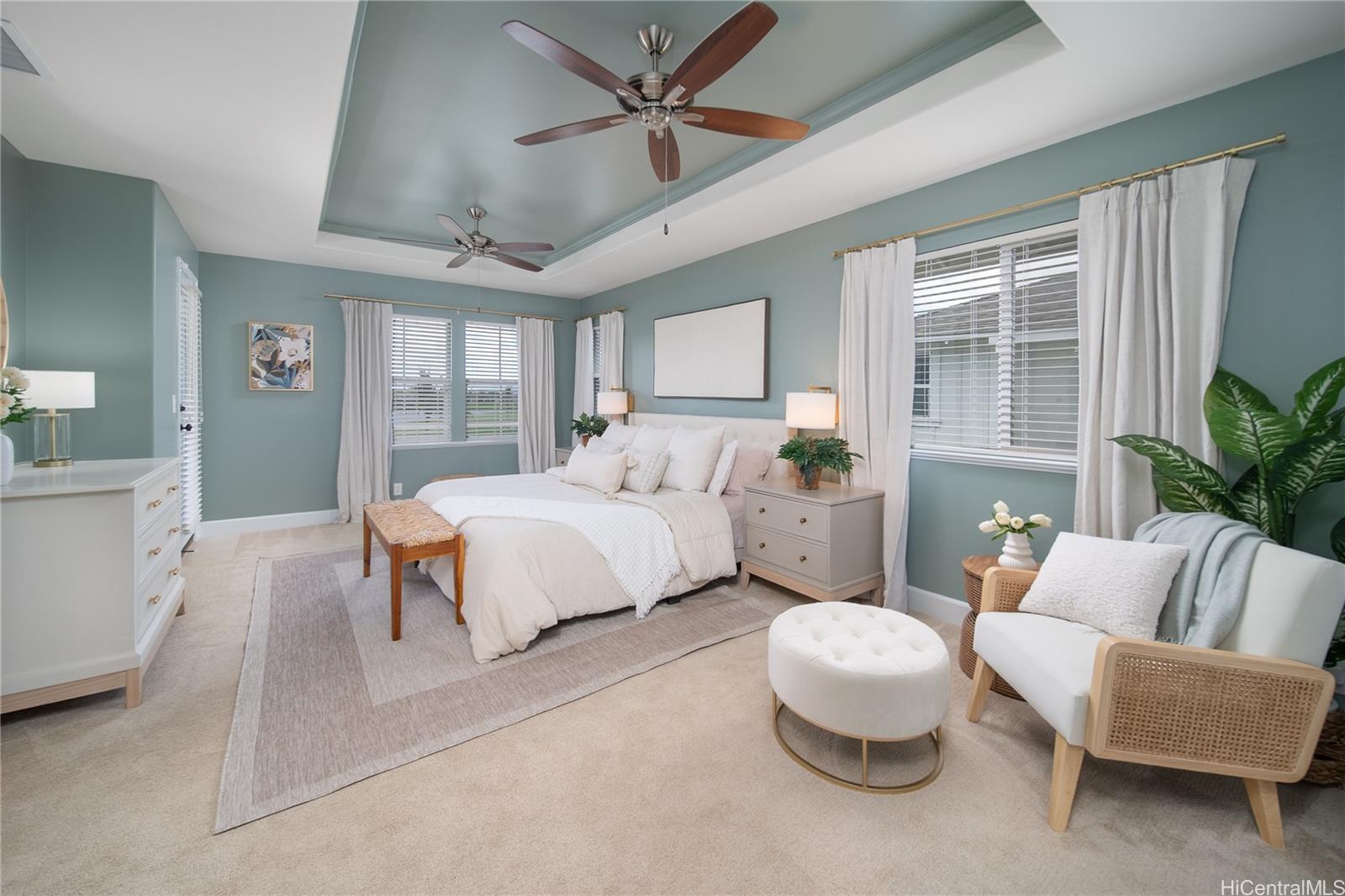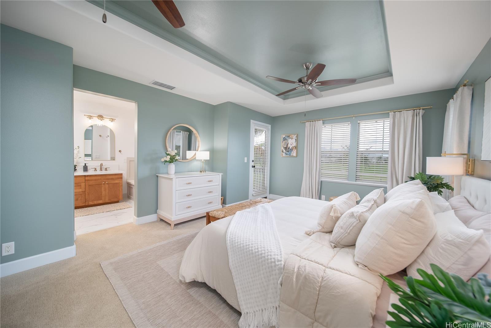 Golf Course Frontage Home & Luxury Upgrades & Stunning Views! This upgraded golf course frontage home offers breathtaking views and is just a short distance to a pristine Hawaiian beach. Never rented and move-in ready, it features real wood flooring, plantation shutters, and crown molding in the primary suite. Stay comfortable with central A/C and six ceiling fans. The upgraded kitchen boasts an expanded island, while the remodeled bathroom adds elegance. OWNED SOLAR PANELS enhance energy efficiency. From the primary suite’s covered lanai, take in stunning sunsets over Hoakalei’s golf course and water features. The lush yard with tropical blooms creates a serene escape. Just a 10-minute walk to One‘ula Beach and close to surf spots and the LineUp at Wai Kai, featuring dining, shopping, and a world-class wave pool. With resort development on the horizon, this home’s value and appeal will continue to grow. Don’t miss this rare opportunity to own a luxury golf course home in paradise!
