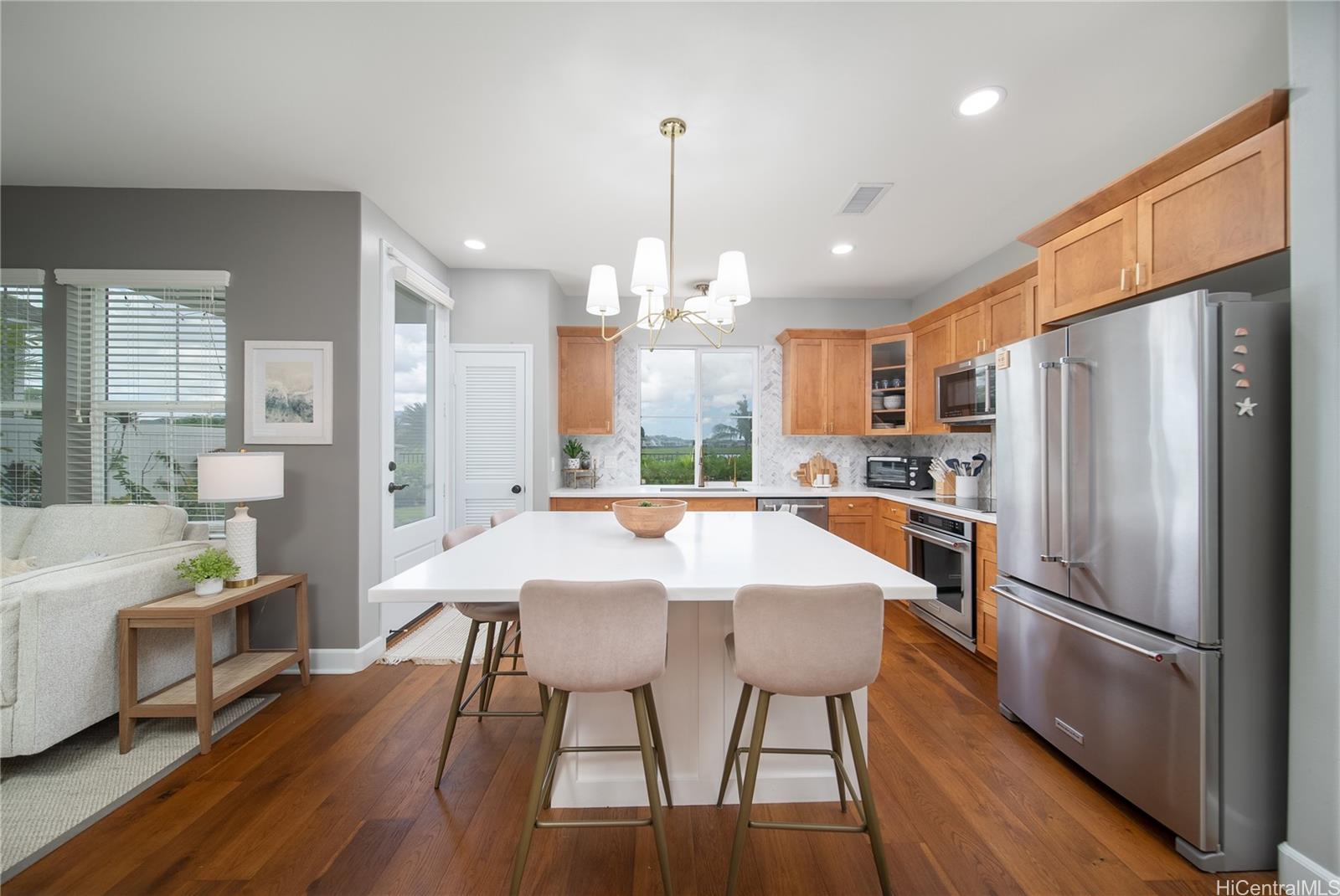 ゴルフコースに面した住宅 未賃貸・入居可能物件。主寝室には本物の木製フローリング、プランテーションシャッター、クラウンモールディングが施されています。 セントラルエアコンと6台の天井ファンで快適に過ごせます。 アップグレードされたキッチンには拡張されたアイランドが備わり、改装されたバスルームは優雅さを加えています。 所有する太陽光パネルはエネルギー効率を高めます。 プライマリースイートの屋根付きラナイからは、ホアカレイのゴルフコースと水景施設を背景にした息をのむような夕日を眺められます。 熱帯の花々が咲き乱れる緑豊かな庭は、静かな隠れ家を作り出している。 ワンウラビーチまで徒歩わずか10分。サーフスポットやワイカイの「ラインアップ」にも近く、飲食店やショッピング施設、世界クラスの波のプールが揃っています。 リゾート開発が目前に迫る中、この住宅の価値と魅力は今後も高まり続けるでしょう。 この楽園にある豪華なゴルフコース付き住宅を所有する、この稀な機会をお見逃しなく!