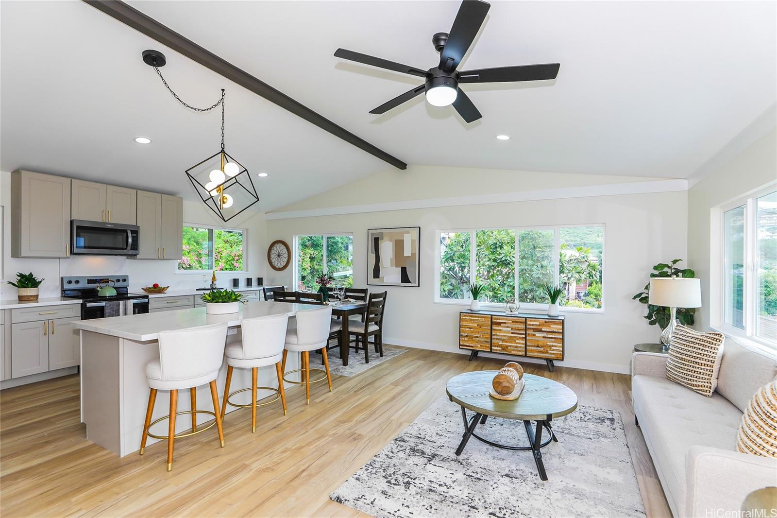 Welcome home to this beautifully updated 4-bedroom, 2-bathroom two-story home offers charming peekaboo ocean/Diamond Head views and is ideally located just minutes from the world-famous Waikiki, where renowned beaches, dining, and shopping await. Fully remodeled in 2025, the residence features modern finishes throughout, including a stunning new kitchen, upgraded bathrooms, contemporary flooring, and fresh interior and exterior paint. The thoughtfully designed layout provides spacious living areas, abundant natural light, and seamless indoor-outdoor flow perfect for island living. With convenient freeway access, commuting around Oahu is effortless while still enjoying the comfort of a peaceful neighborhood setting. Book a showing today! Don’t miss your opportunity again!