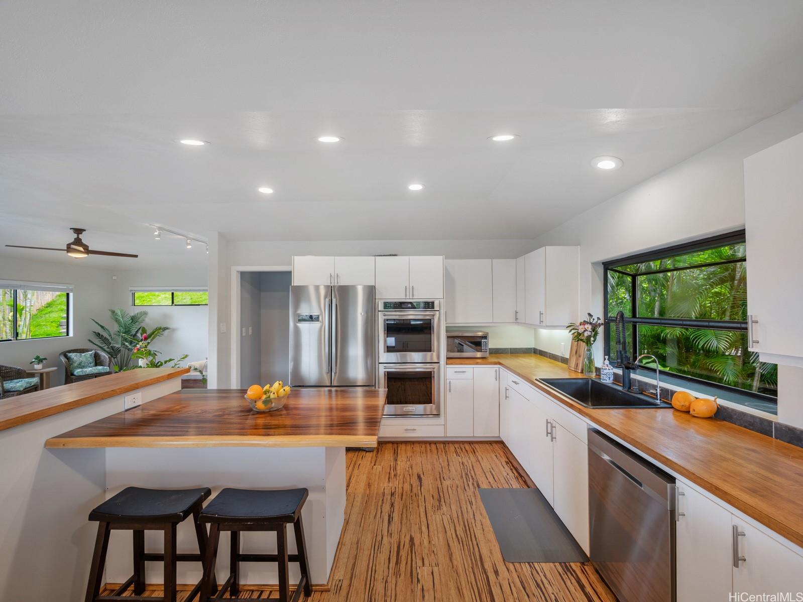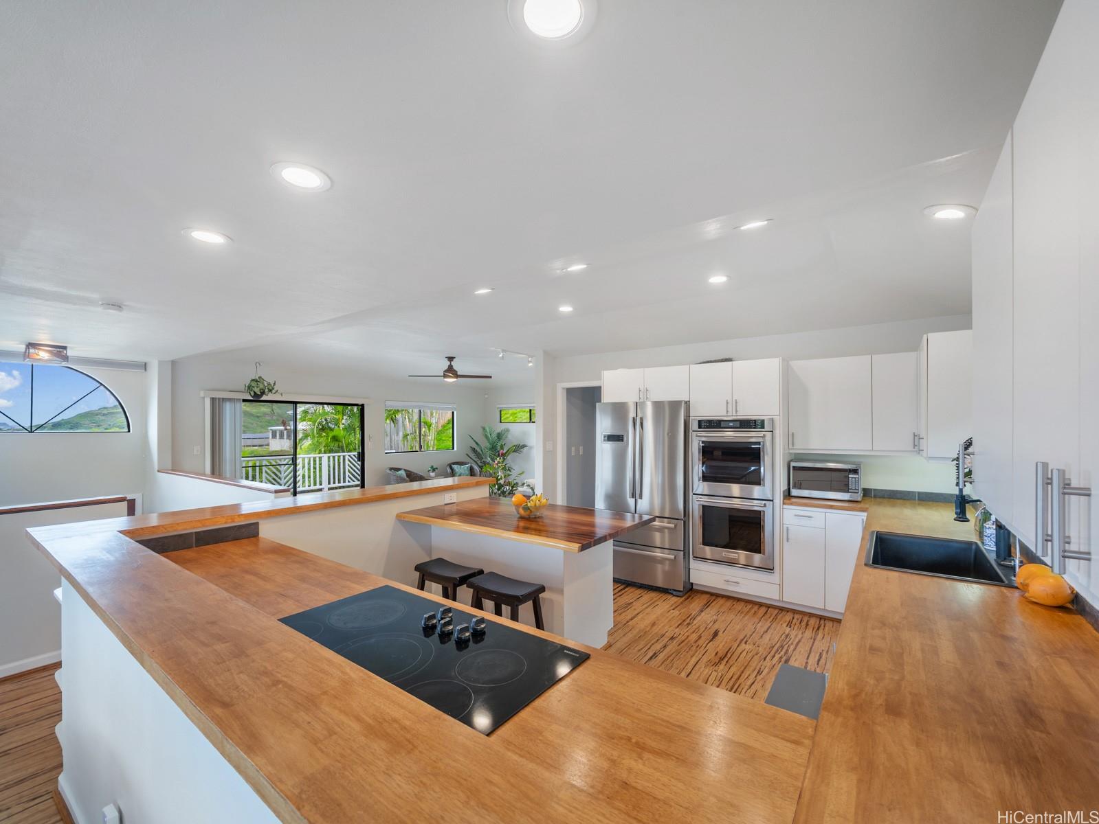 人気のケオル・ヒルズ地区のプライベートな袋小路に位置する、4ベッドルーム2バスルームの住宅。 5バスルームのカイルア住宅は、最高の島暮らしを提供します。 景観を活かした設計のフロアプランにより、メインフロアにはオープンコンセプトのキッチンとリビングエリア、寝室、そしてゲスト用やホームオフィスに最適な半浴室が配置されています。 階下には、さらに3つの寝室と2つのフルバスルームがあります。 この家には独立したガレージと屋根付きの駐車スペースが1区画付いています。 デッキから遮るもののない素晴らしい海の景色をお楽しみください。 キッチンは真の集いの場であり、肉切り台カウンター、新しい家電製品、そしてリビングエリアへのシームレスな流れを誇っています。 18枚の自家所有ソーラーパネルが持続可能な生活を支え、緑豊かな造園された庭にはカカオ、オレンジ、ライム、マンゴーなどの実る果樹が育まれている。 多目的小屋は、遊び場、作業場、または物置として活用できます。 ビーチから戻ったら、専用の屋外シャワーで砂を洗い流せます!エンチャンテッド・レイク・ショッピングセンターやカイルア・タウンからわずか数分、世界的に有名なカイルア・ビーチまでわずか3マイルの好立地。利便性とプライバシーを兼ね備えた物件です。 道路から少し離れた場所に位置し、熱帯の美しさに囲まれたこの家は、カイルアの理想的な隠れ家です。 .