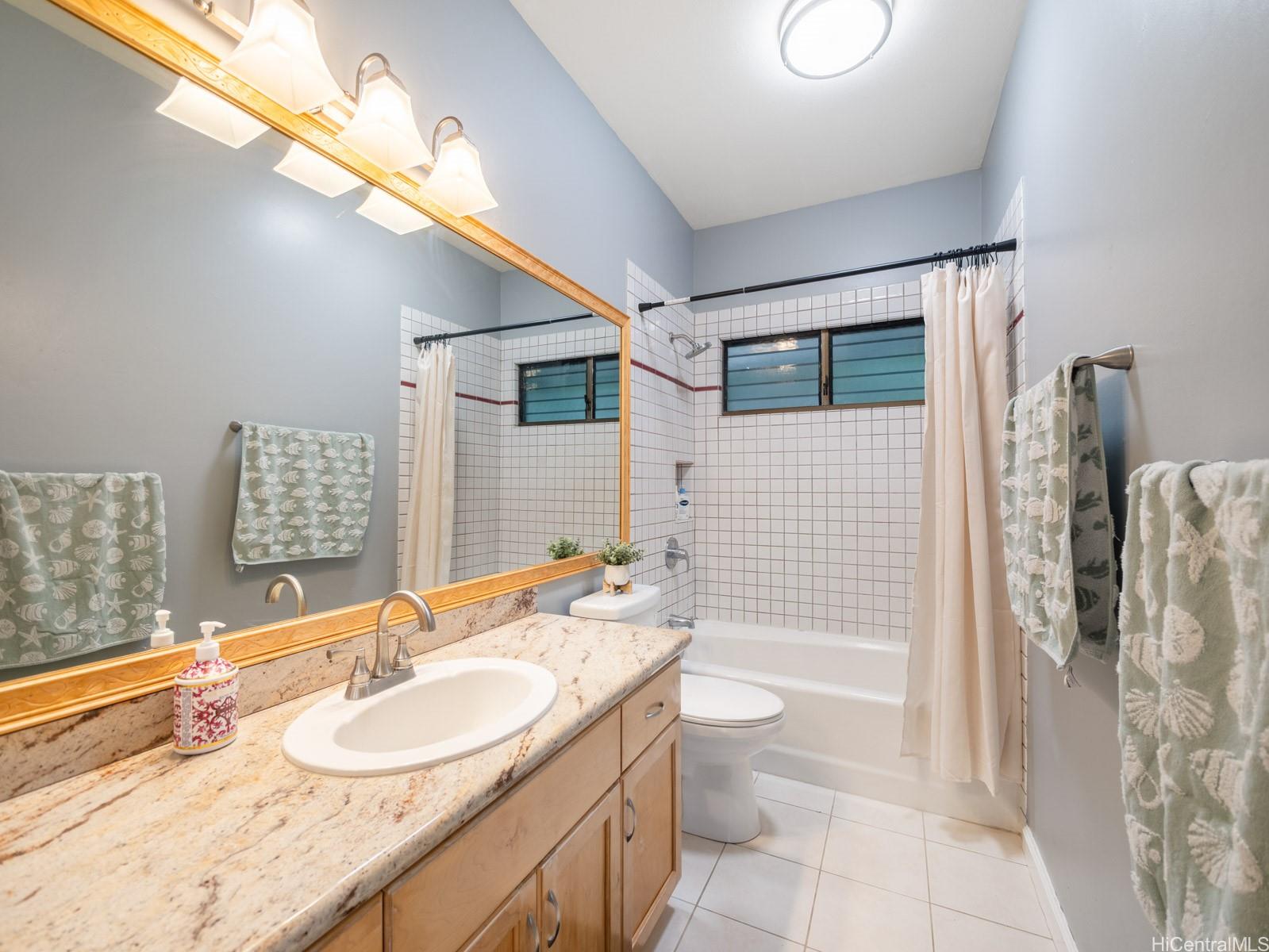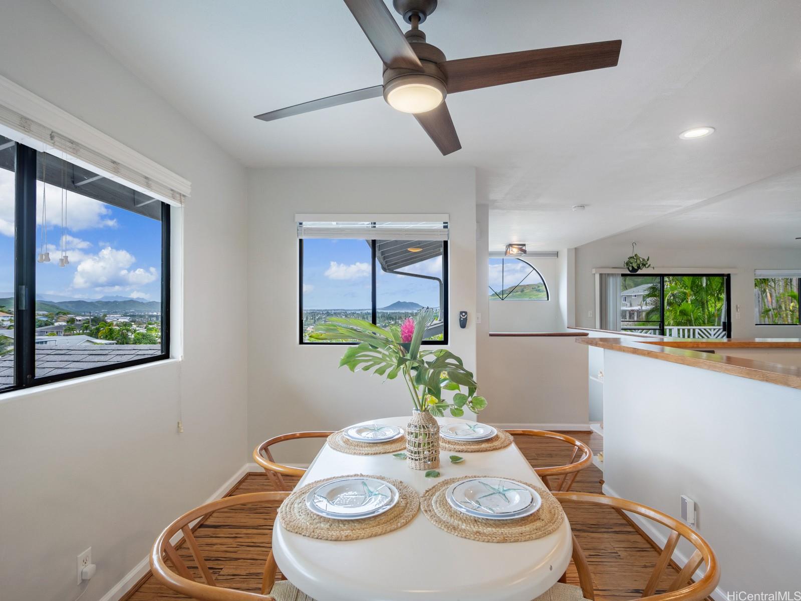 Perched up on desirable Keolu Hills neighborhood in a private cul-de-sac, this 4-bedroom 2.5-bath Kailua home offers island living at its best. With a thoughtfully designed floor plan showcasing the views, the main level features an open-concept kitchen and living area, a bedroom, and a half bath—perfect for guests or a home office. Downstairs, you’ll find three additional bedrooms and 2 full baths. The house comes with a detached garage and 1 covered stall.Take in the gorgeous unobstructed ocean views from the deck. The kitchen is a true gathering space, boasting butcher block countertops, newer appliances, and seamless flow to the living area. 18 owned solar panels support sustainable living, while the lush, landscaped yard showcases mature fruit trees, including cacao, orange, lime, and mango. A versatile shed can be a playhouse, workshop area, or storage. Rinse off from the beach in your own outdoor shower too!Located just minutes from Enchanted Lake Shopping Center, Kailua Town, and only 3 miles to world-famous Kailua Beach, this property combines convenience with privacy. Set back from the road and surrounded by tropical beauty, this home is the perfect Kailua retreat.